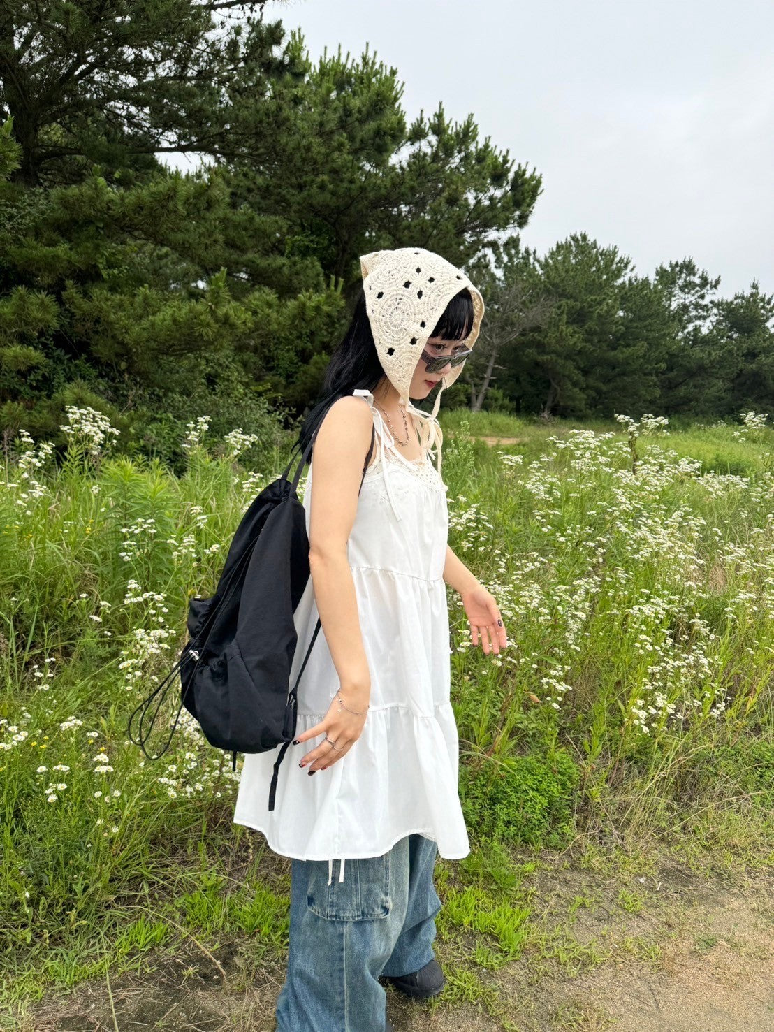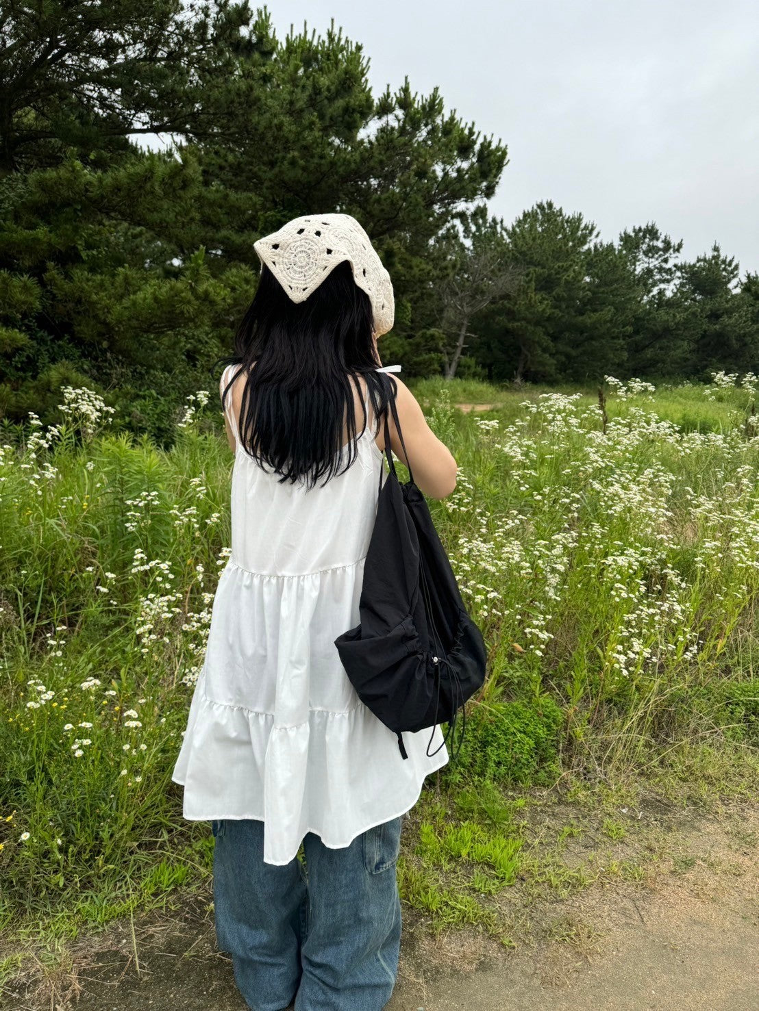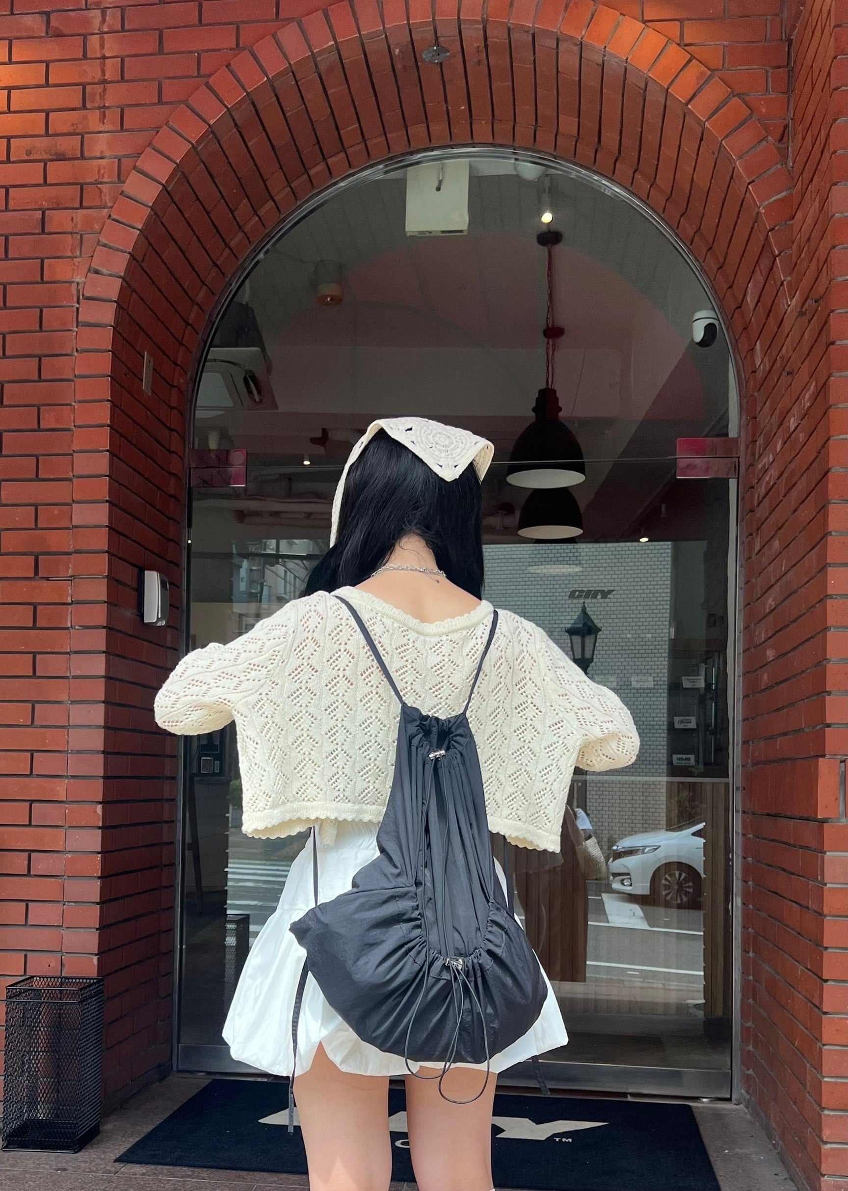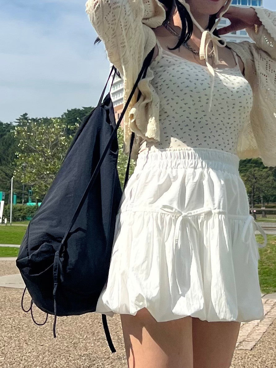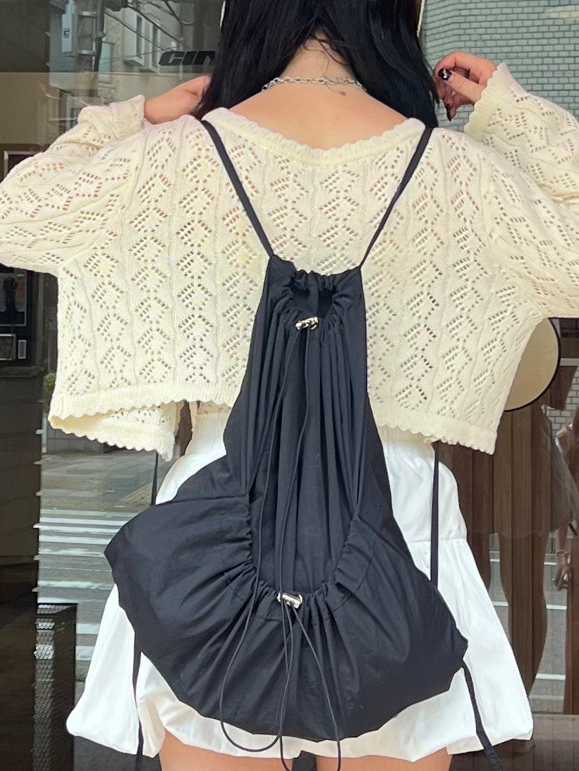 程よいハリ感にシャカシャカとした軽い素材がポイント。季節問わず、シーズンレスで使っていただけます!ショルダー紐は結び目の位置を変えれば、長さ調節も可能です!