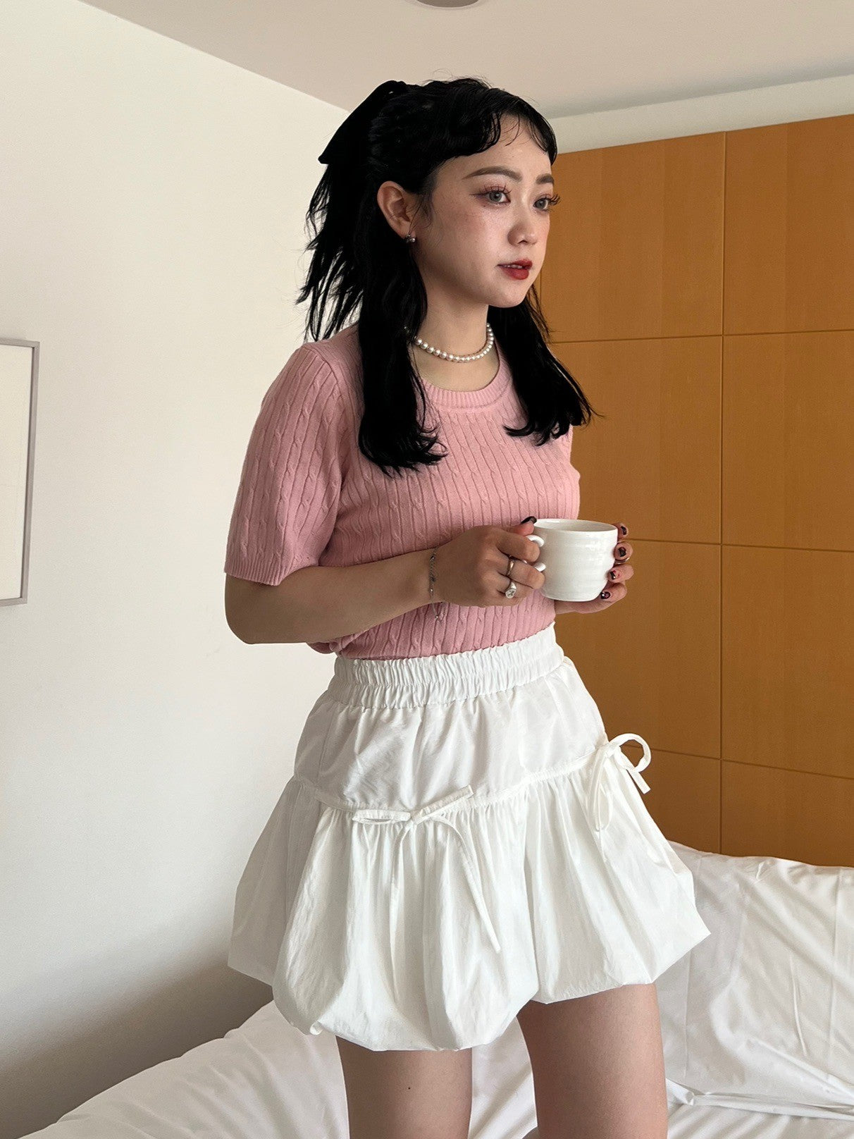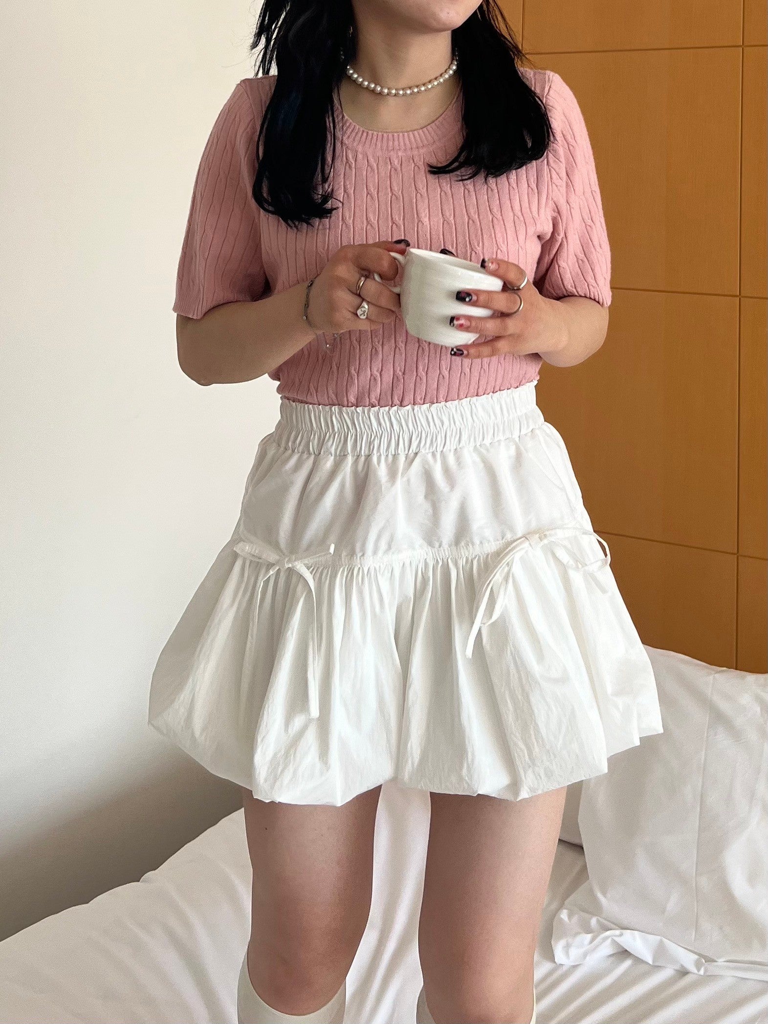 女性らしく着こなしたい時はタイトスカートやマーメイドスカートと合わせるのがおすすめ。
