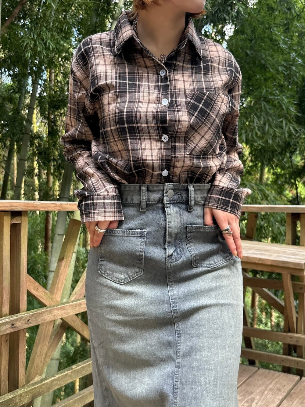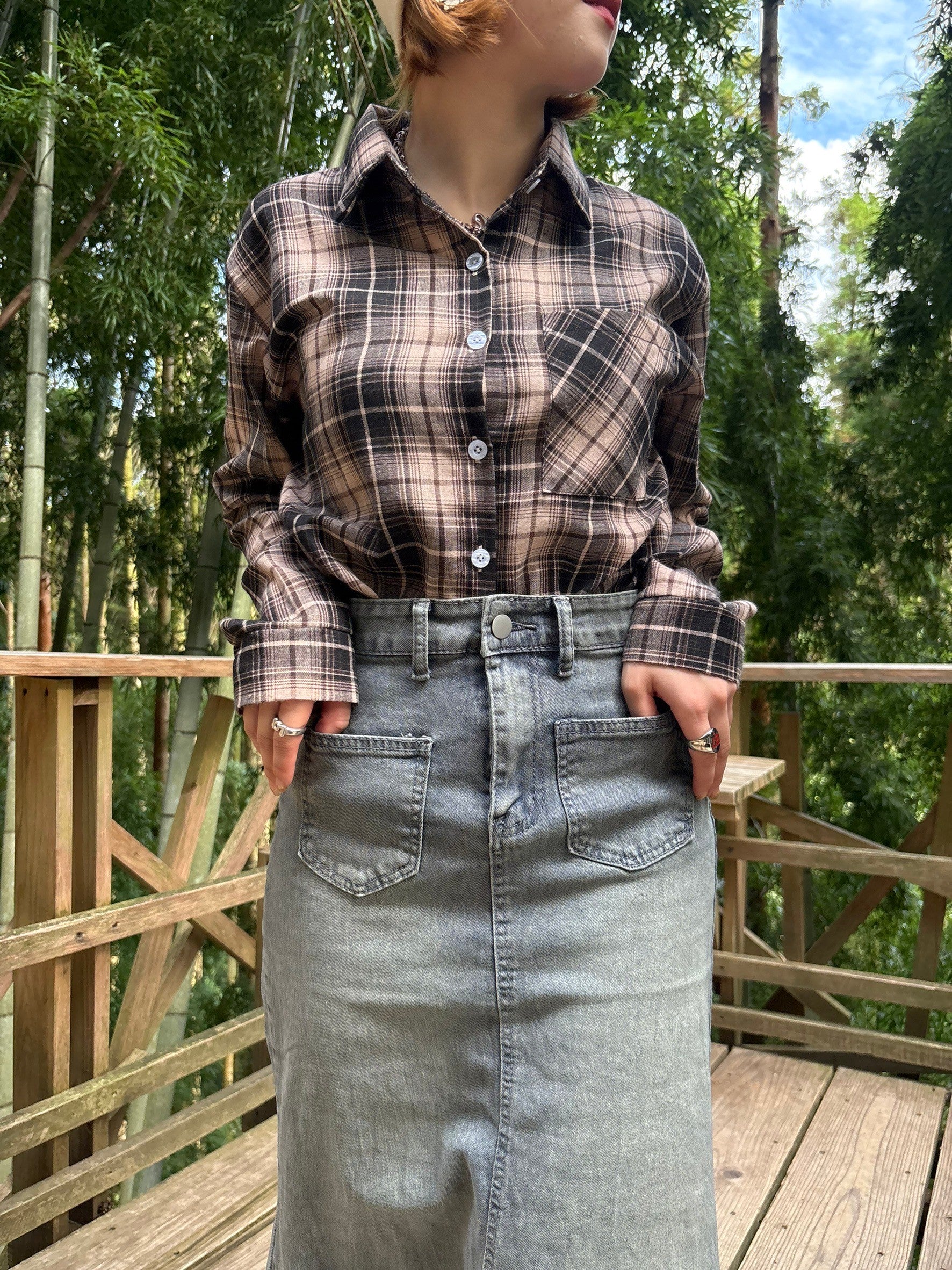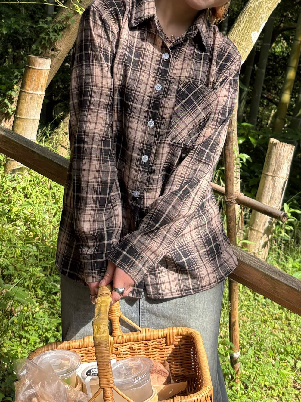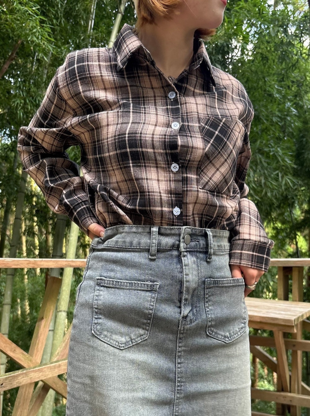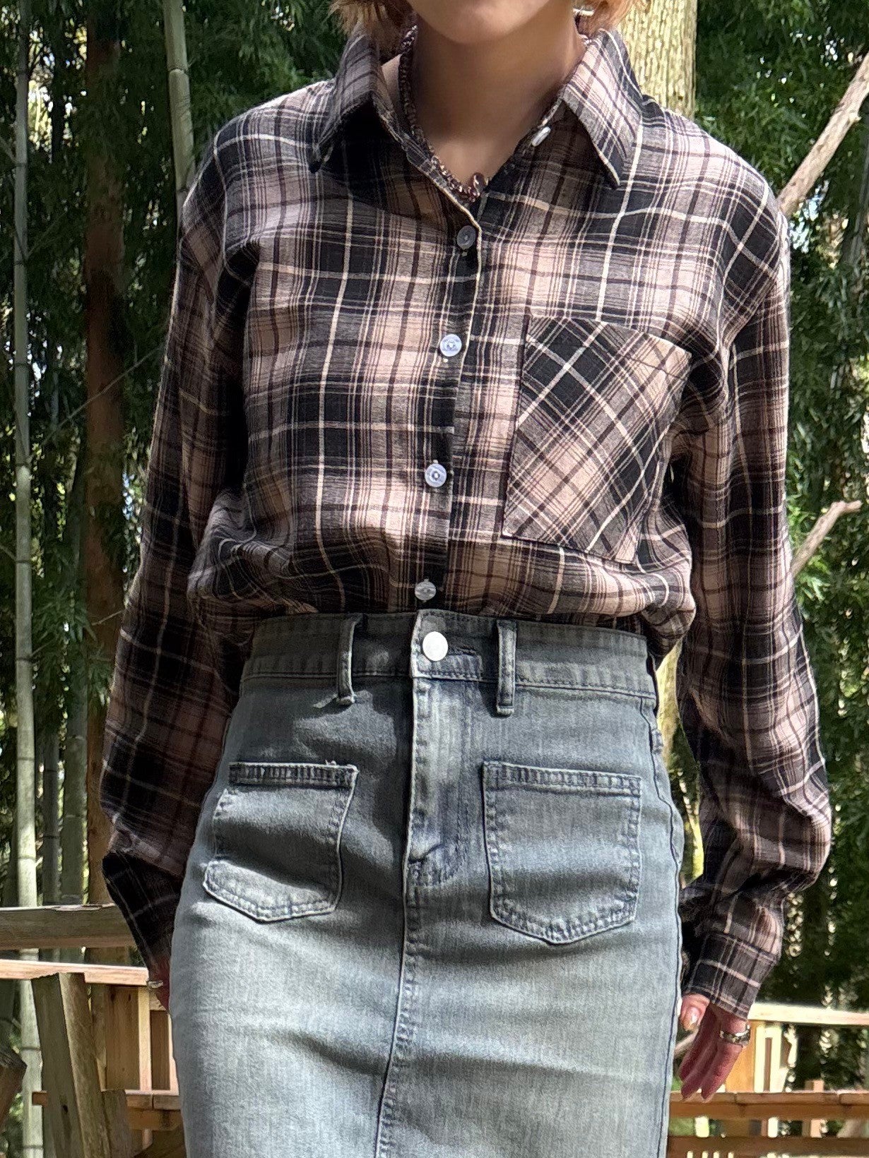 カジュアル派の定番アイテム!秋らしいカラーリングのチェック柄が大人かわいい。アレンジ力が高く、今シーズン1枚は持っておきたいネルシャツ。