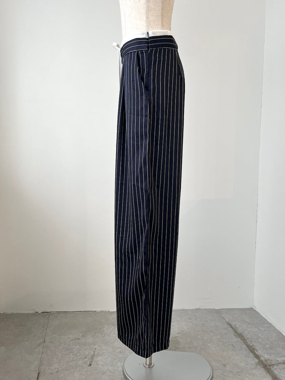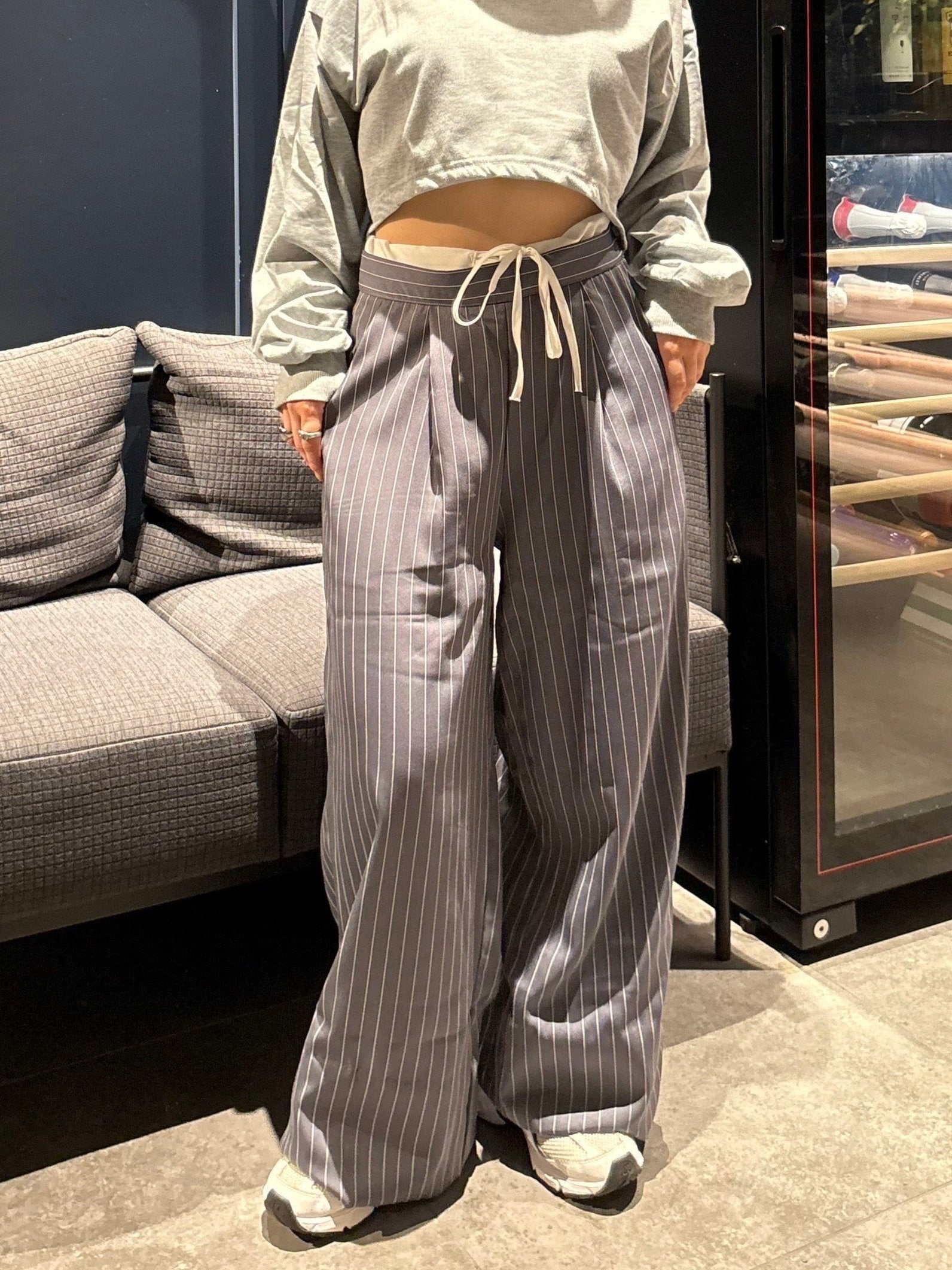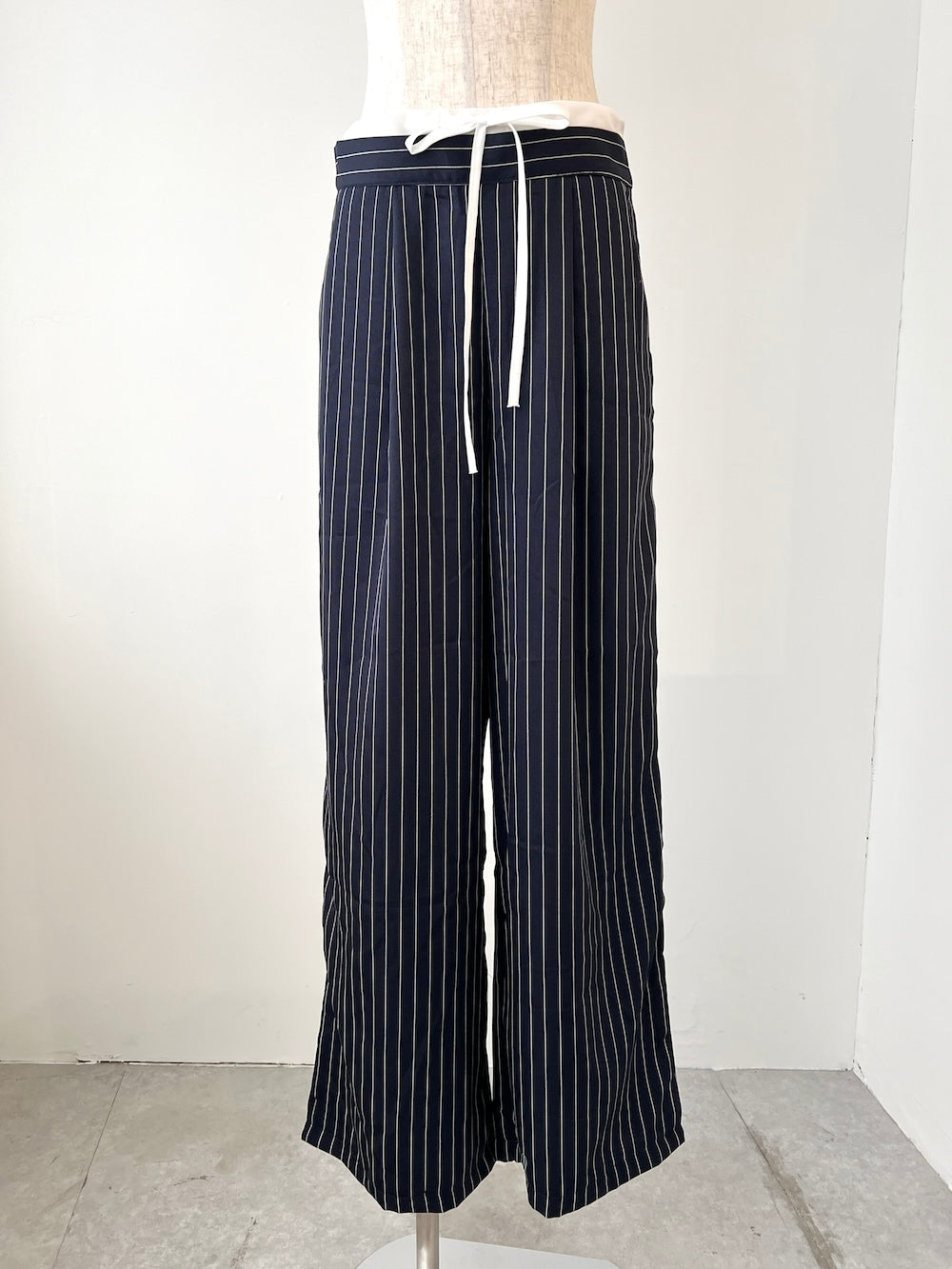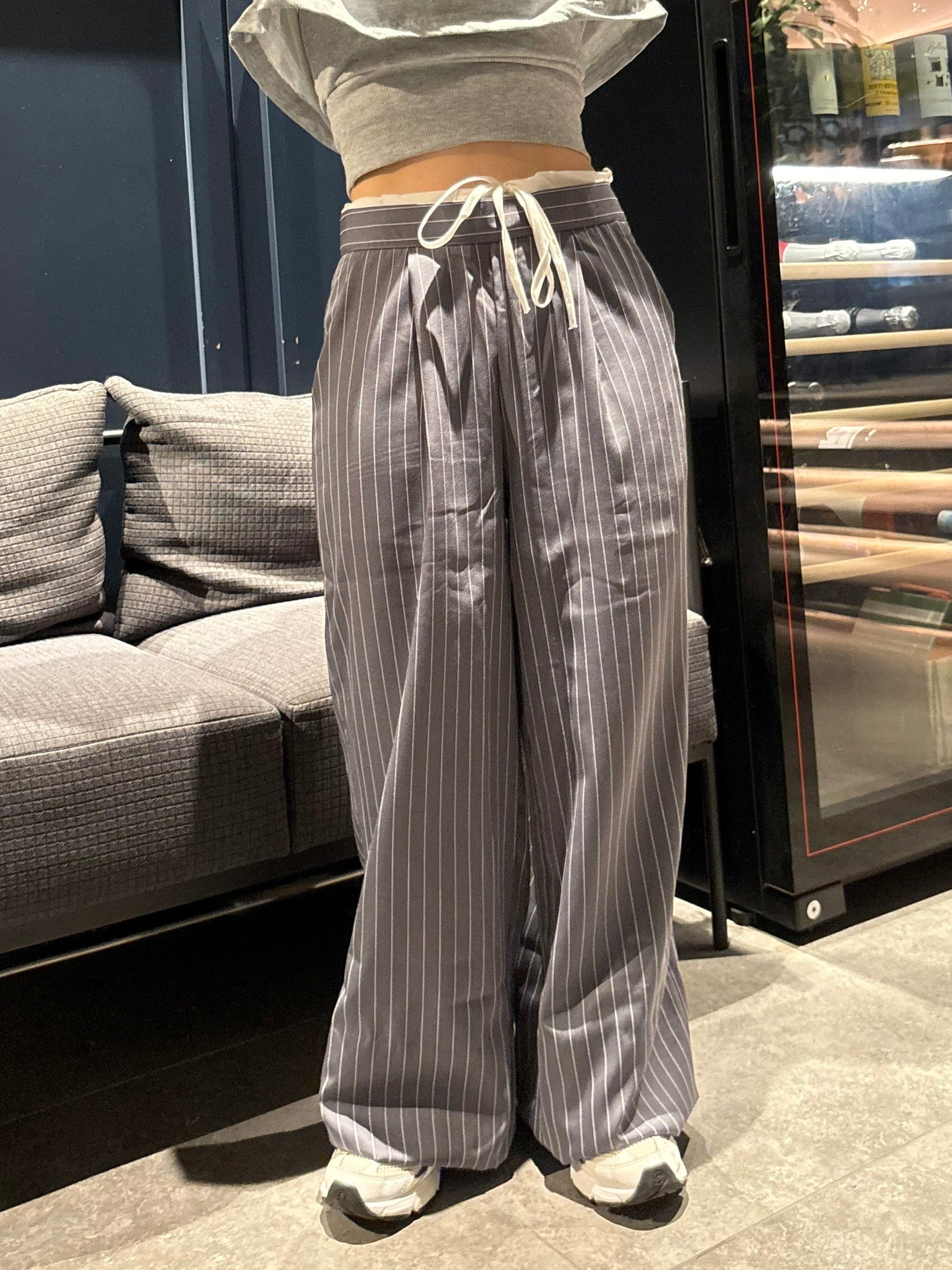 トレンドのダブルウエストデザインでモードな印象のストレートパンツ。