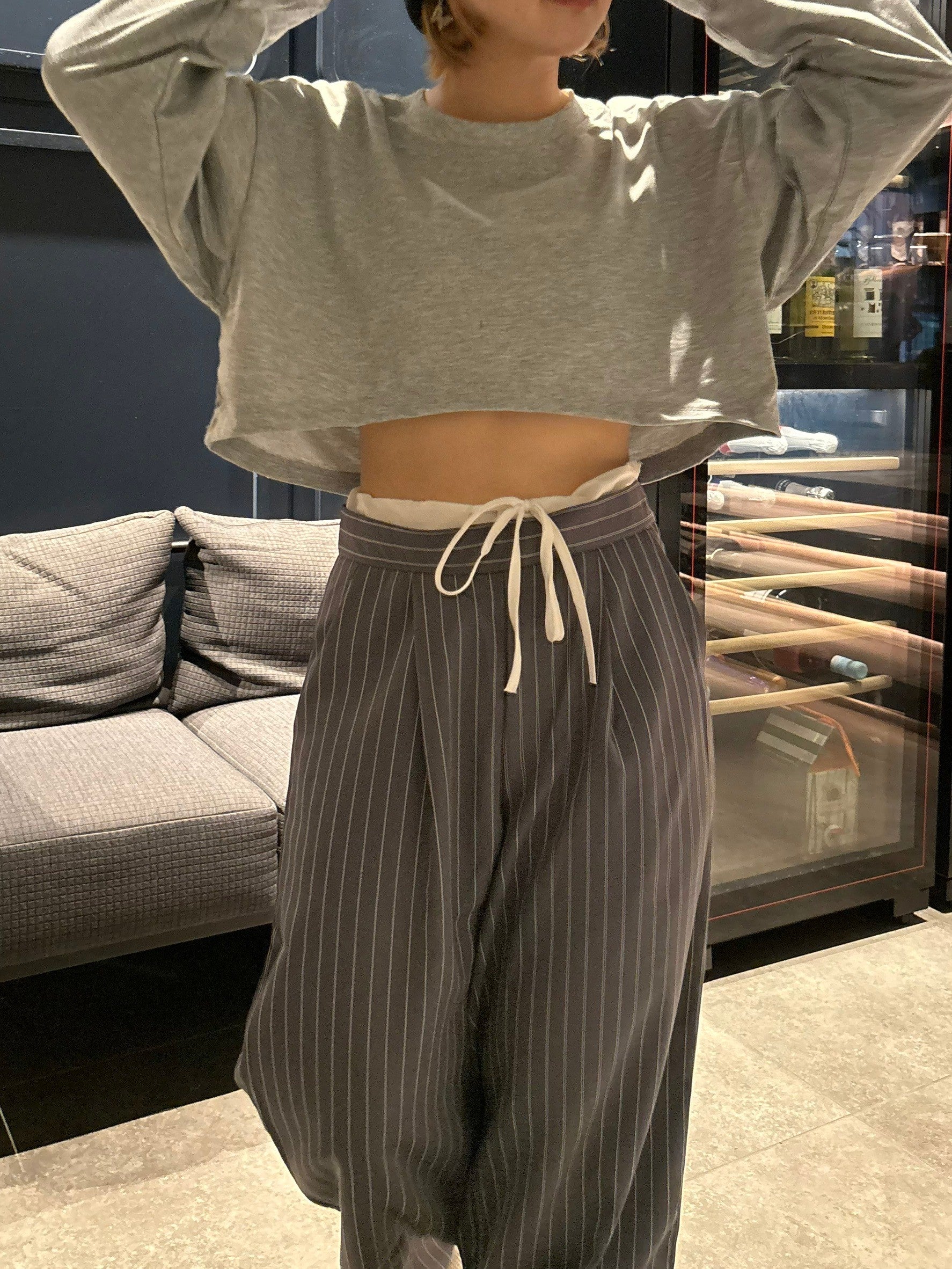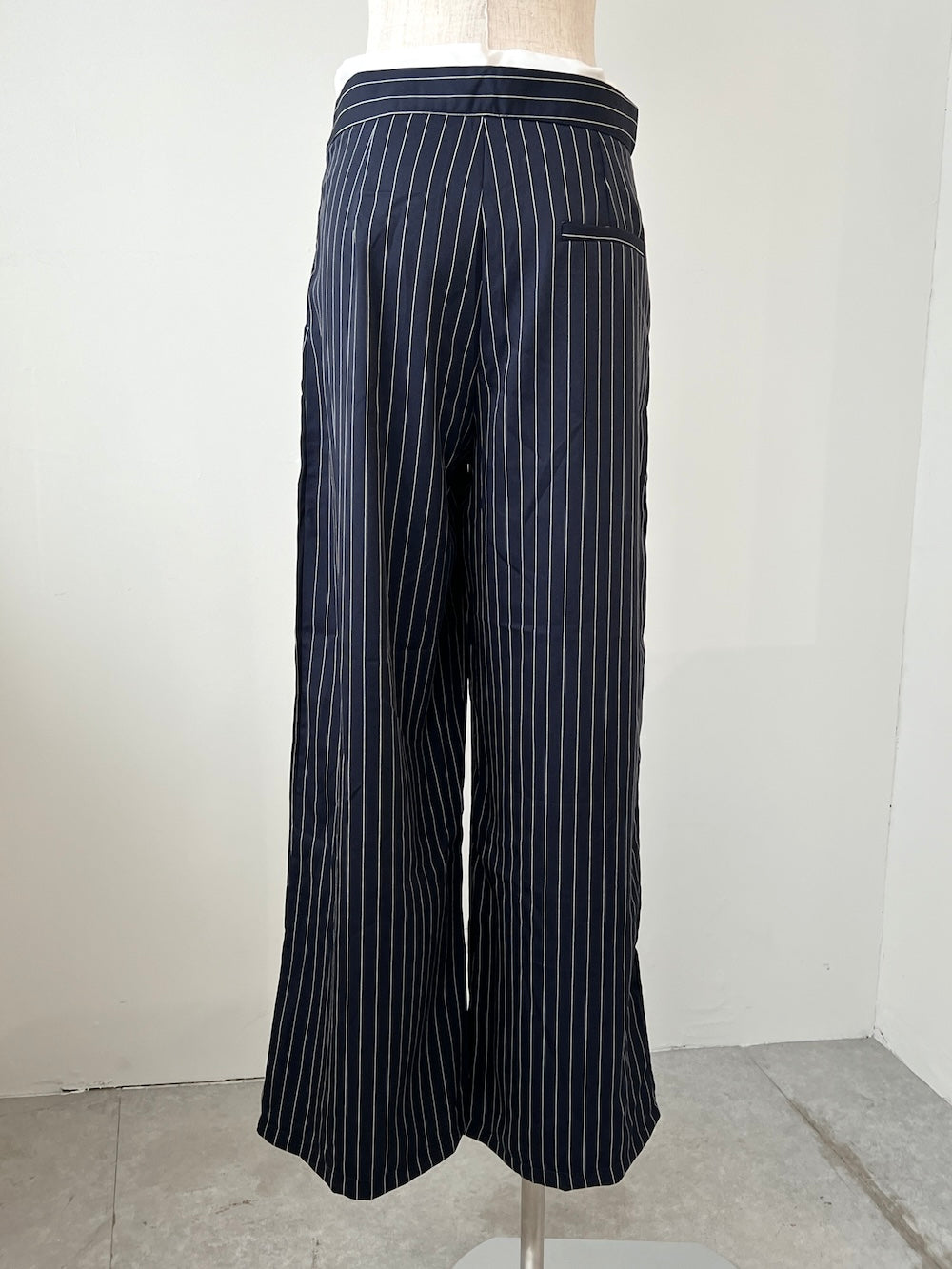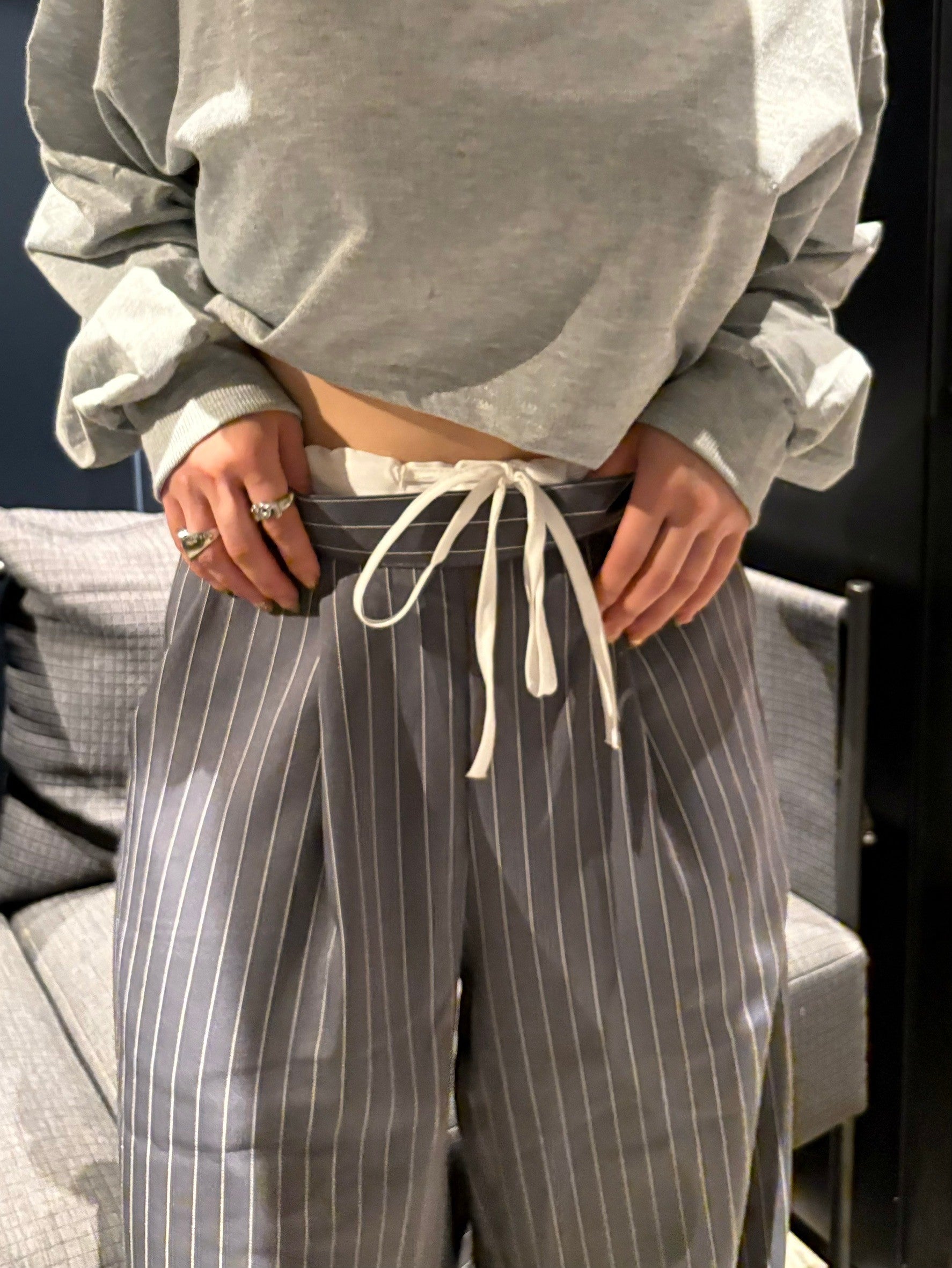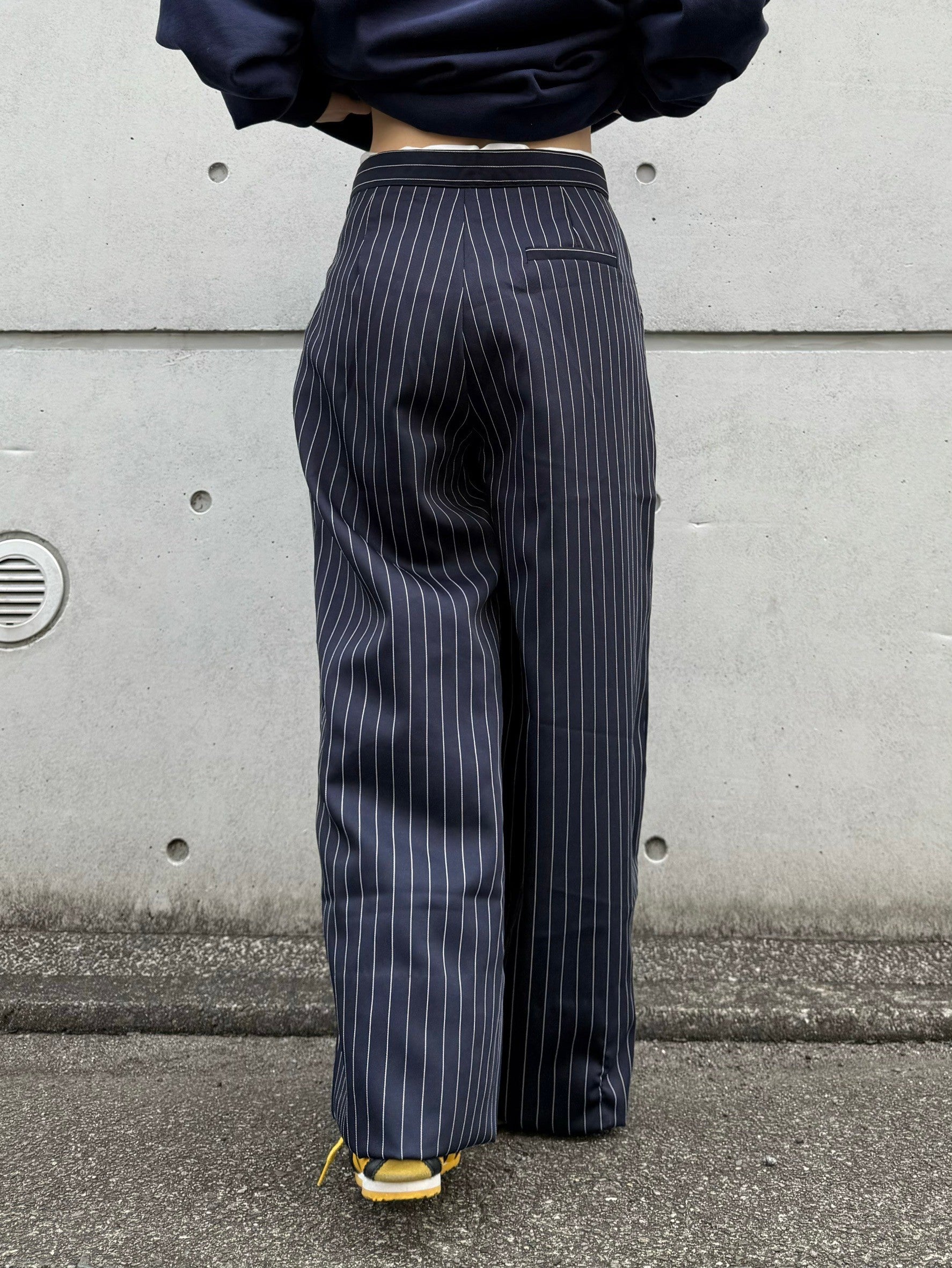 トレンドのダブルウエストデザインでモードな印象のストレートパンツ。