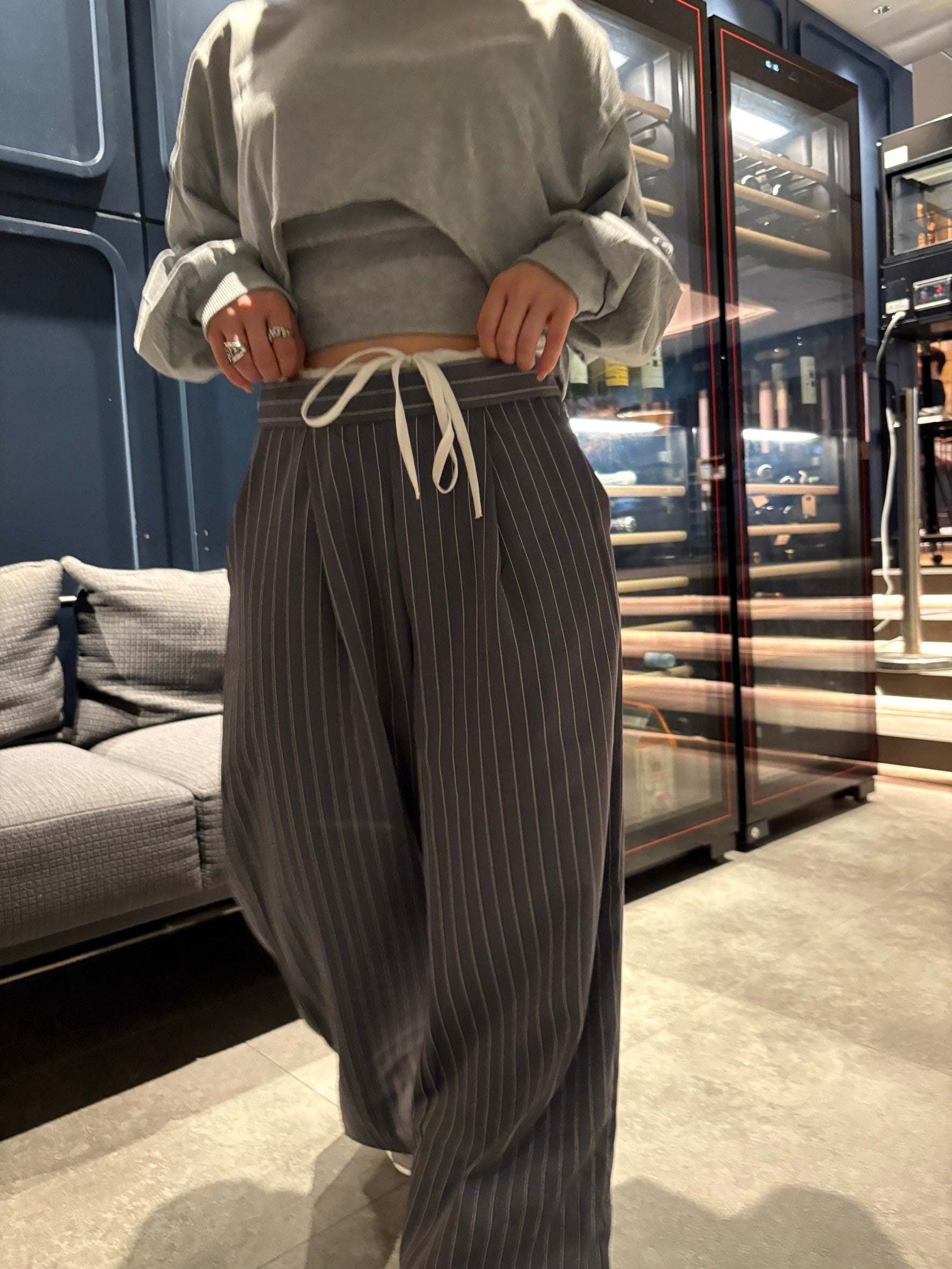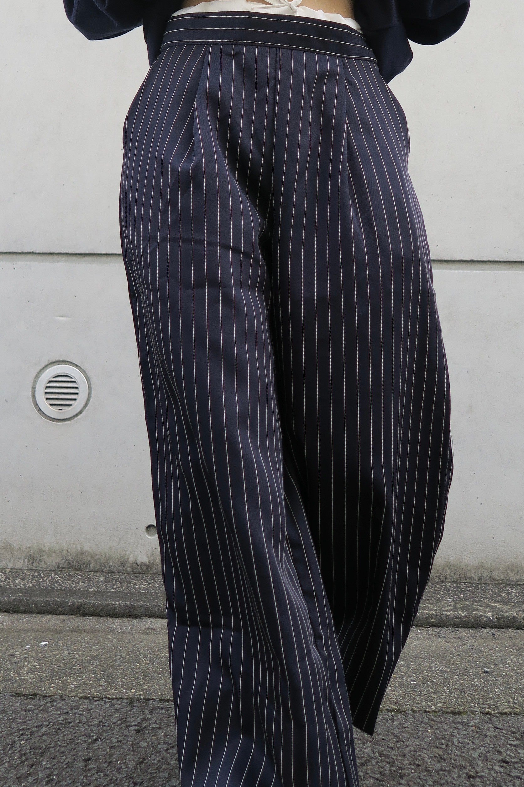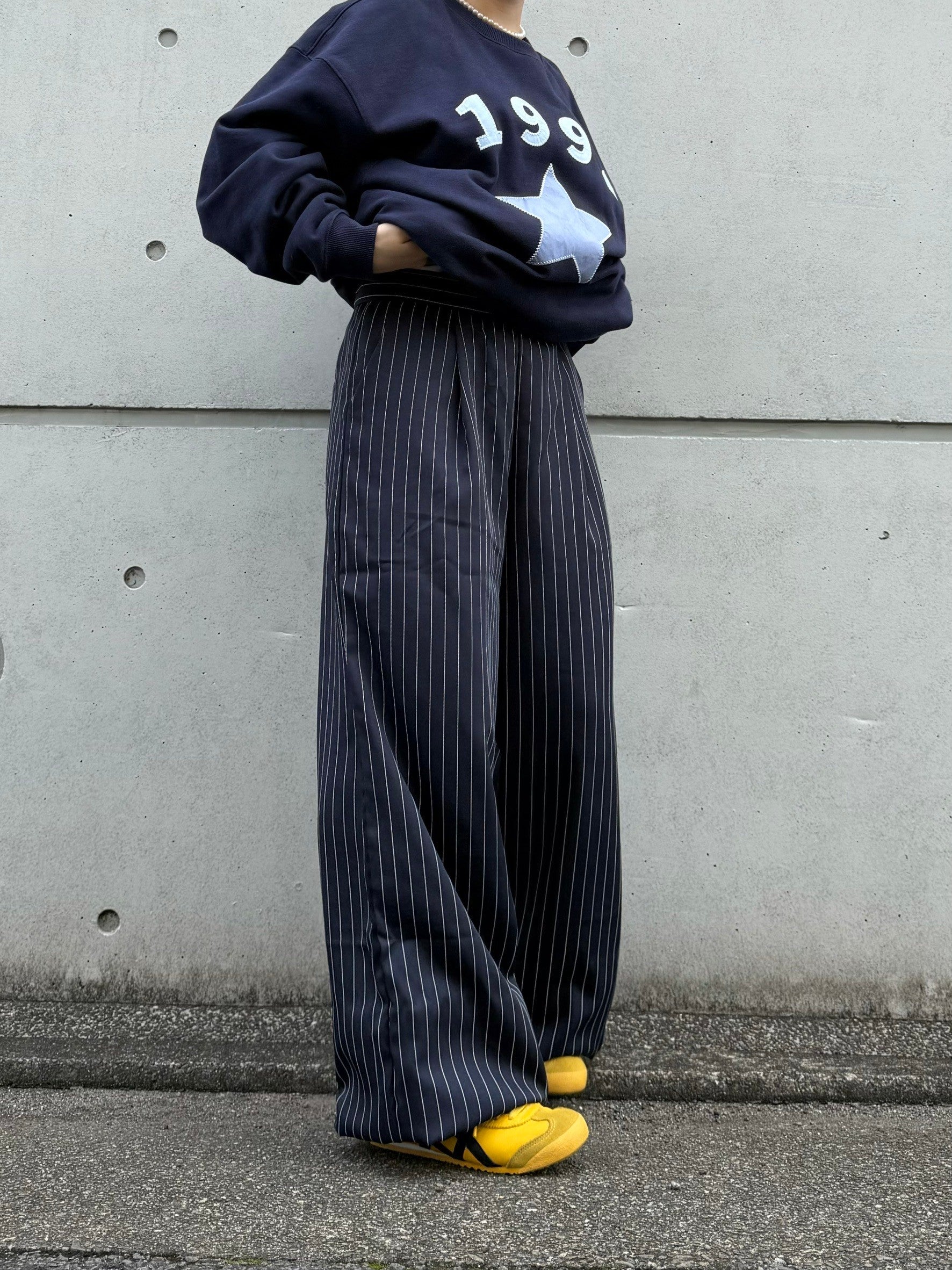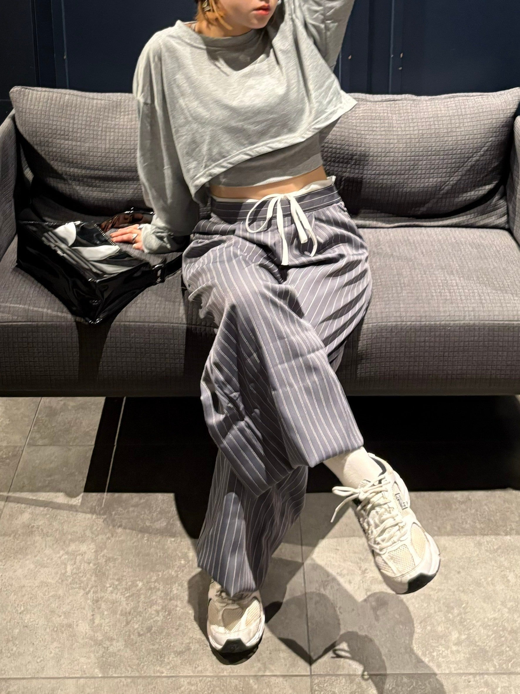 トレンドのダブルウエストデザインでモードな印象のストレートパンツ。