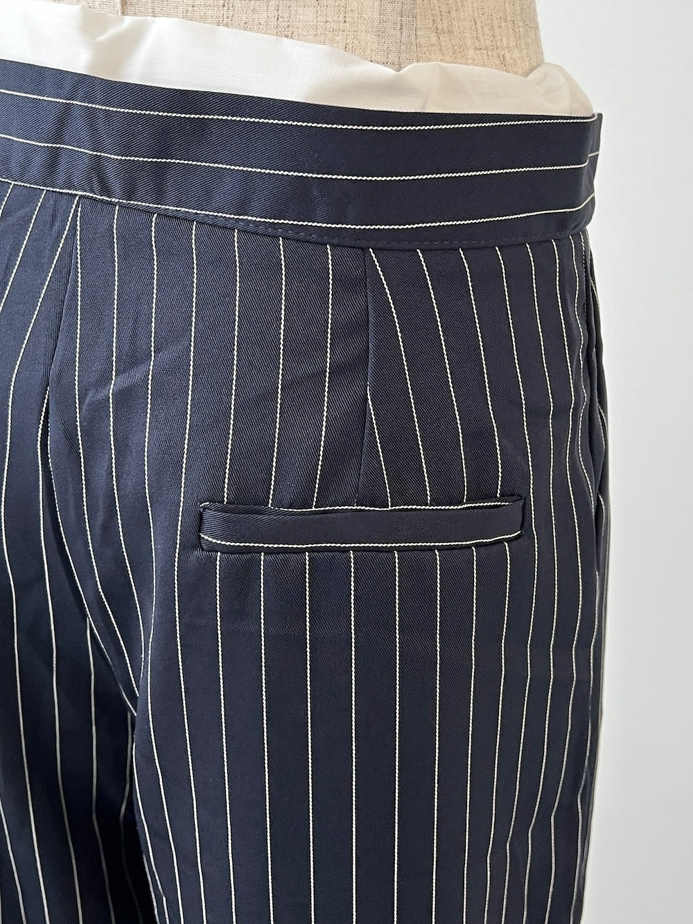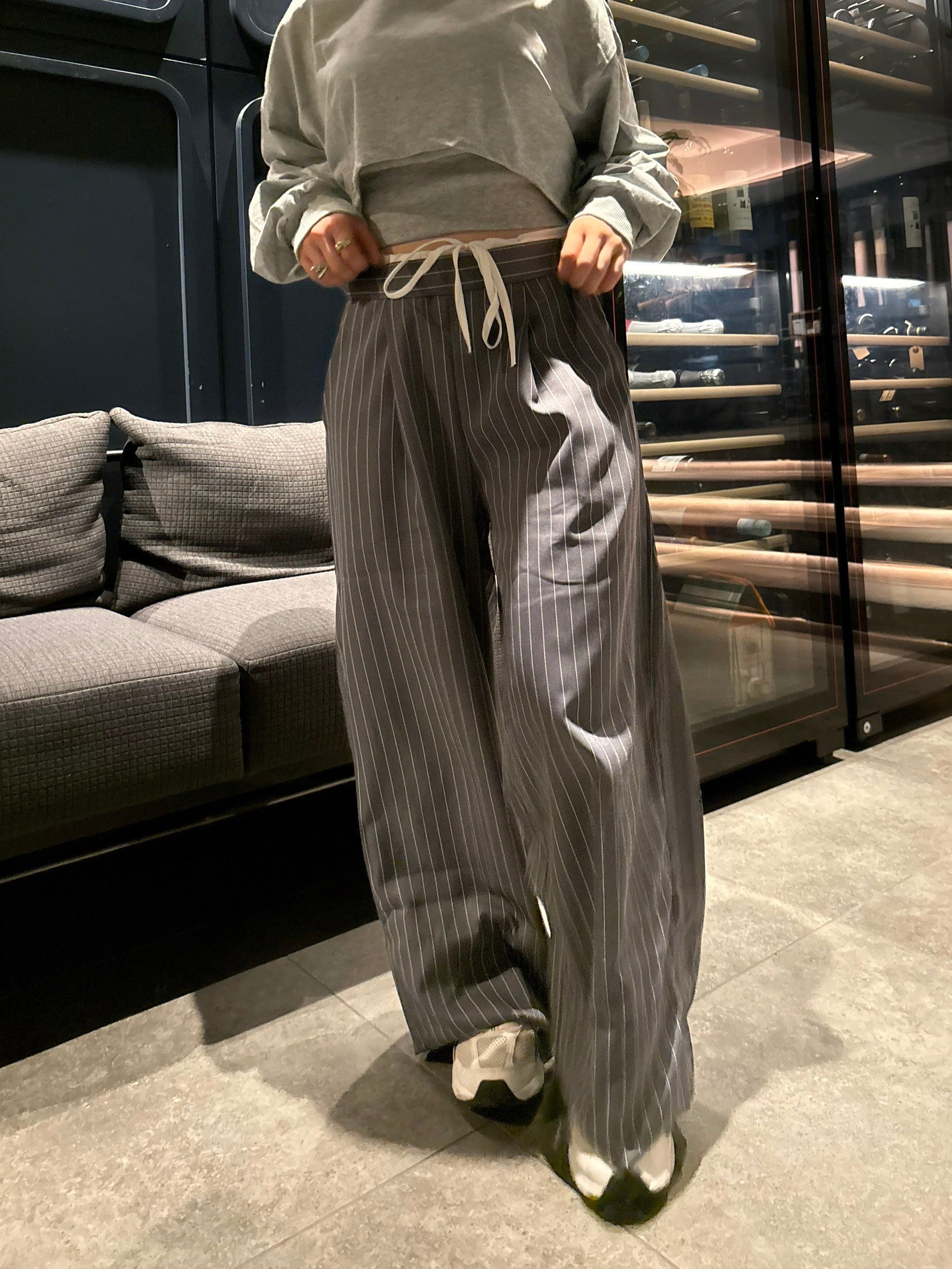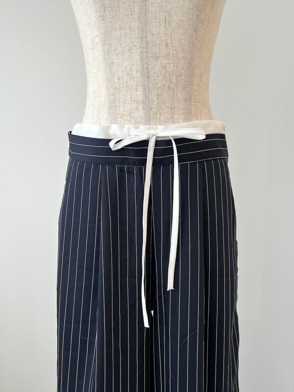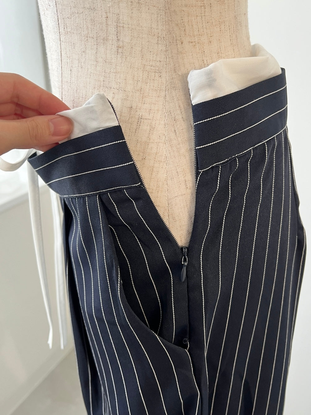 トレンドのダブルウエストデザインでモードな印象のストレートパンツ。