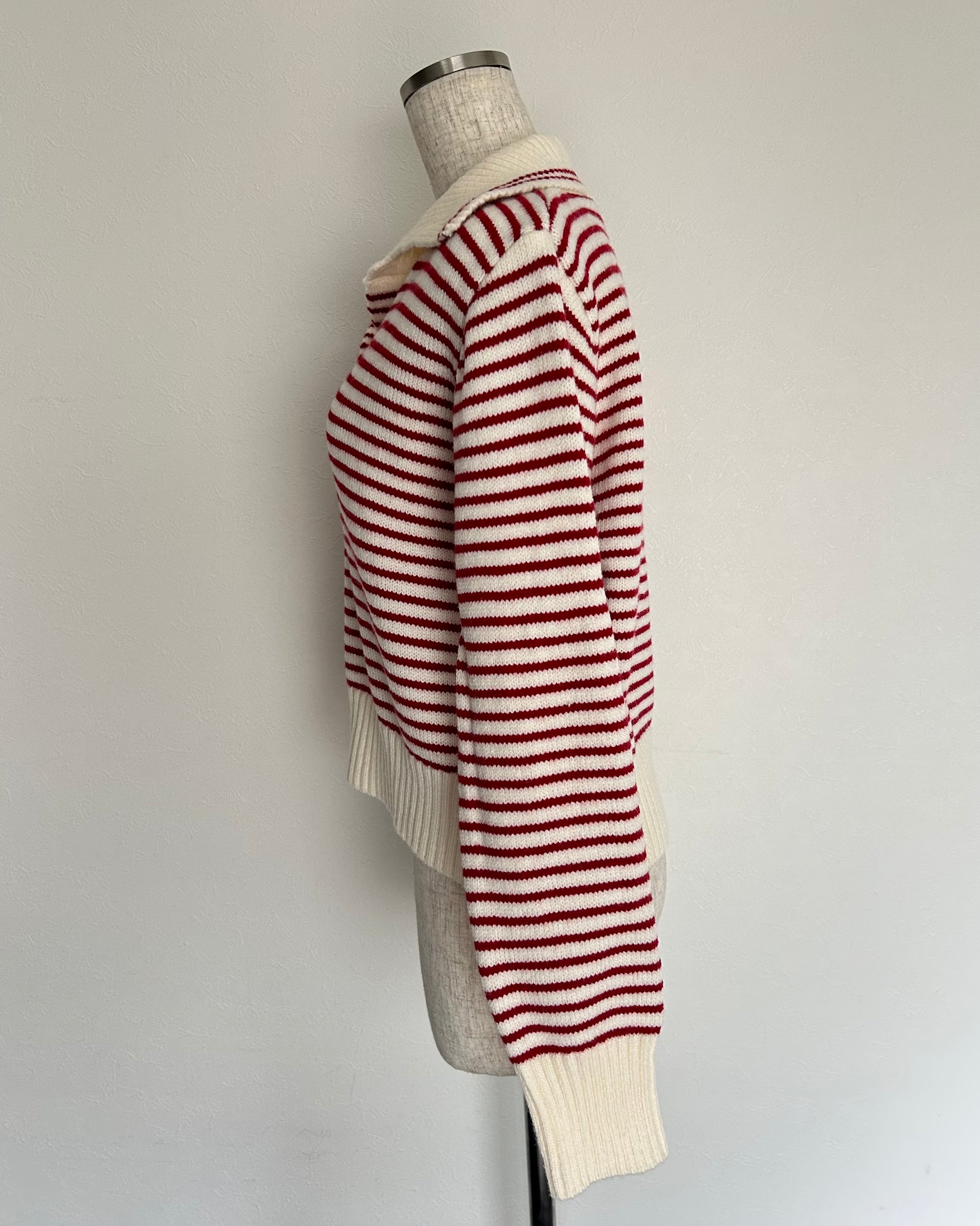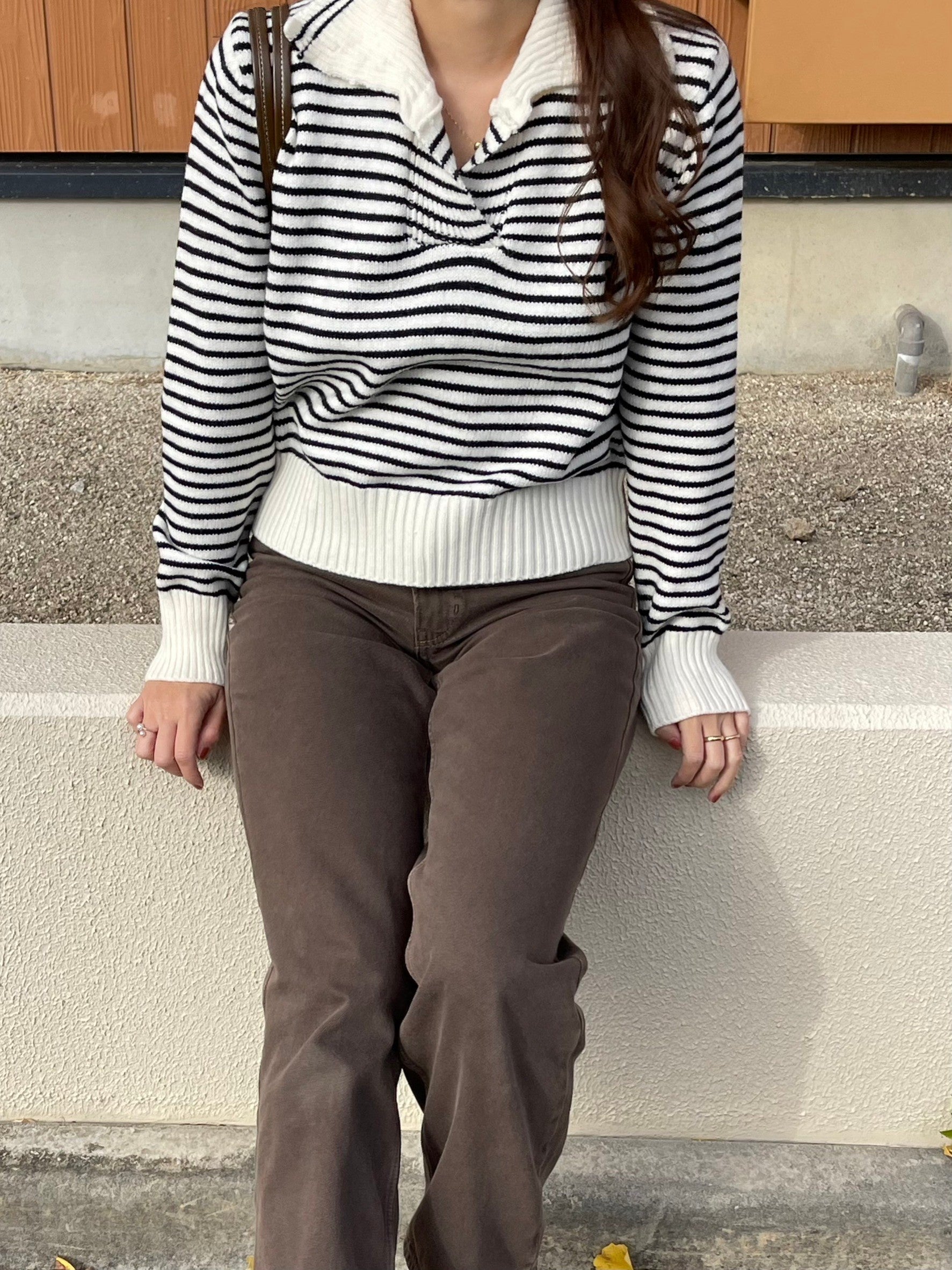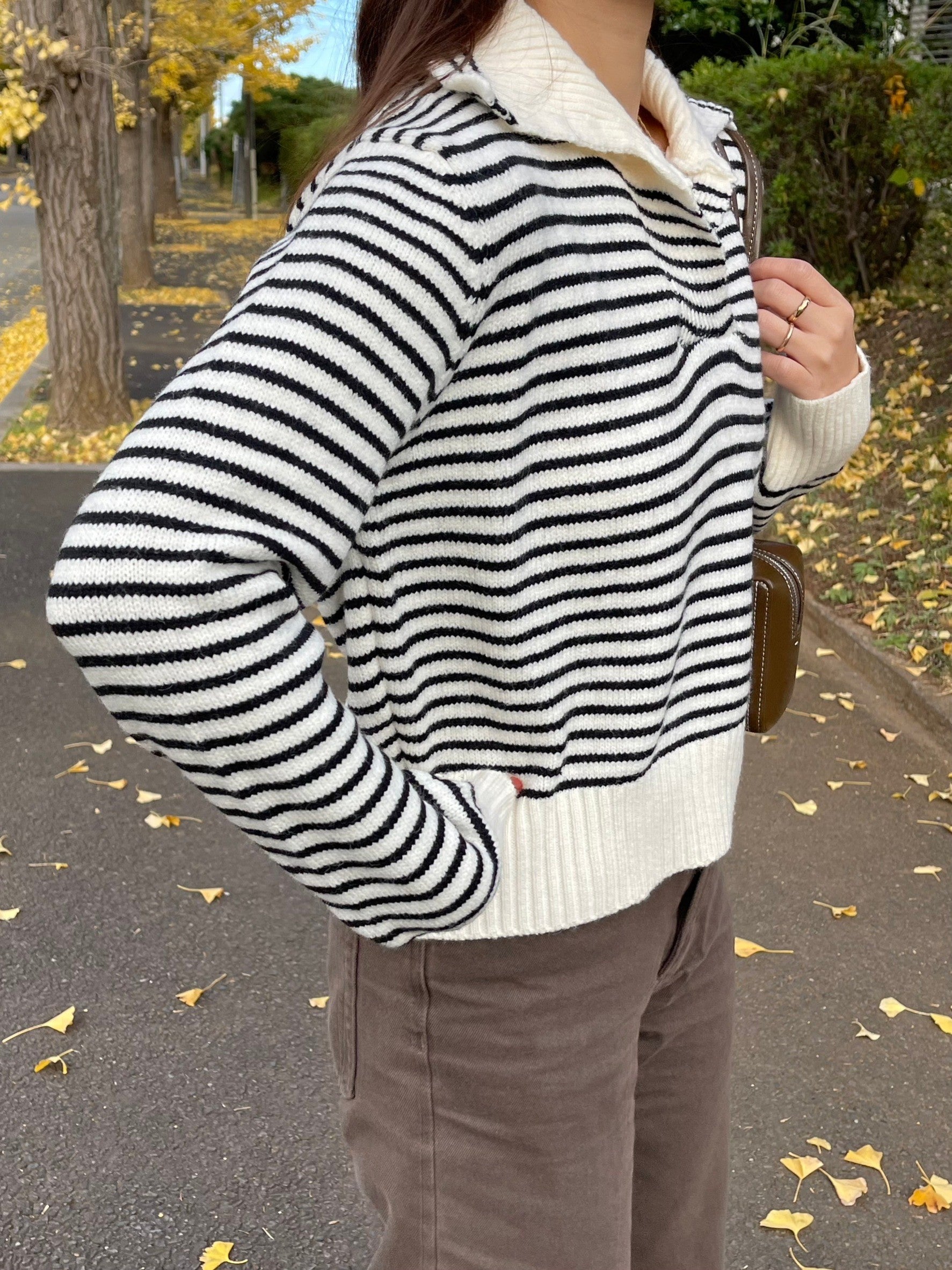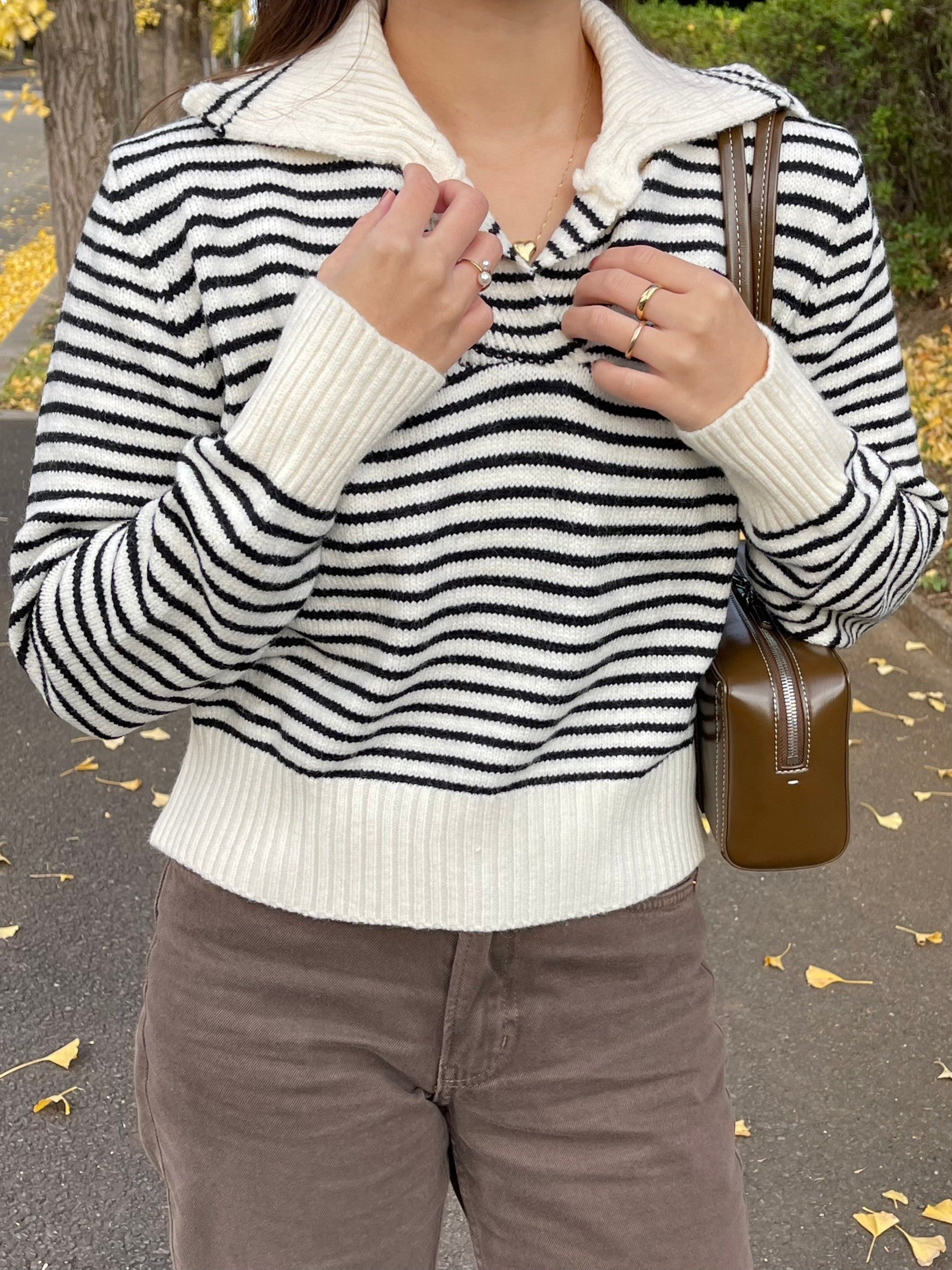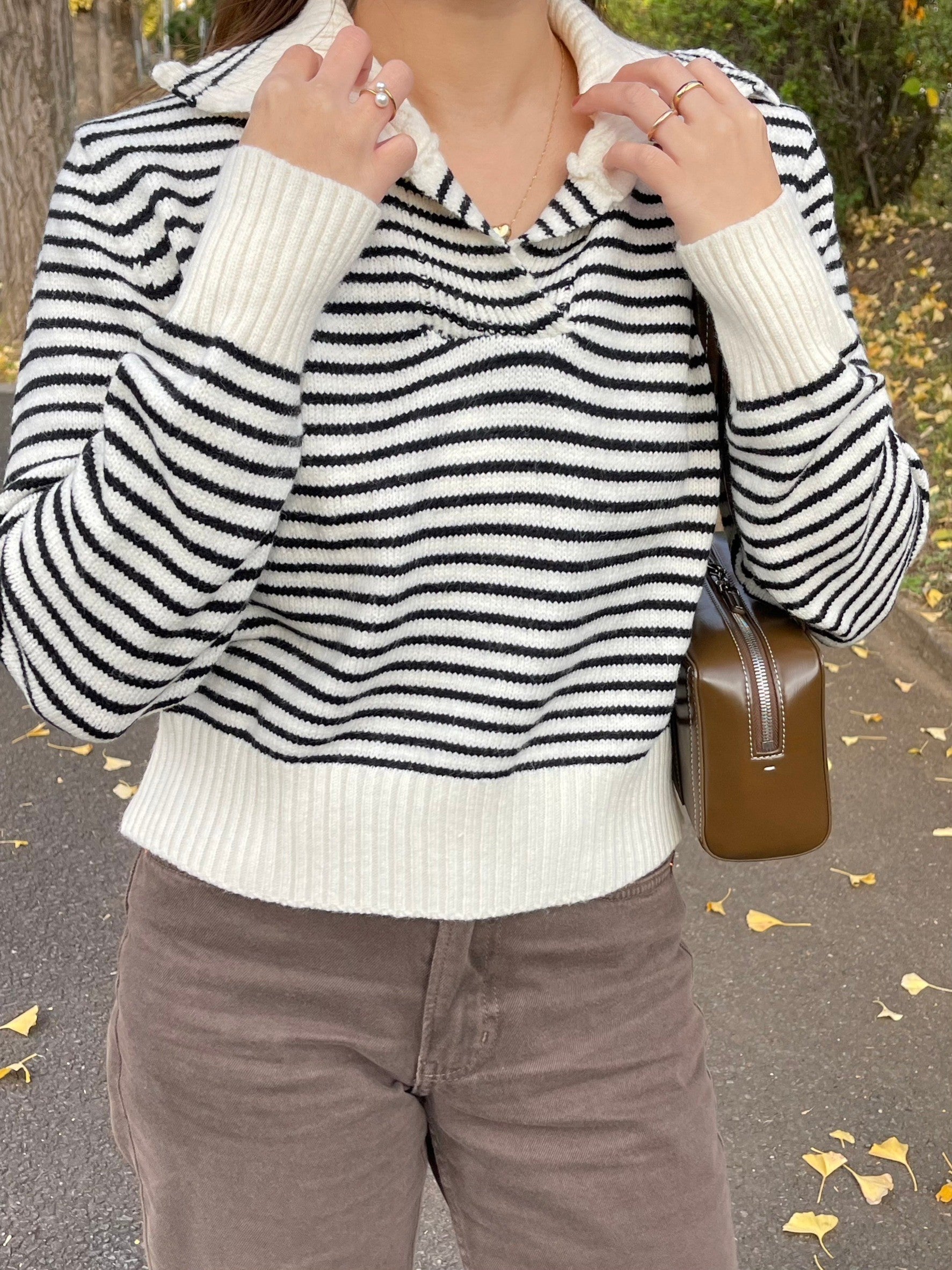 襟がポイントのニット。