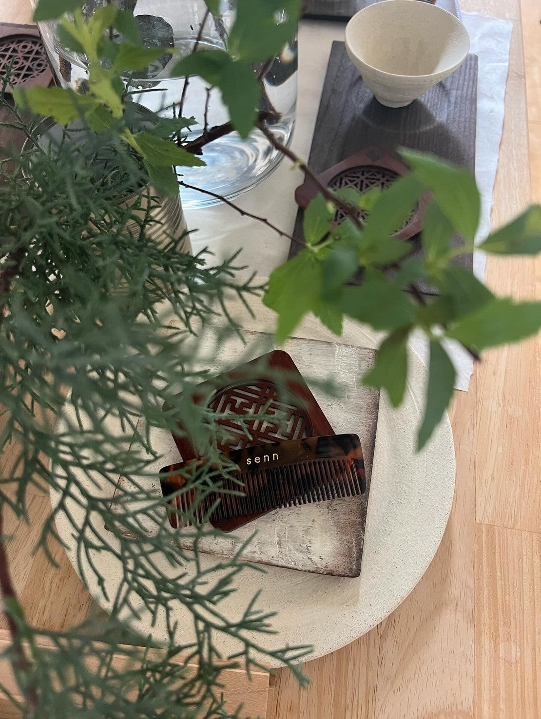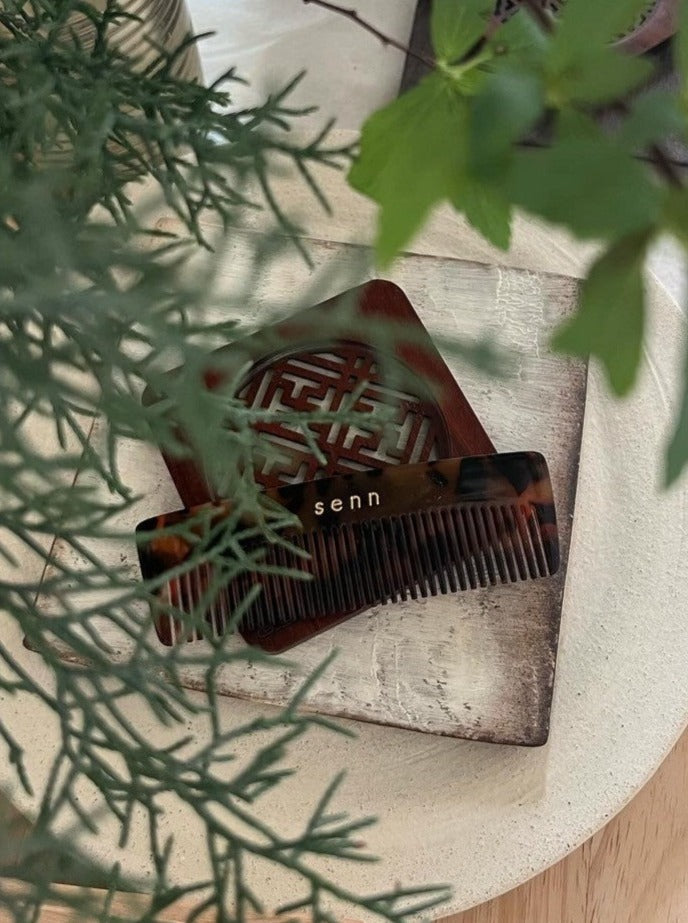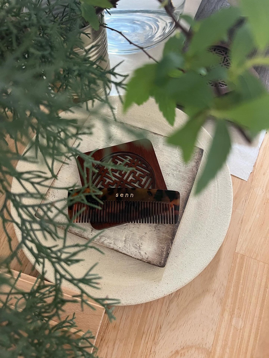 sennのゴールドのロゴが入ったヘアコーム(櫛)です。