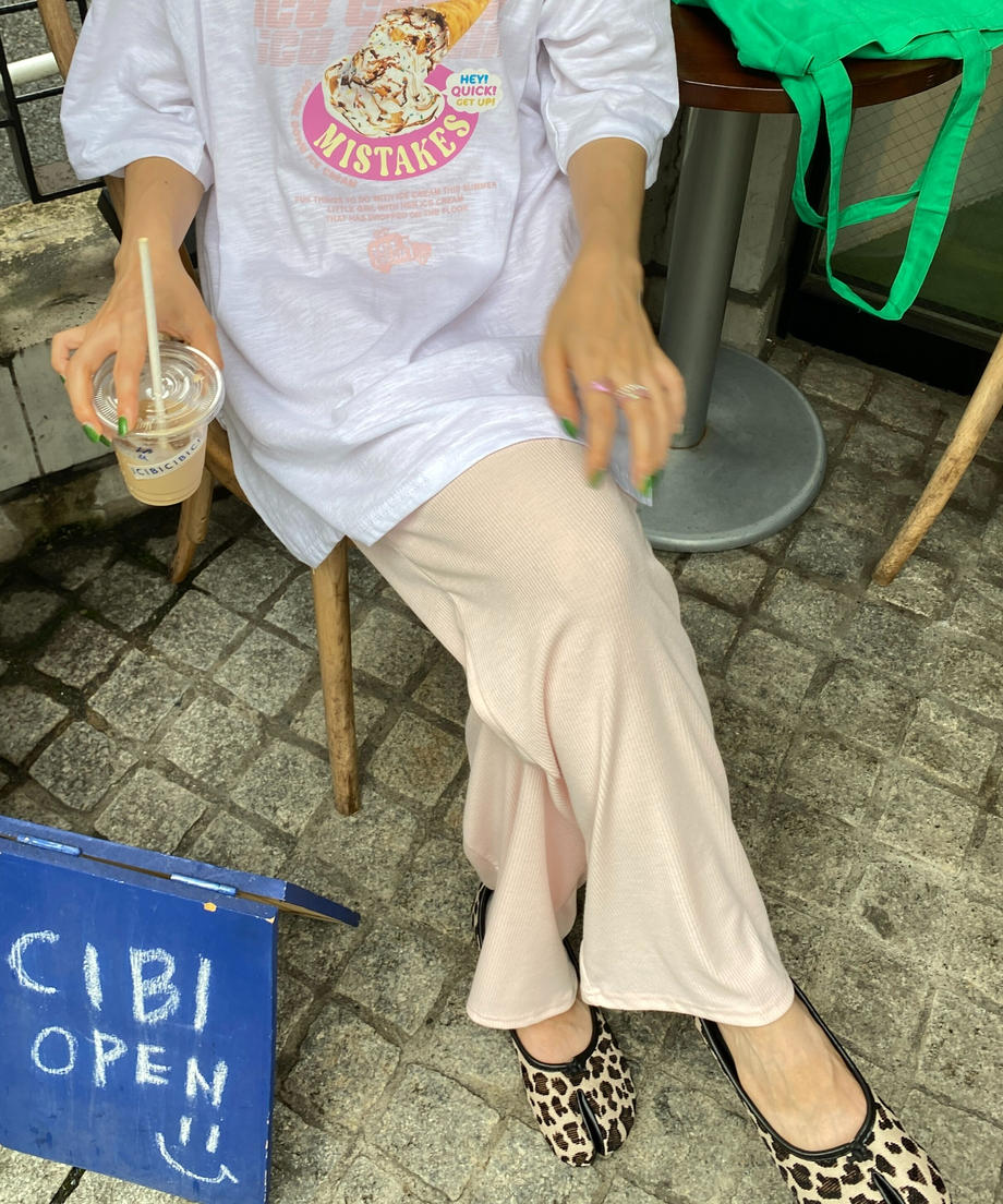シンプルなのでプリントTシャツや柄トップスとも相性抜群!