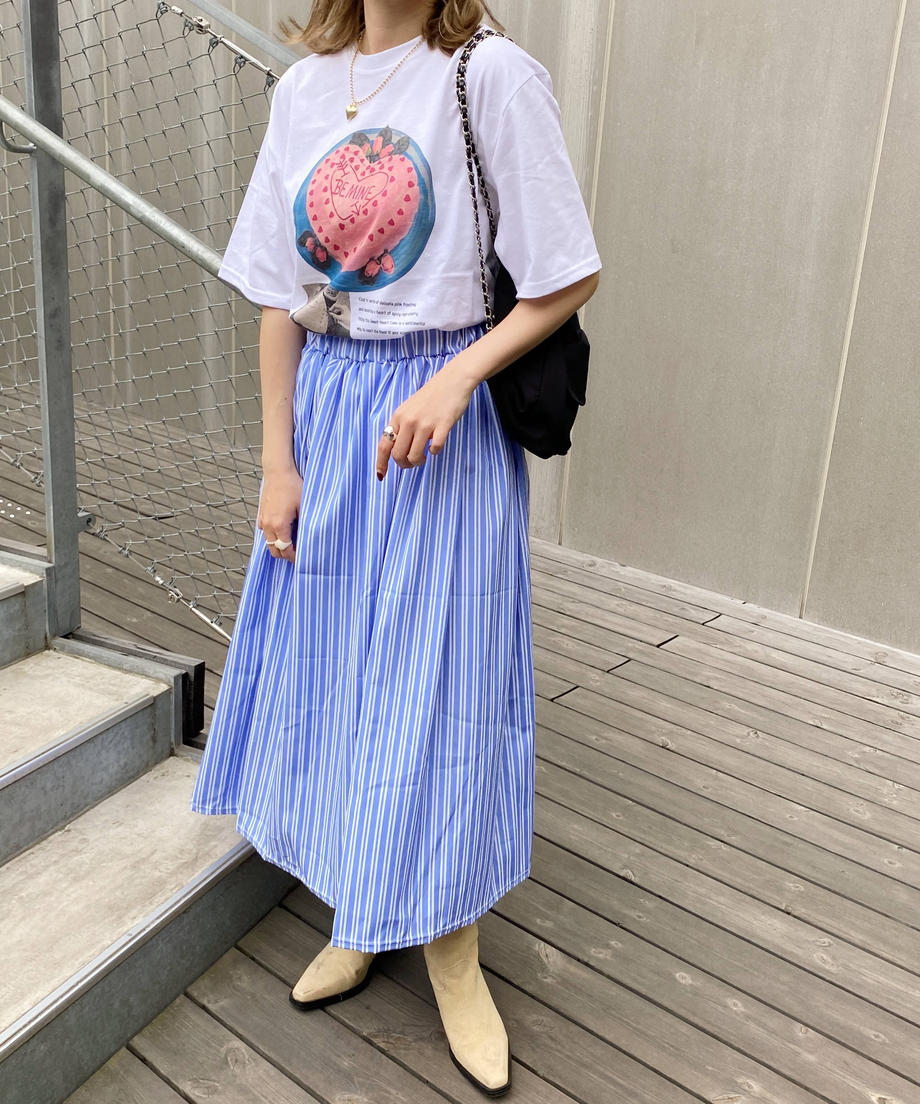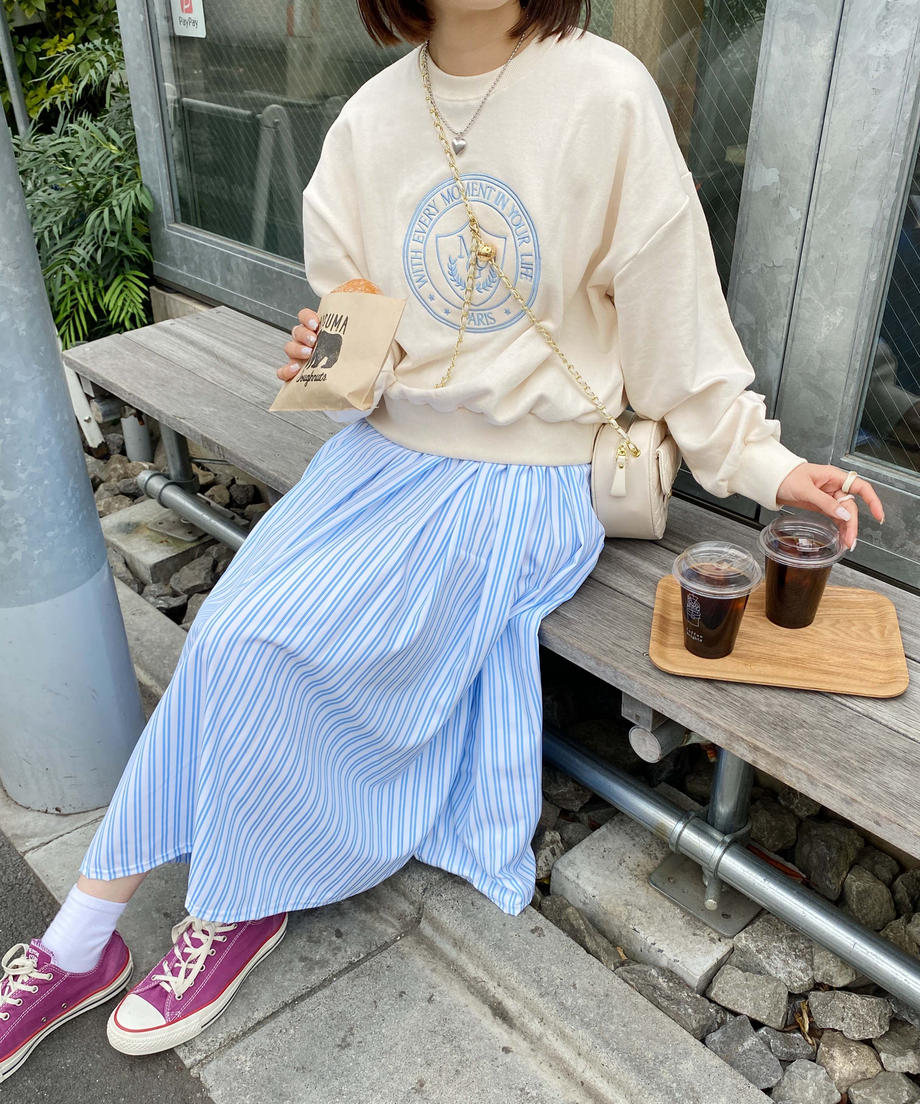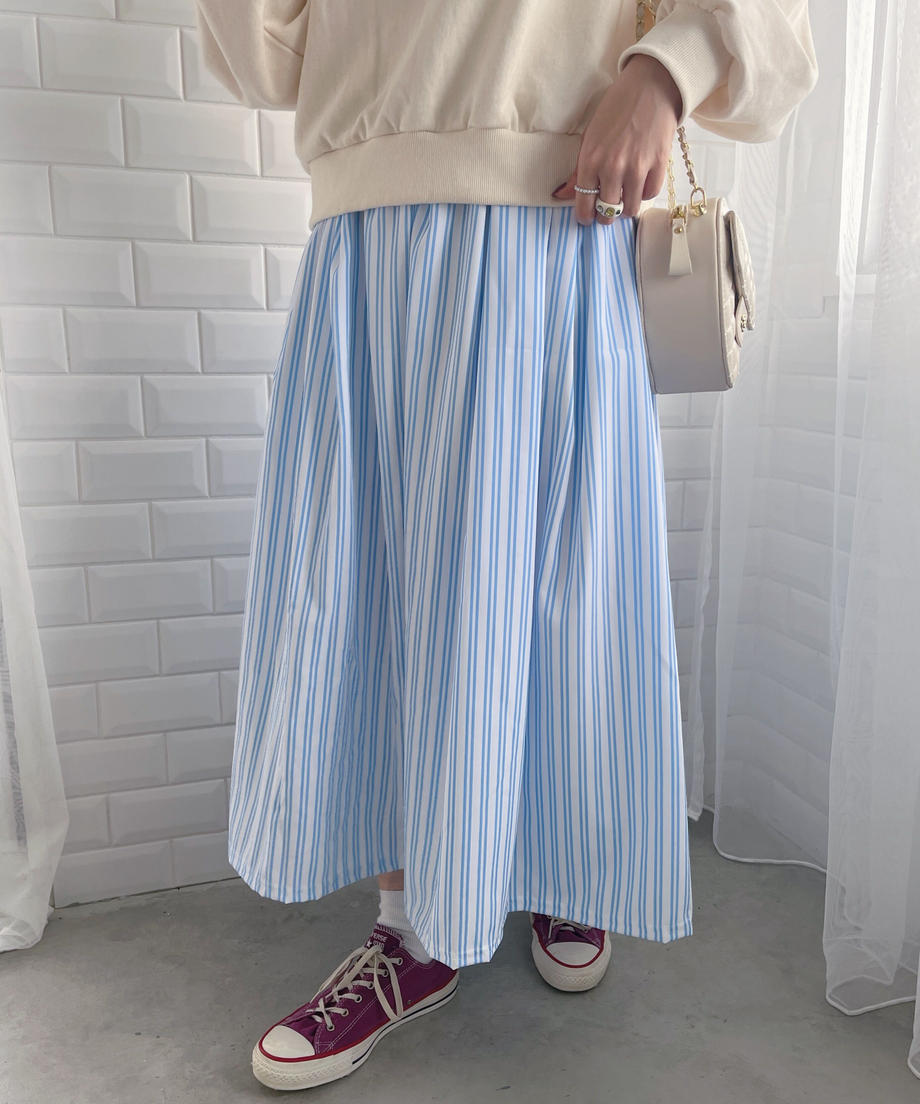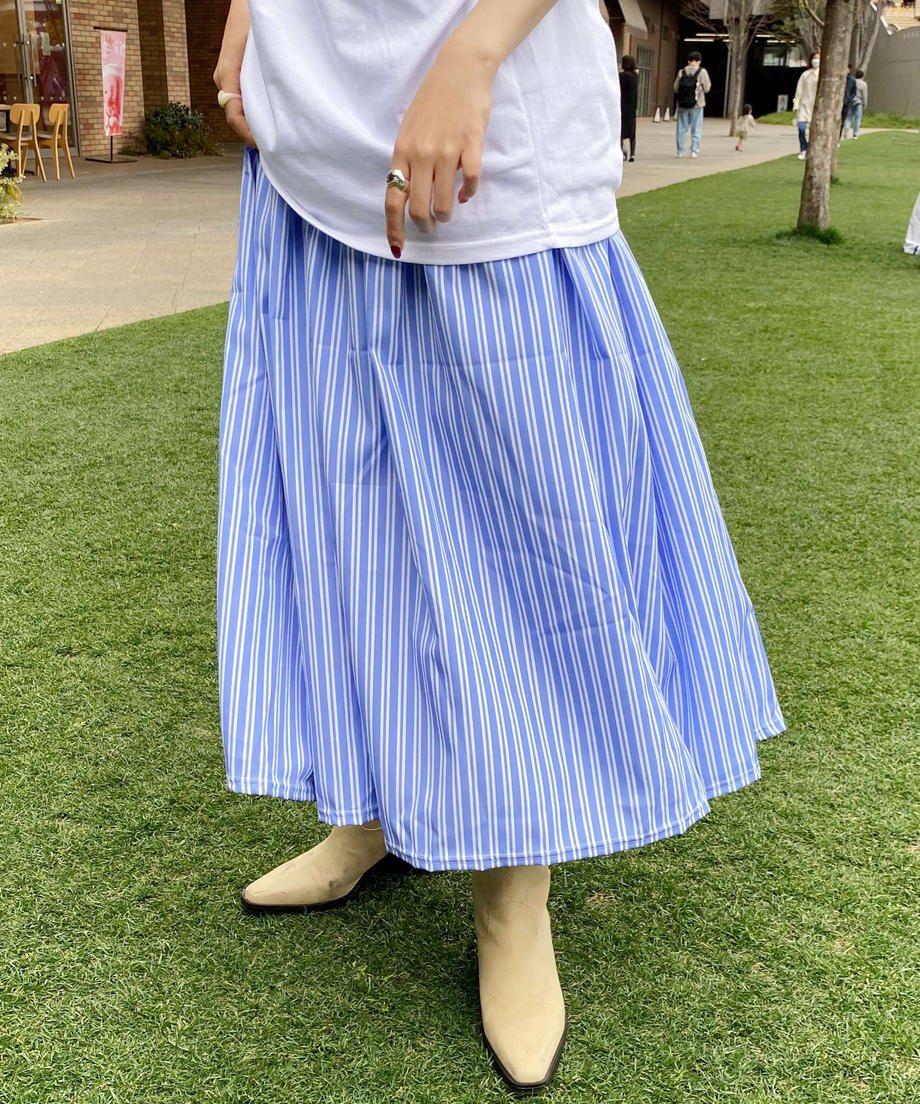 フレンチストライプが爽やかな印象のスカート。