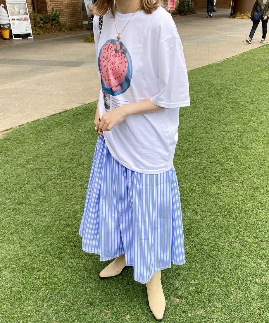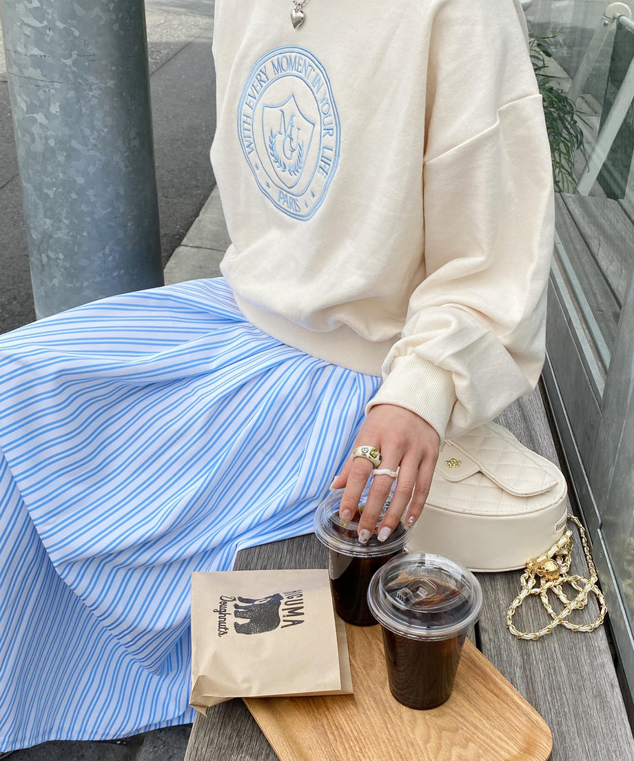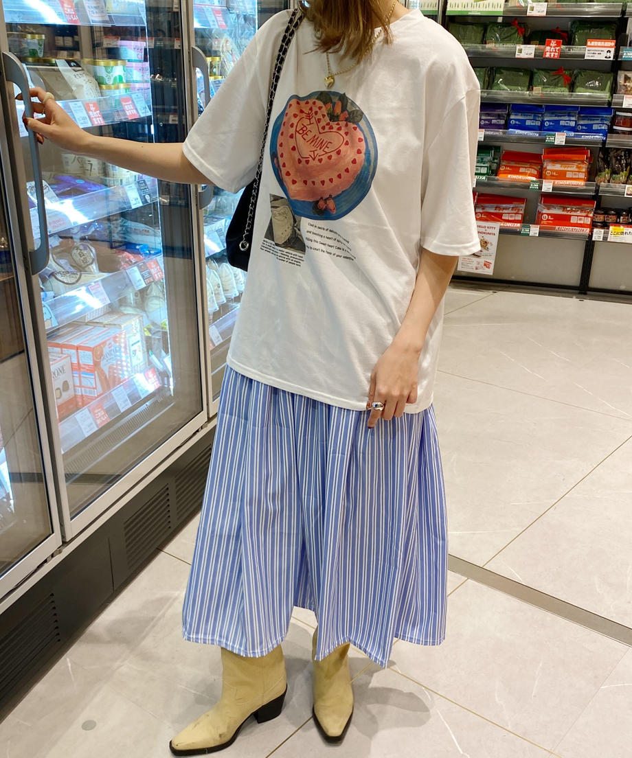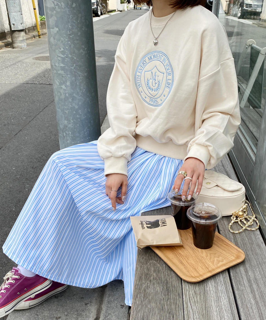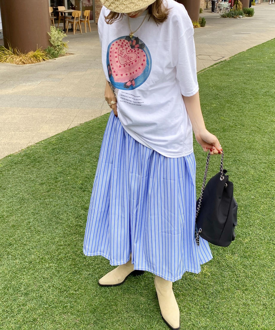 フレンチストライプが爽やかな印象のスカート。