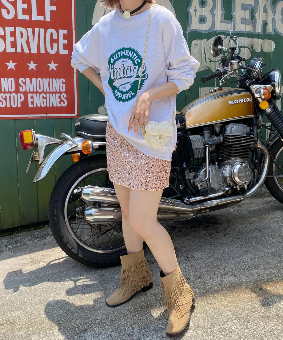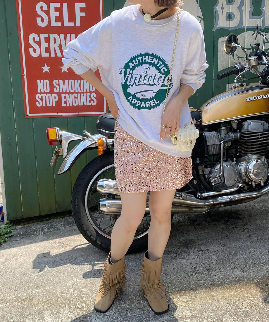スウェット合わせでカジュアルガーリーに演出してもGOOD!