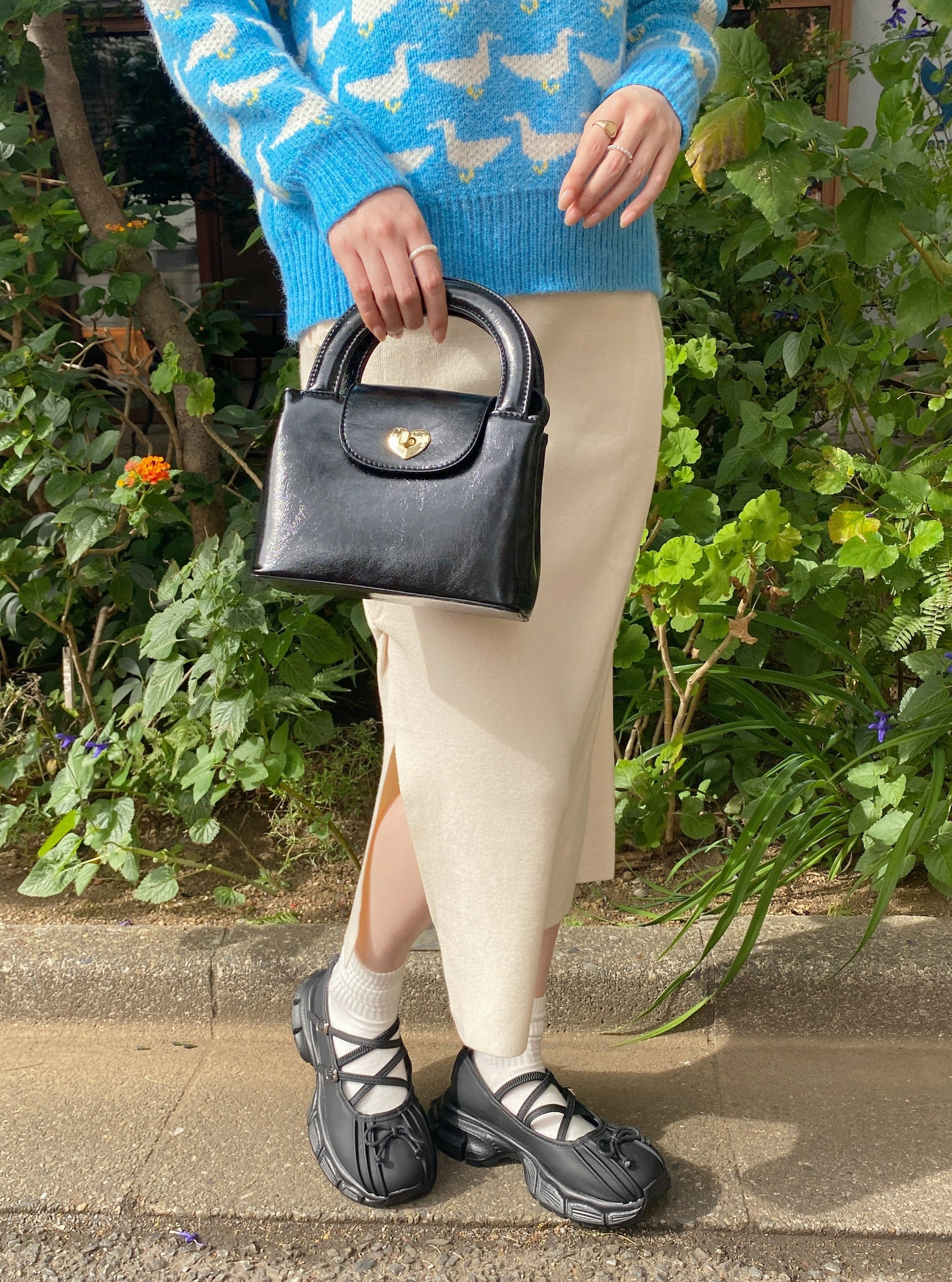 オーバーサイズのスウェットやニットアイテム合わせの