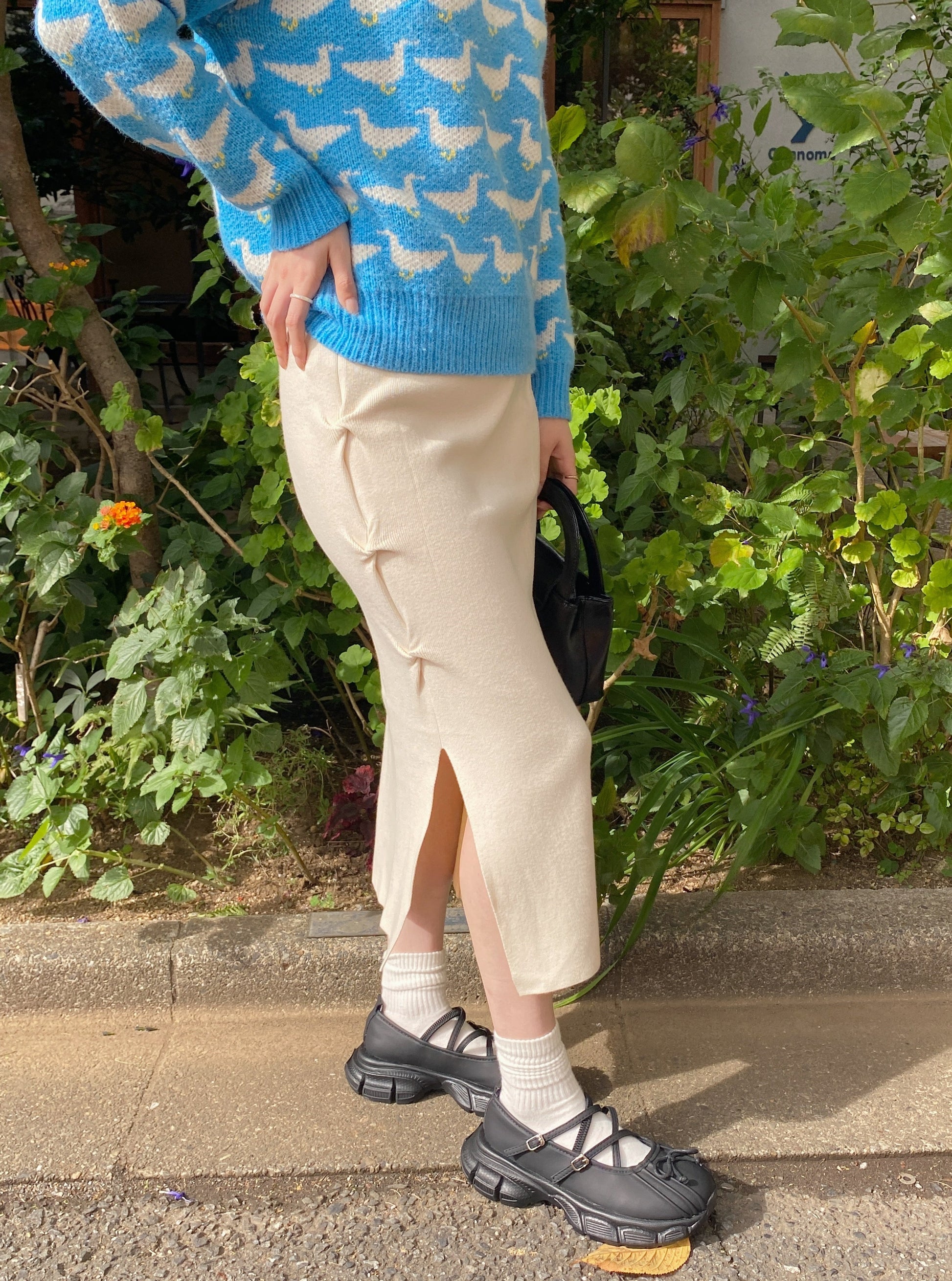 ウエストゴム&スリットヘムデザインなので動きやすさ抜群。