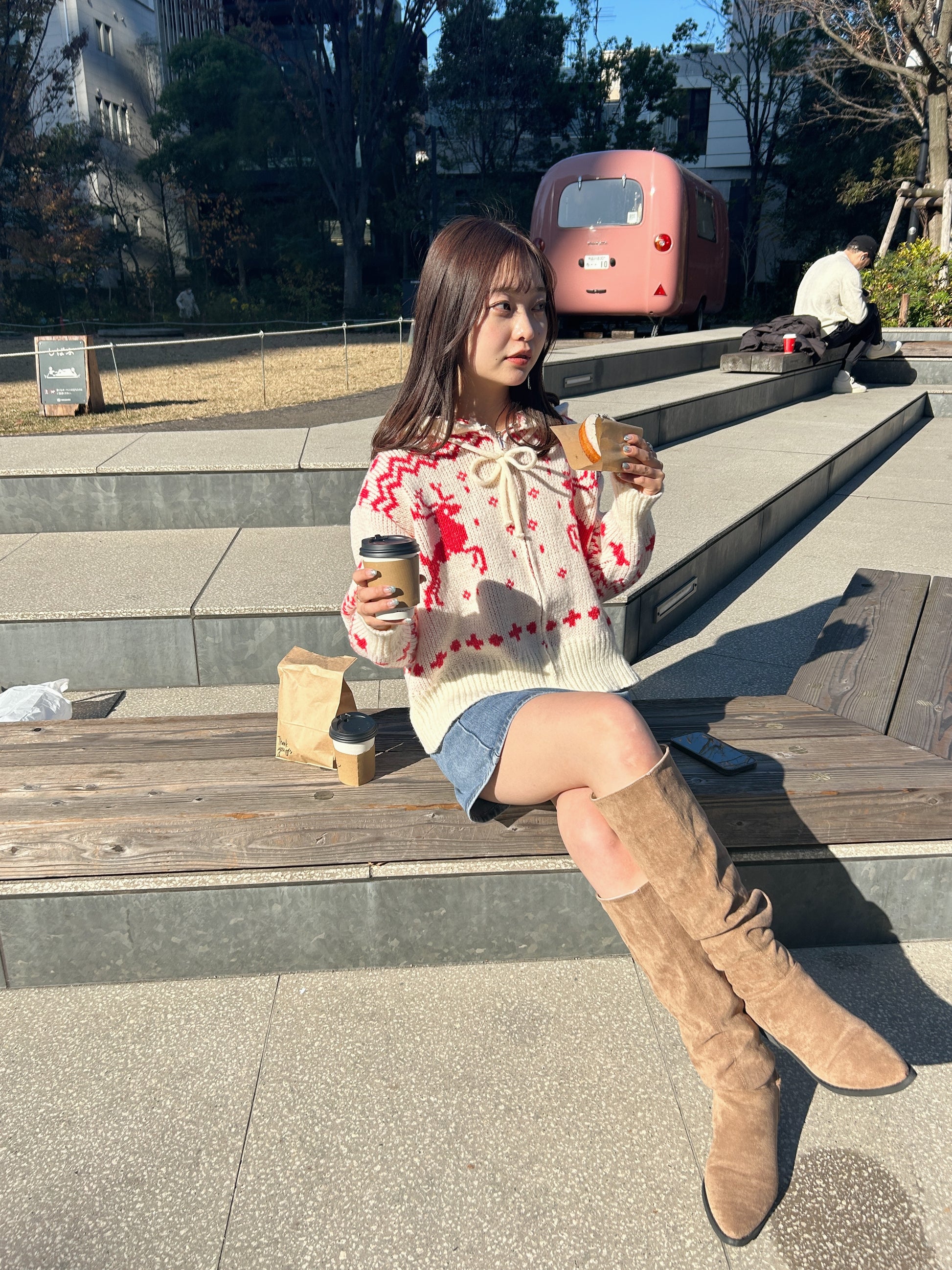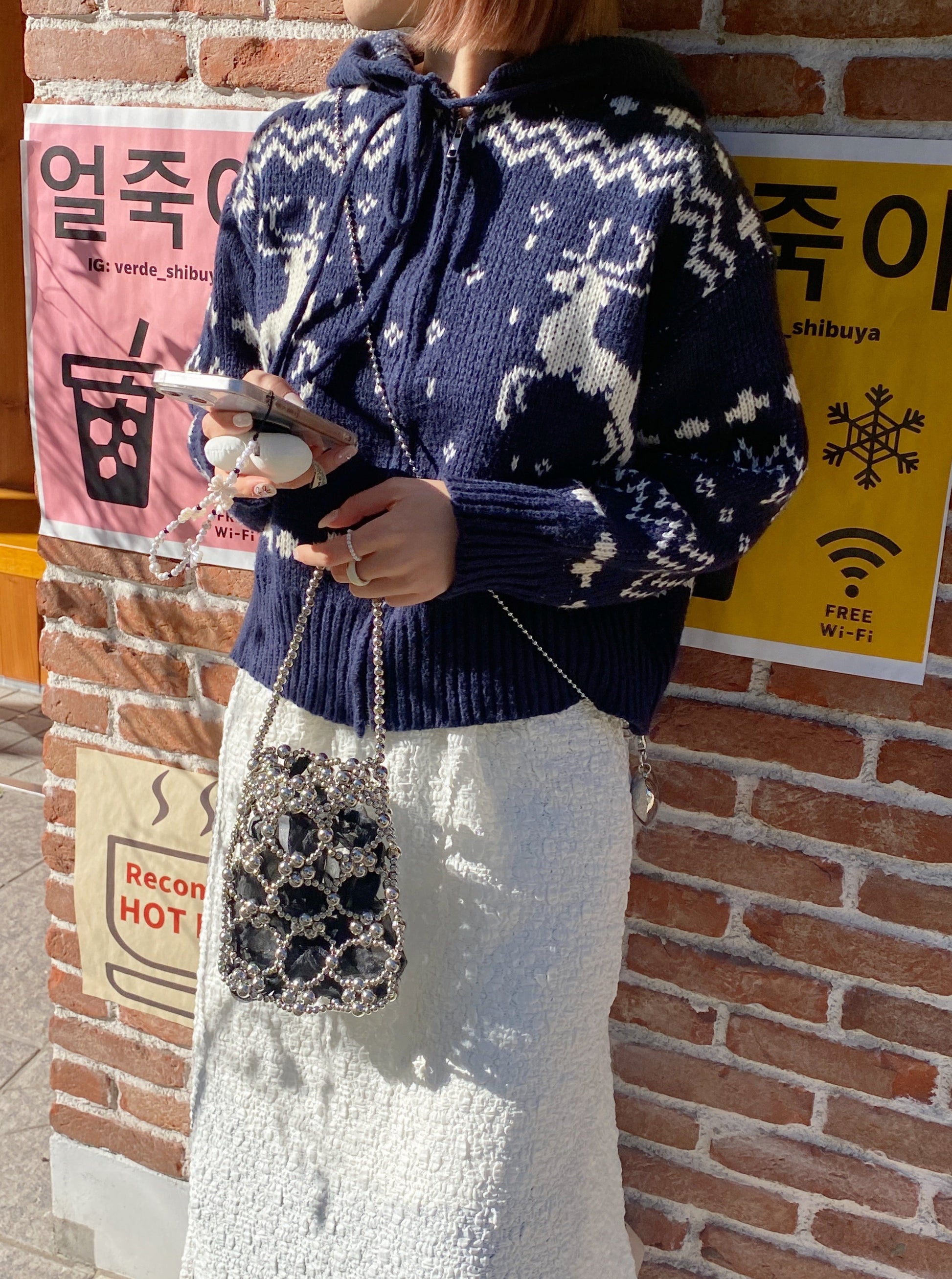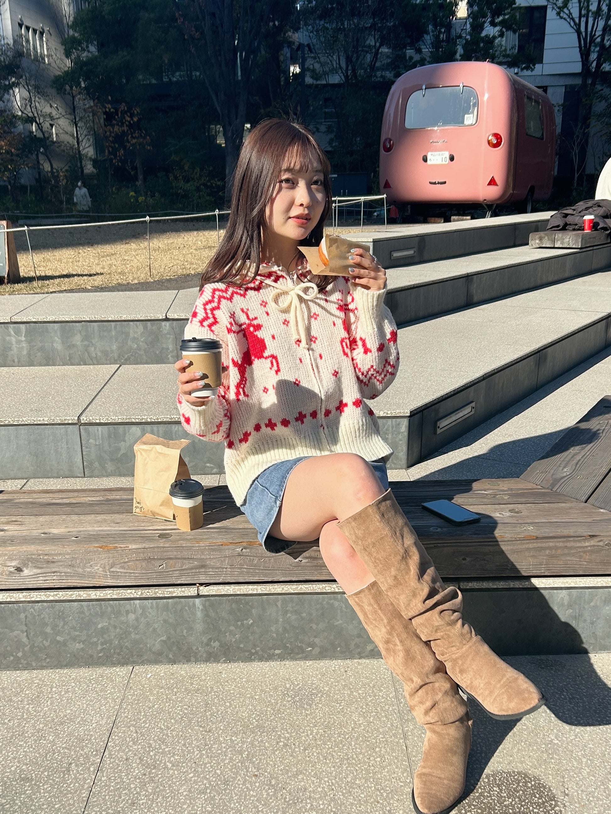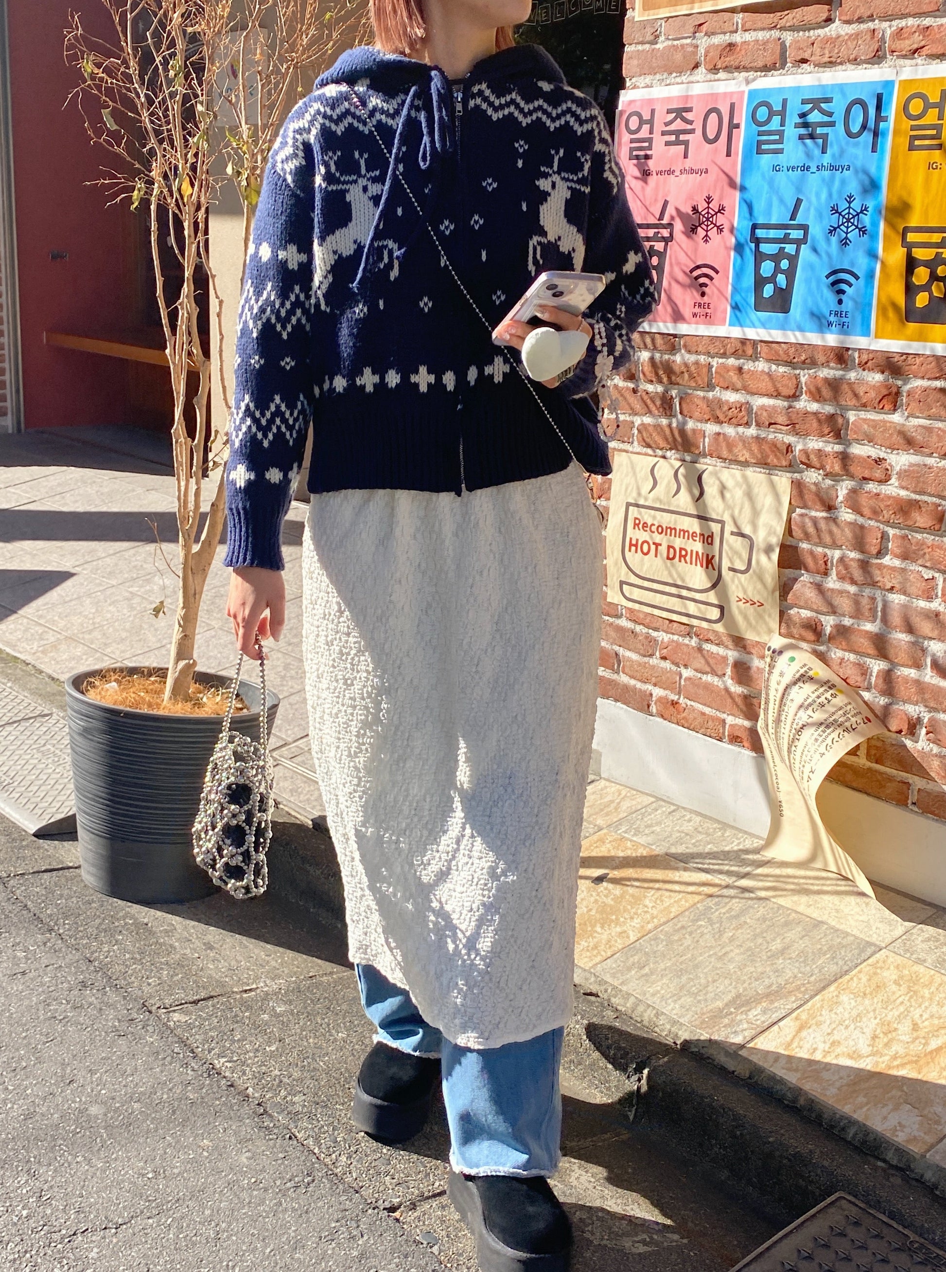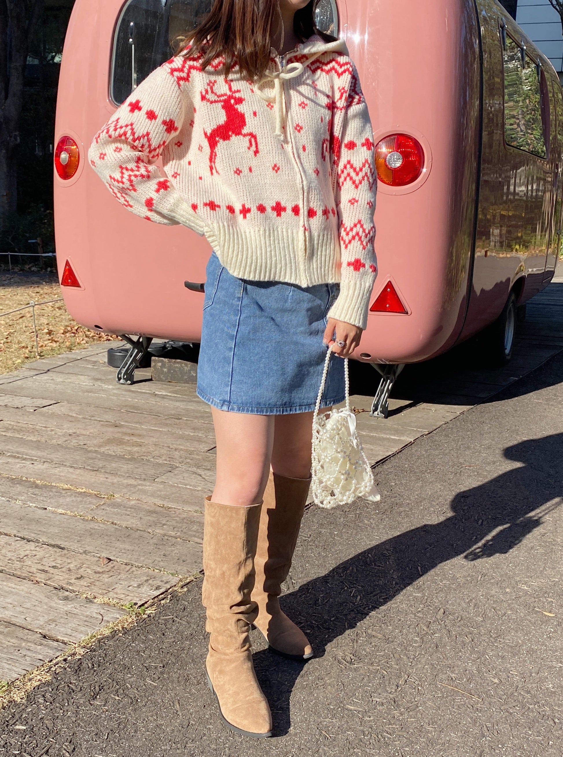 クリスマスにぴったりなジップアップカーディガンです。