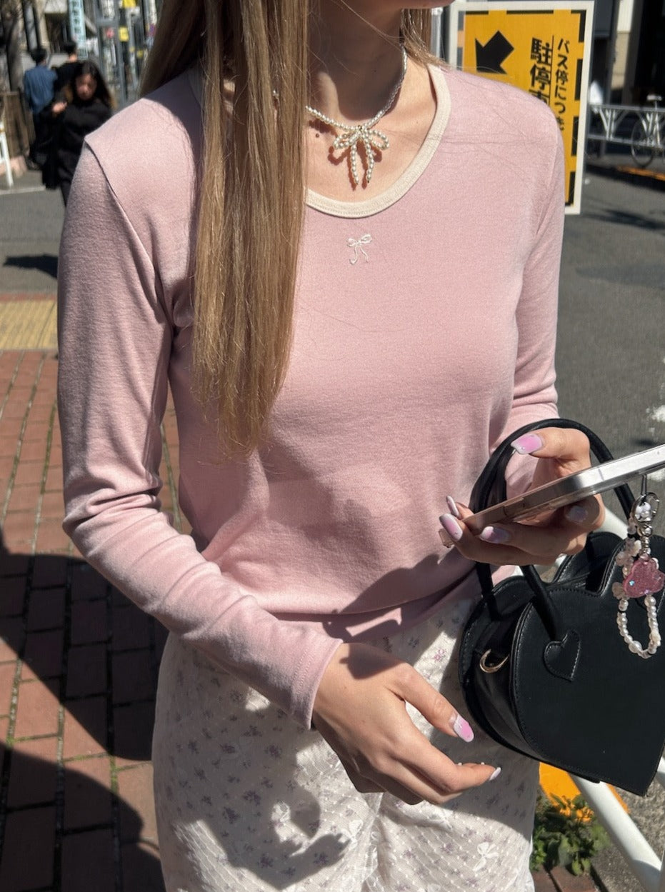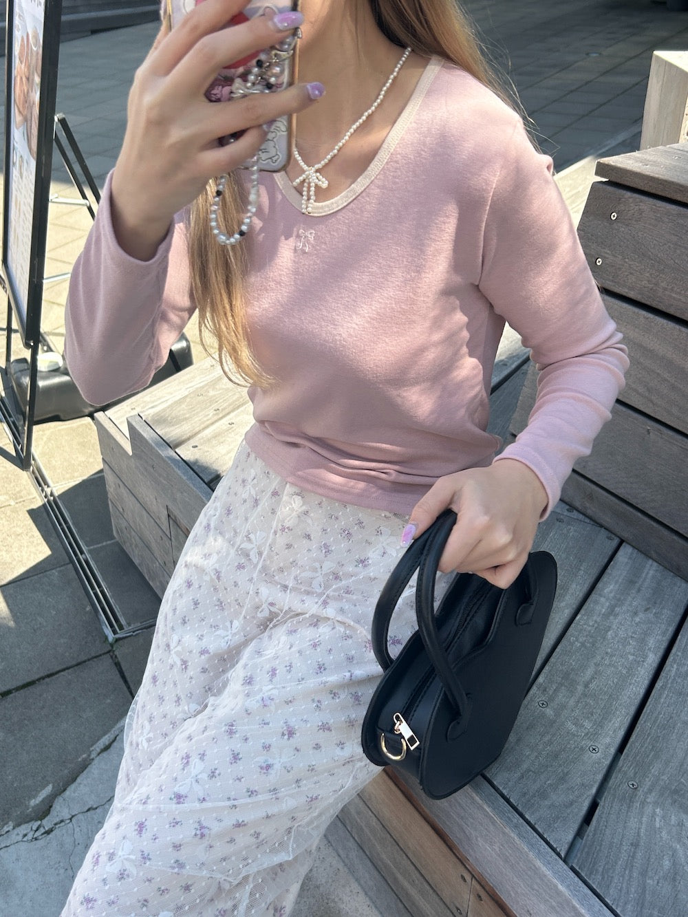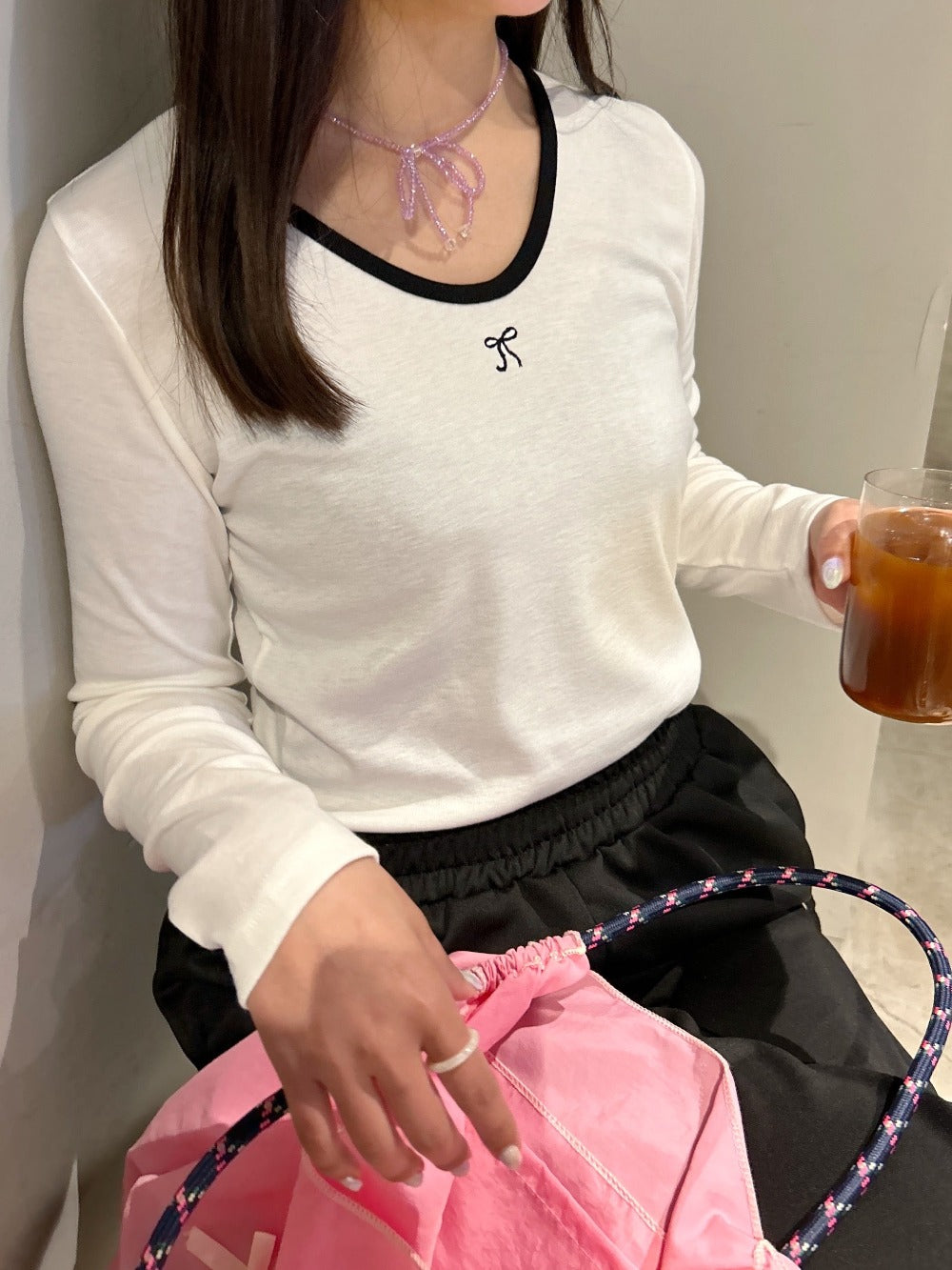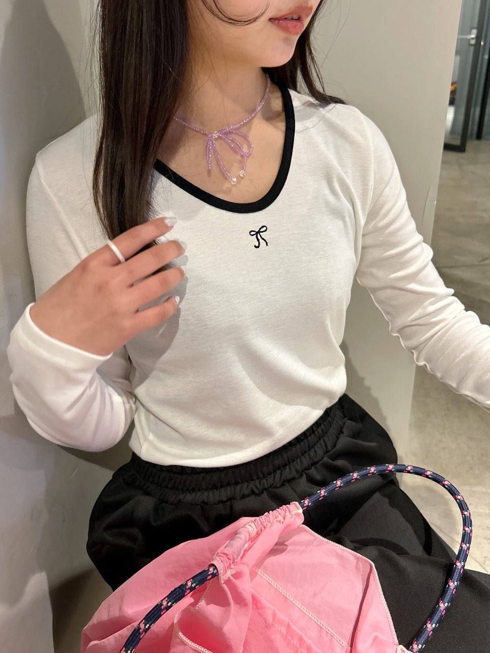 ワンポイントの繊細なリボン刺繍が可愛すぎる