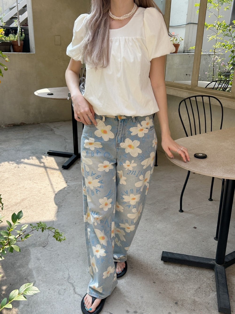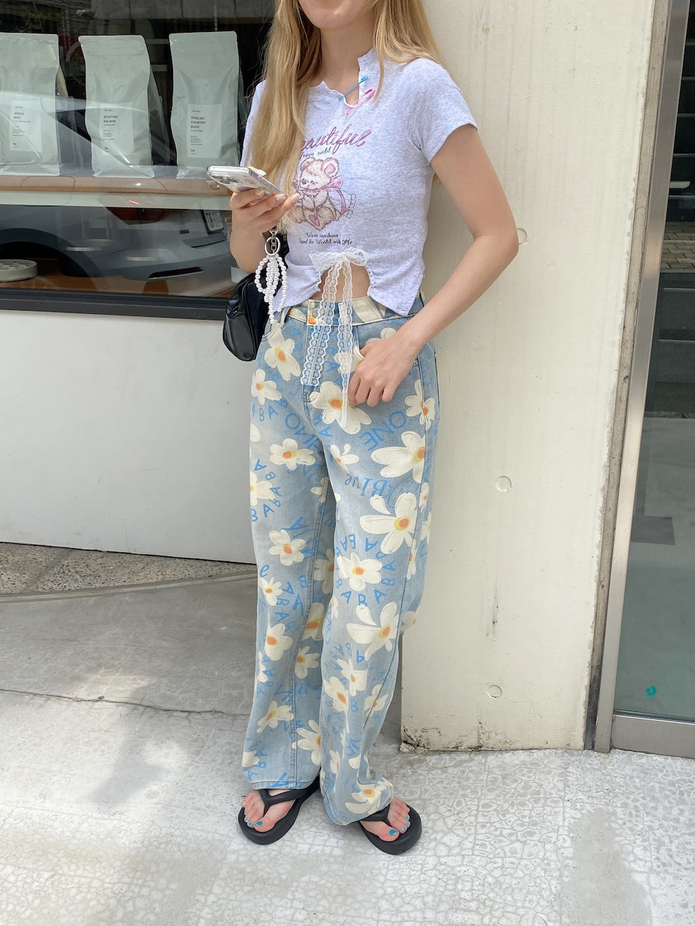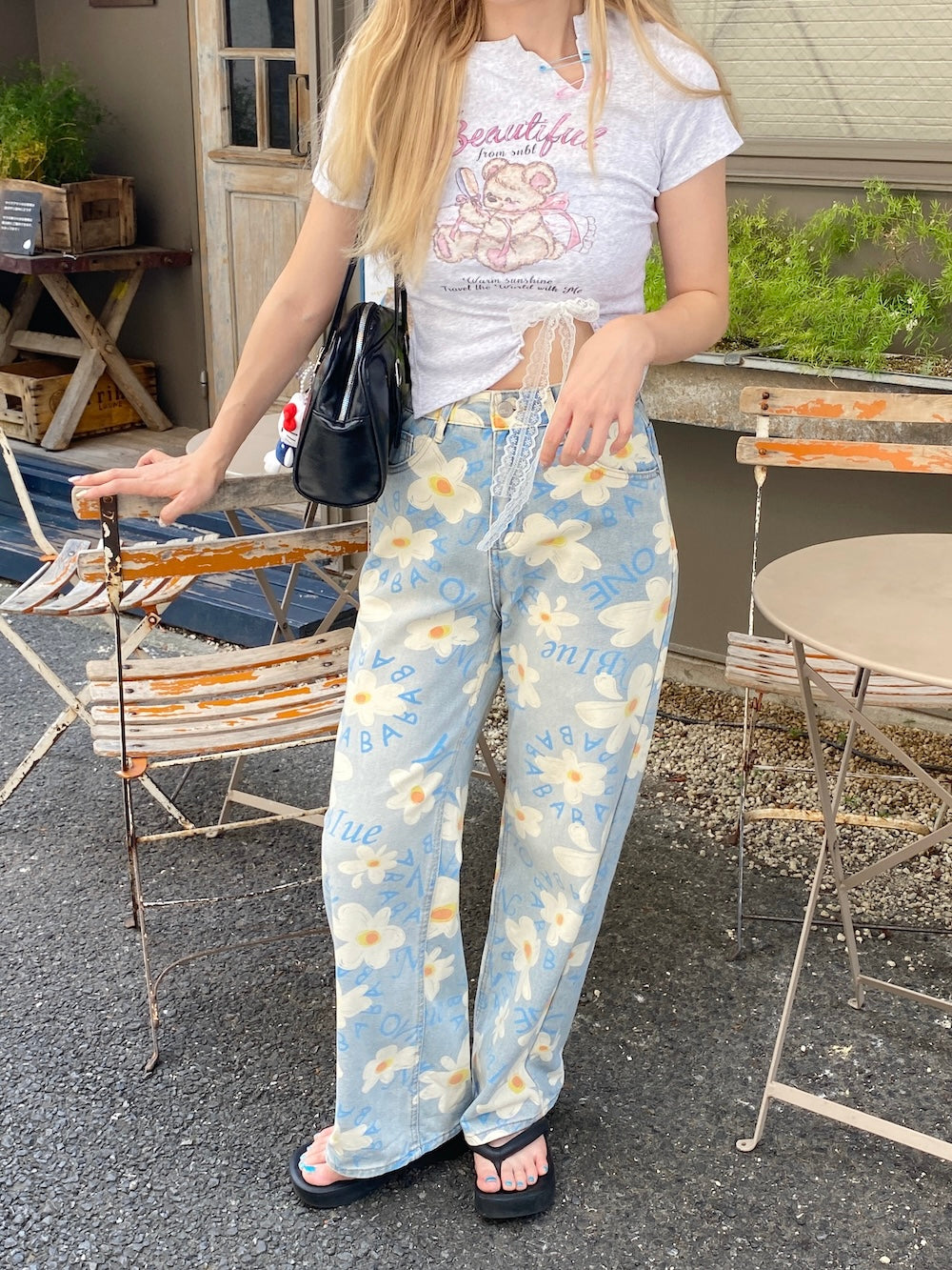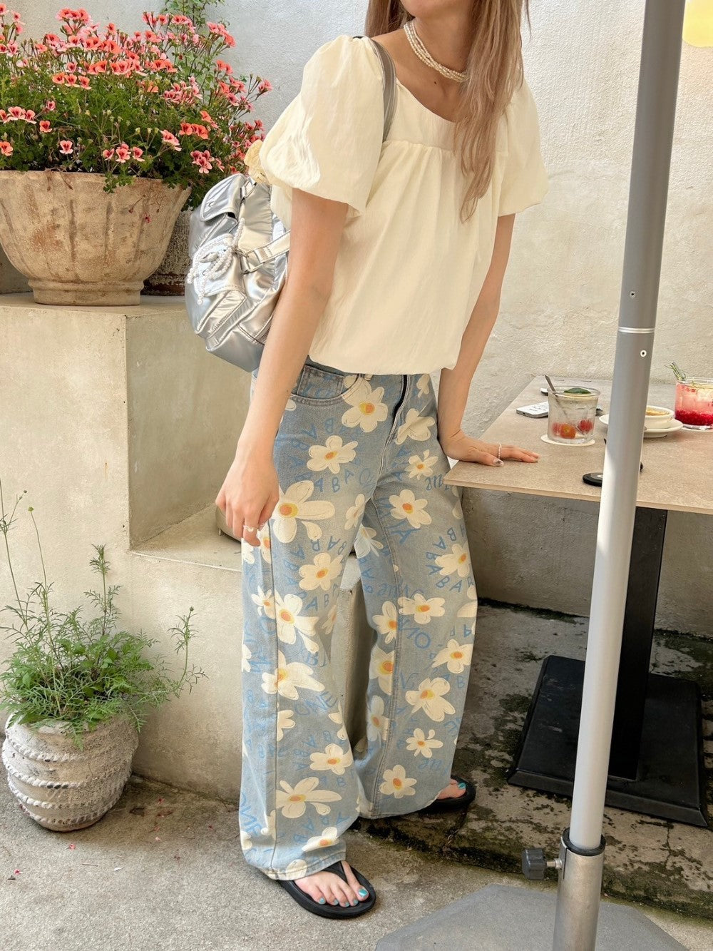ルーズなシルエットと花柄がマッチした