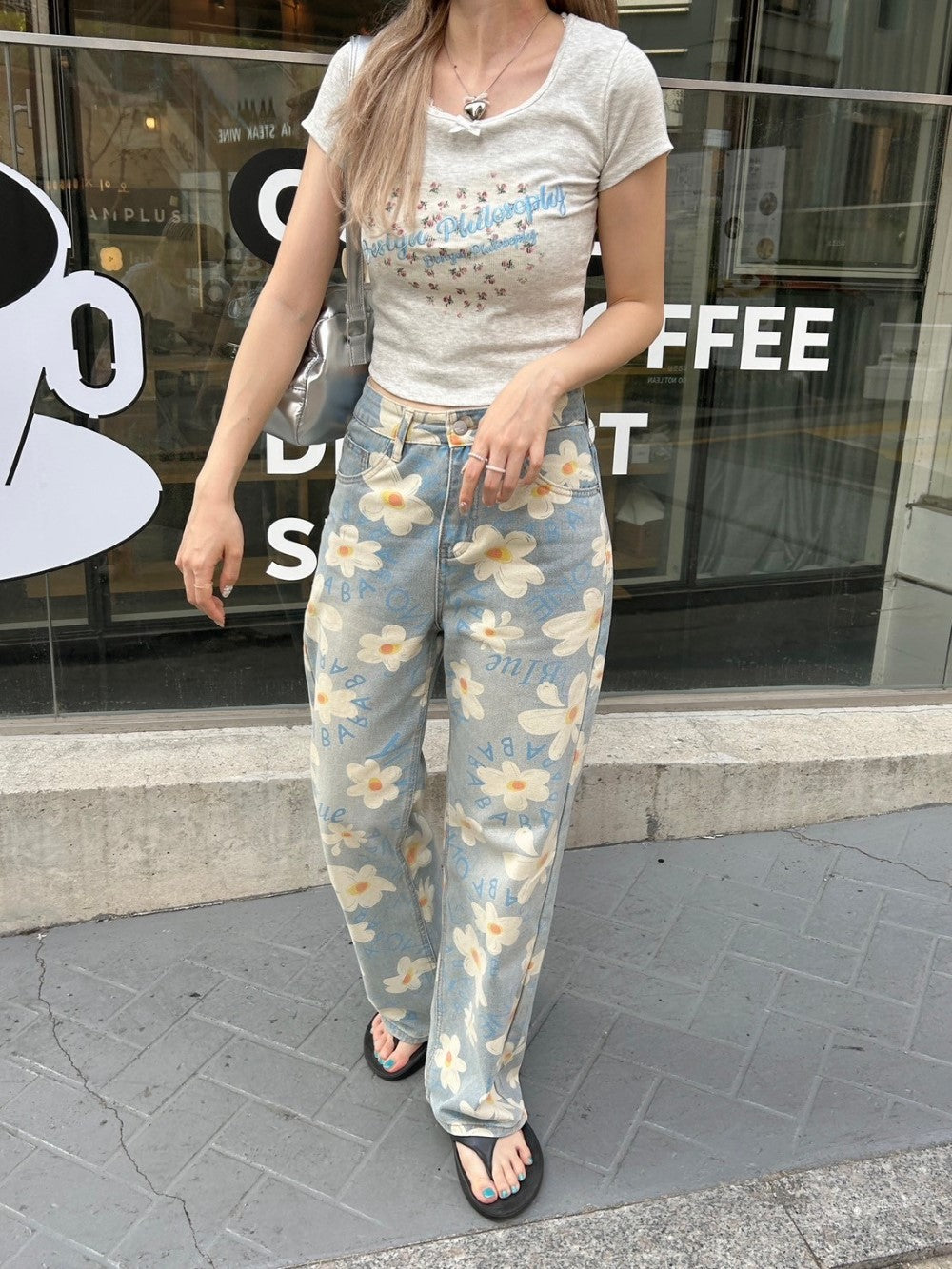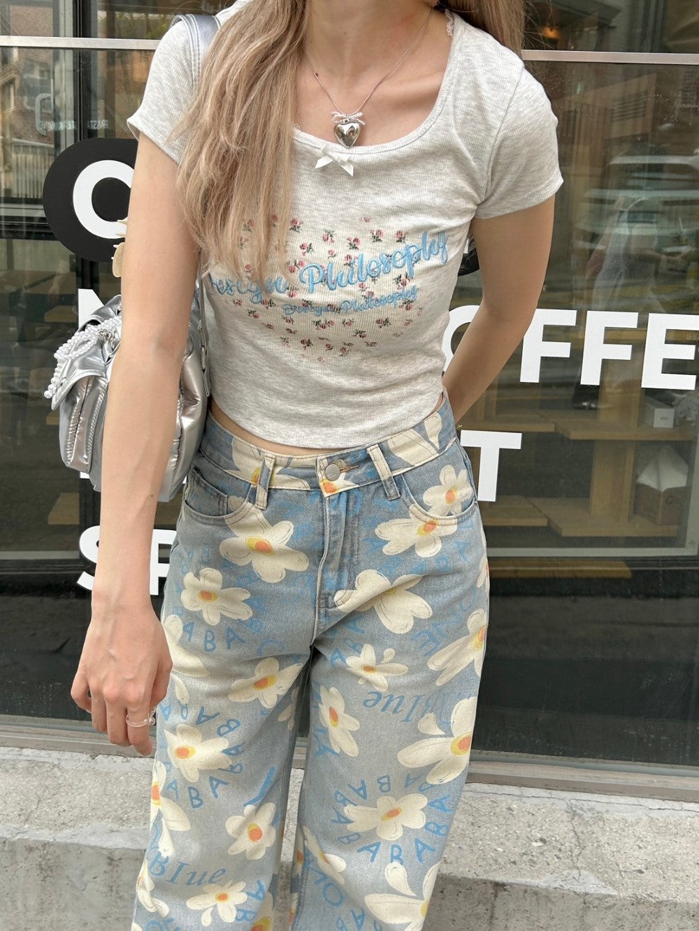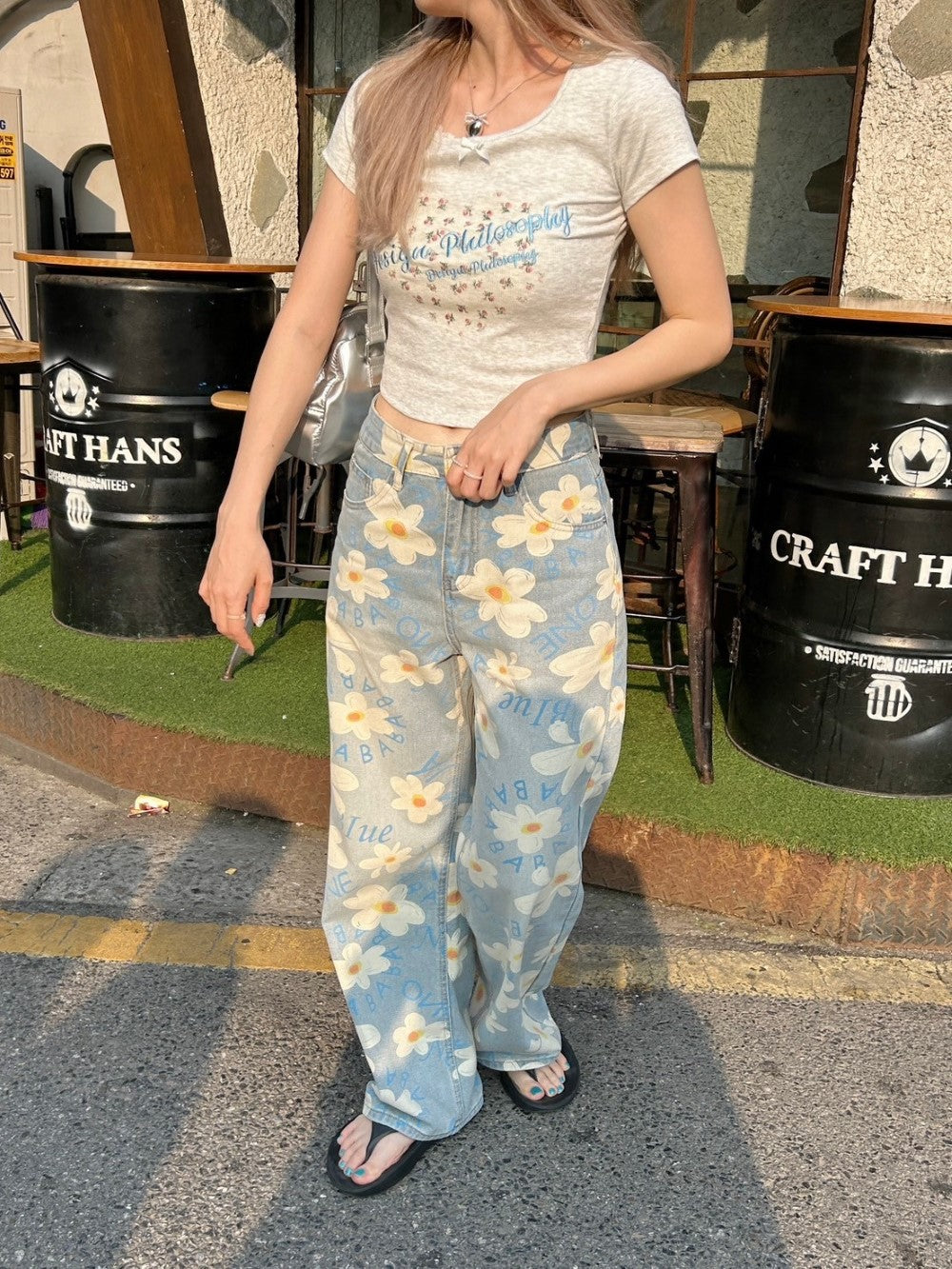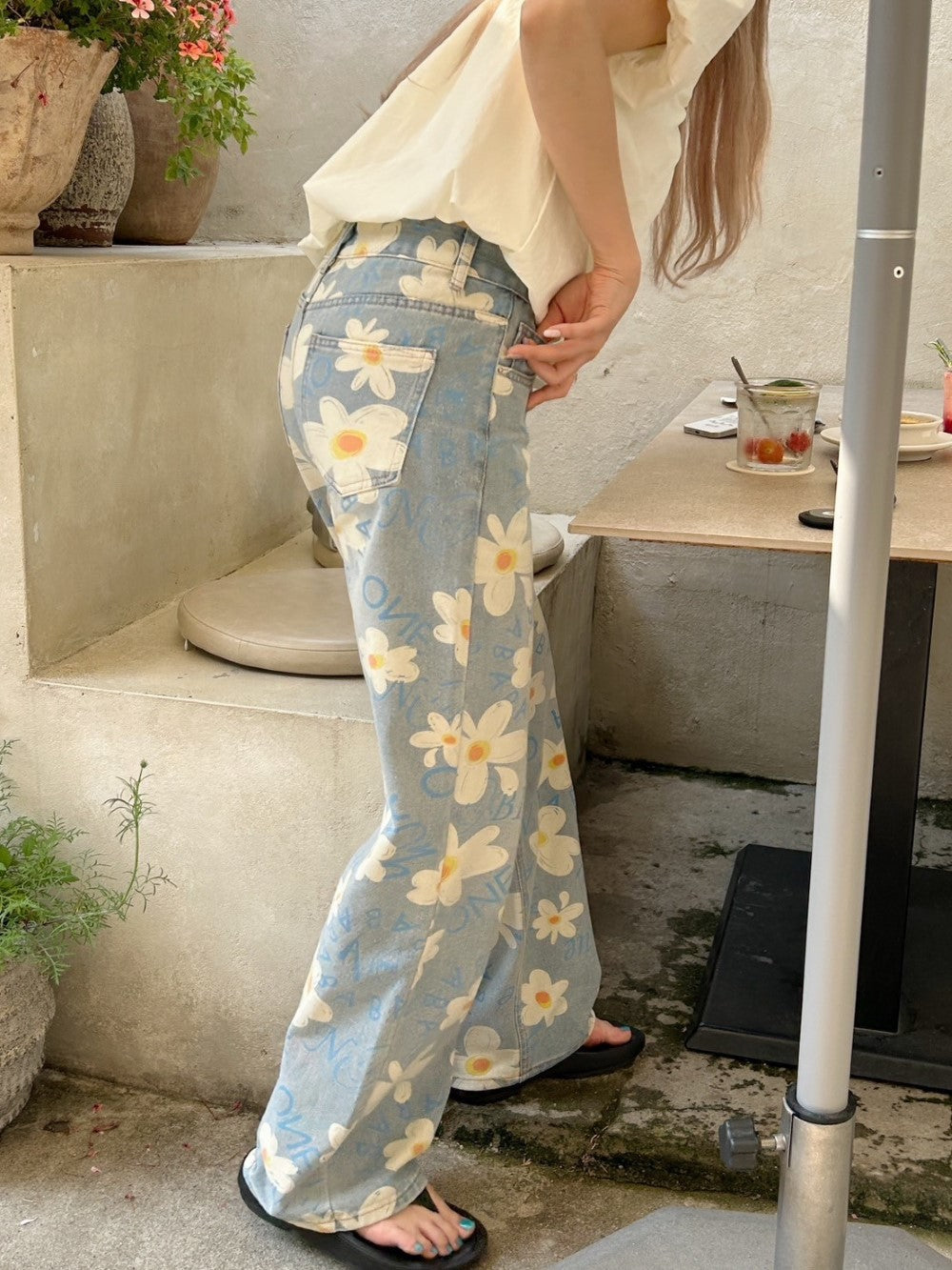 ルーズなシルエットと花柄がマッチした