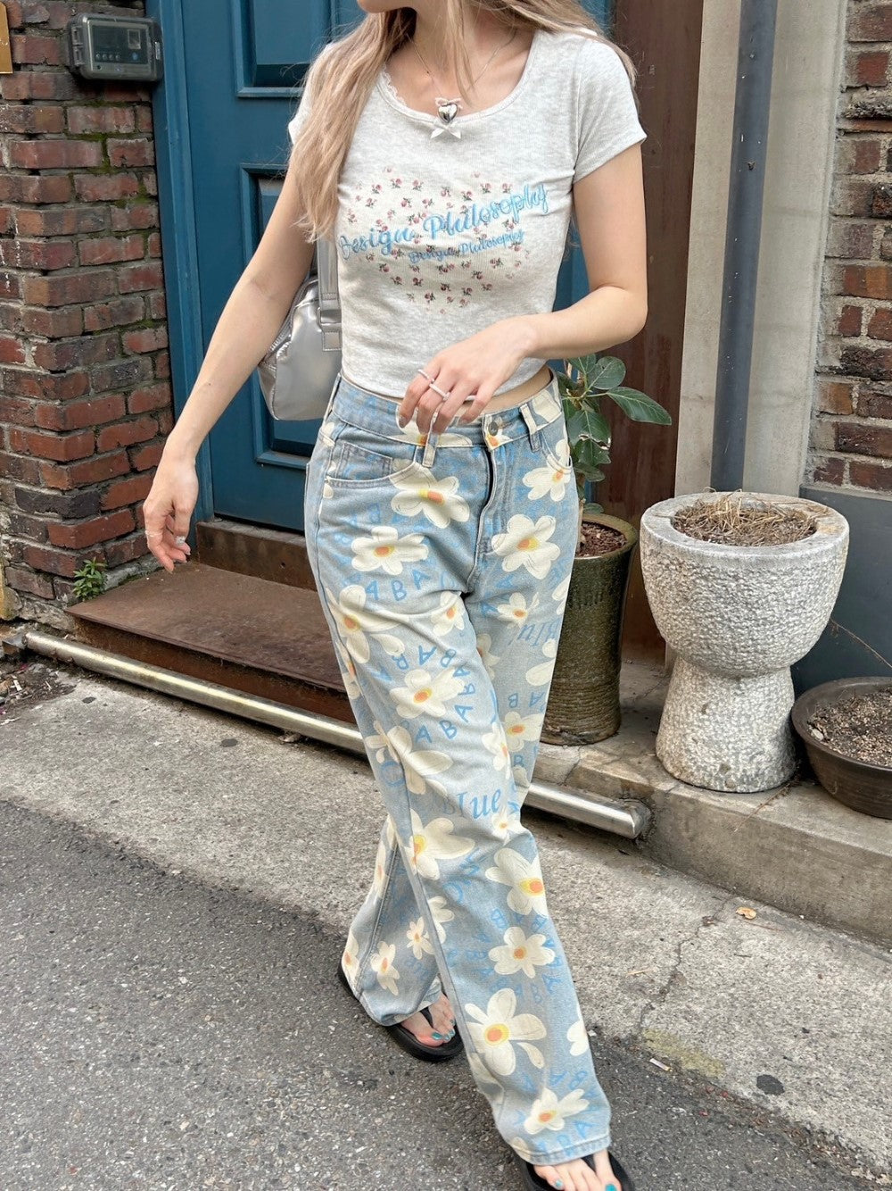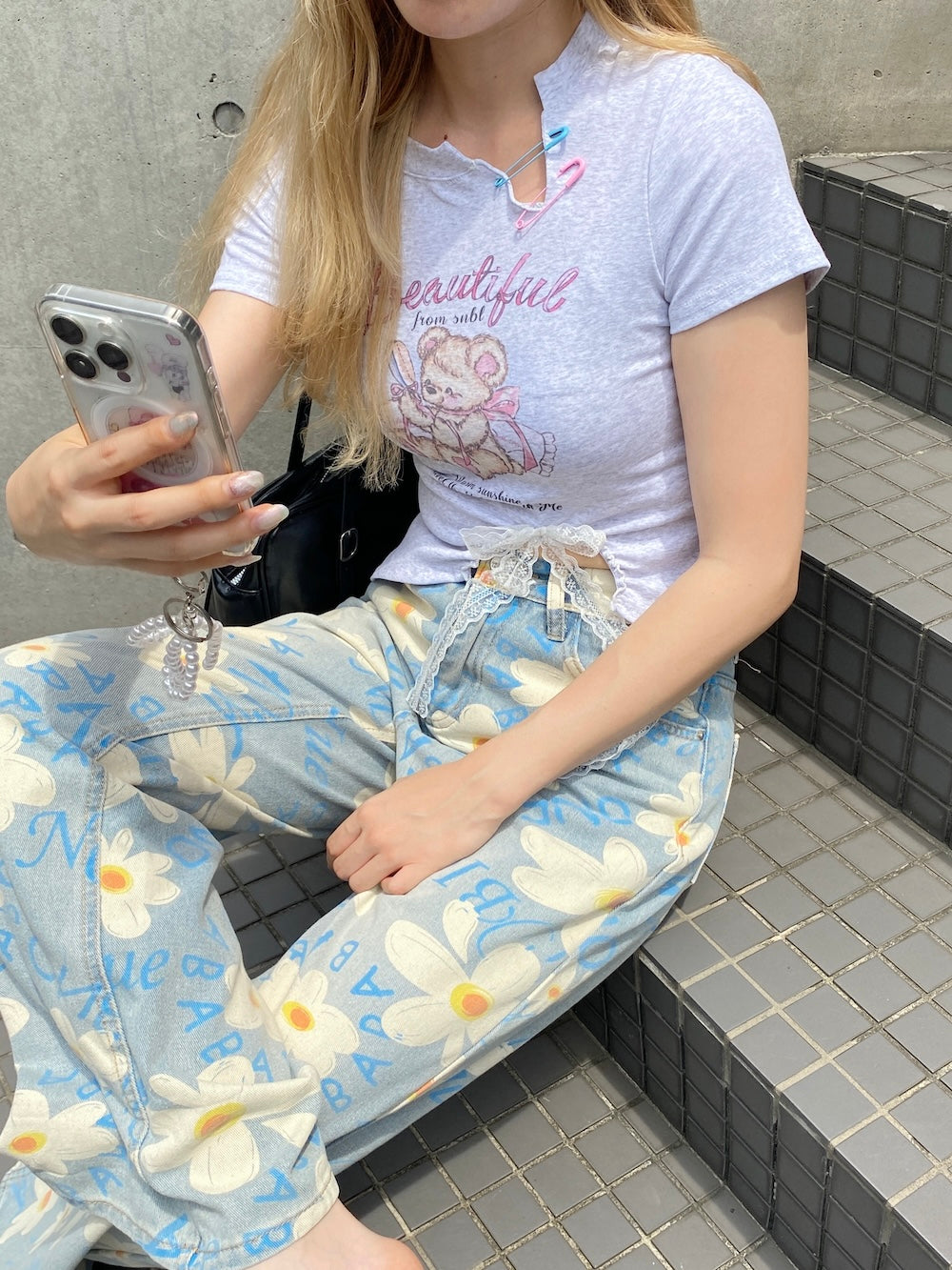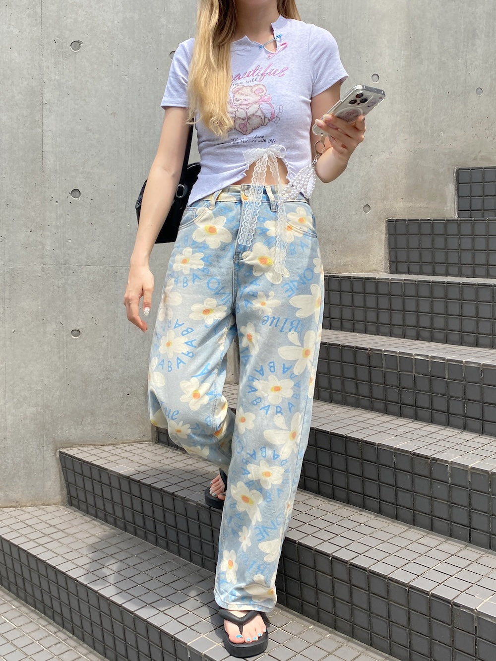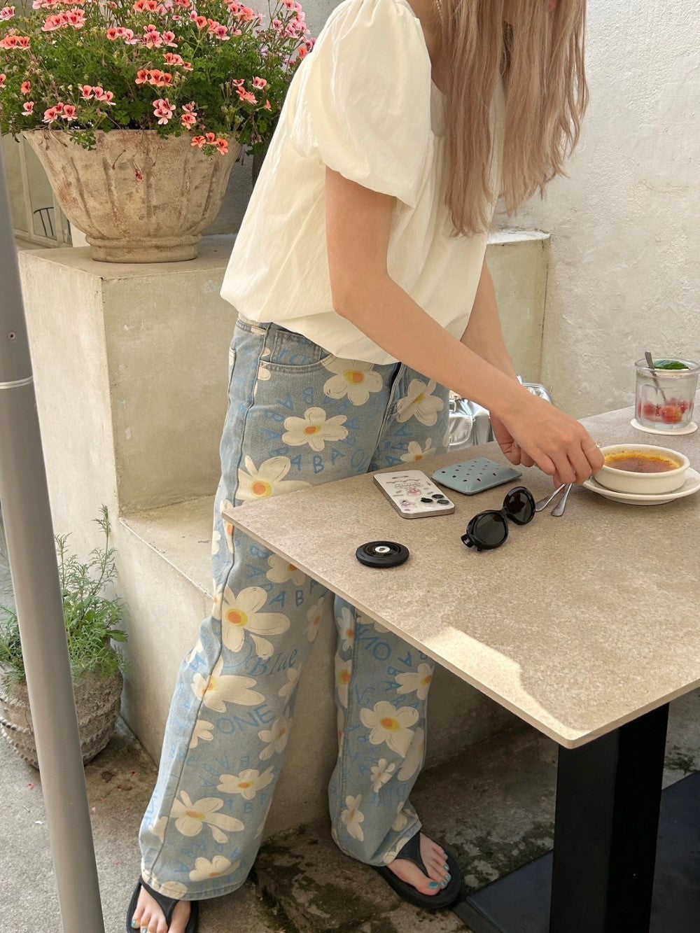 ルーズなシルエットと花柄がマッチした