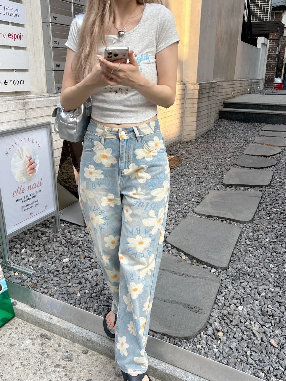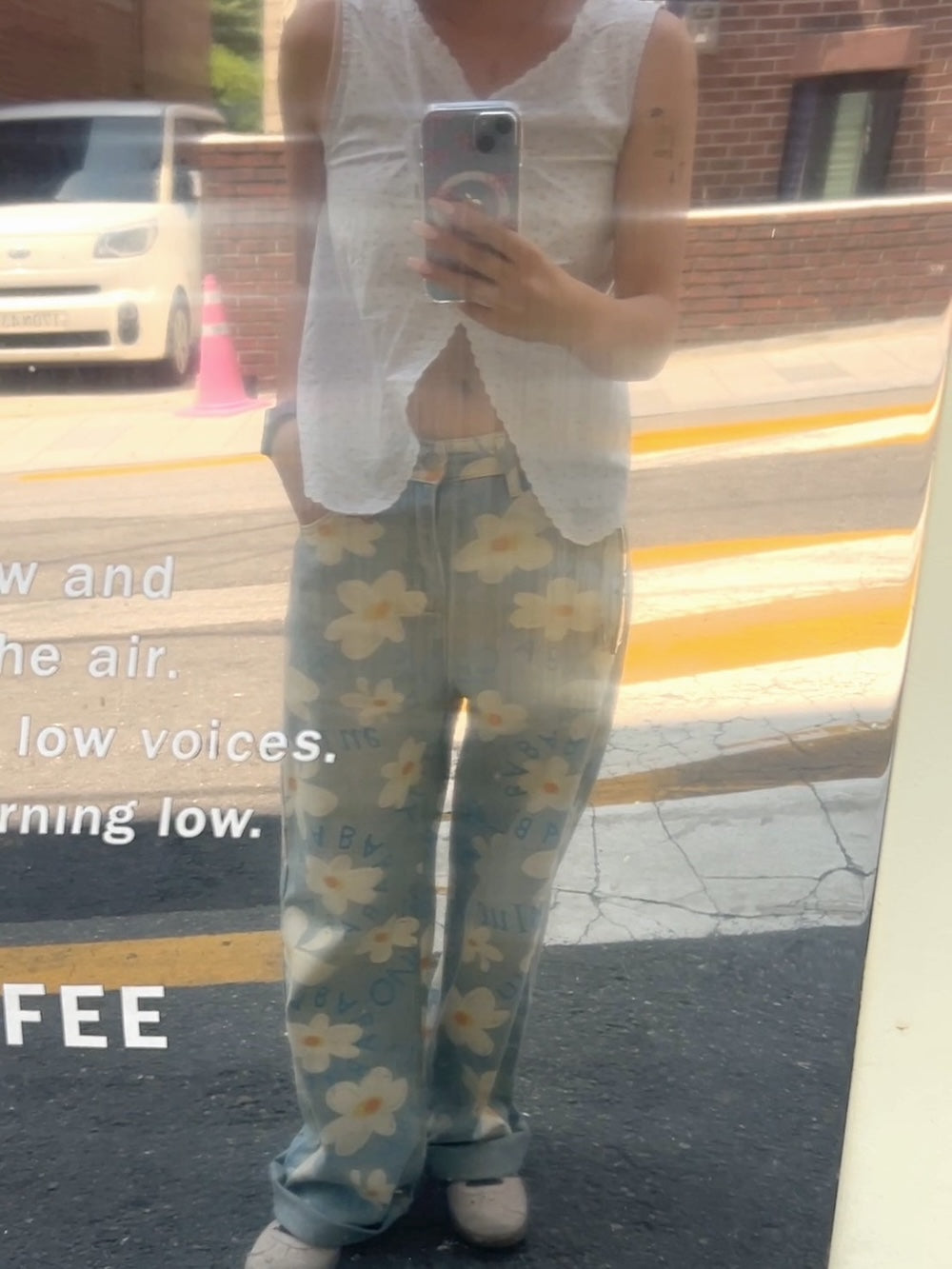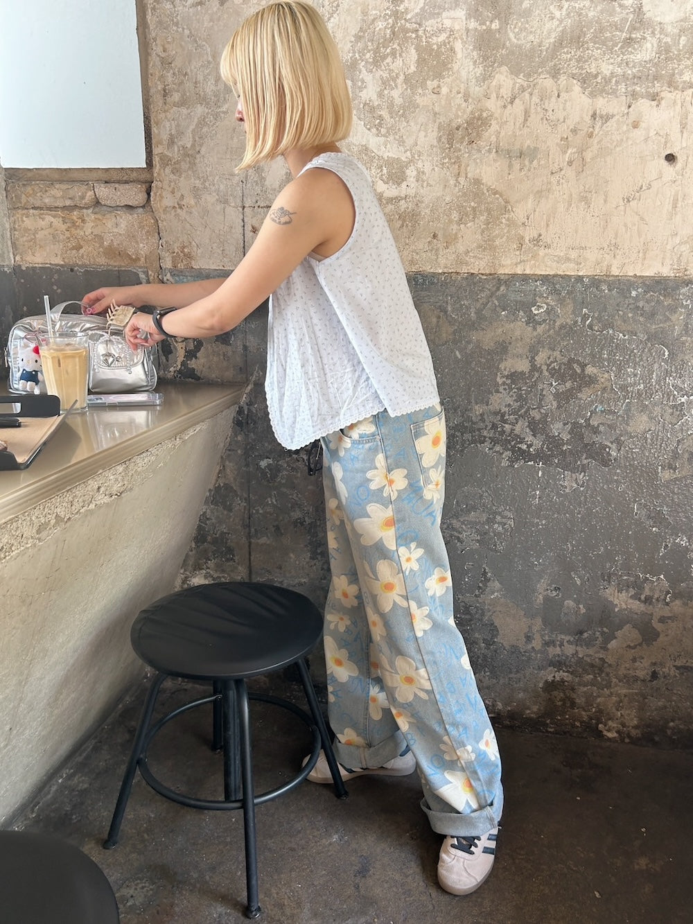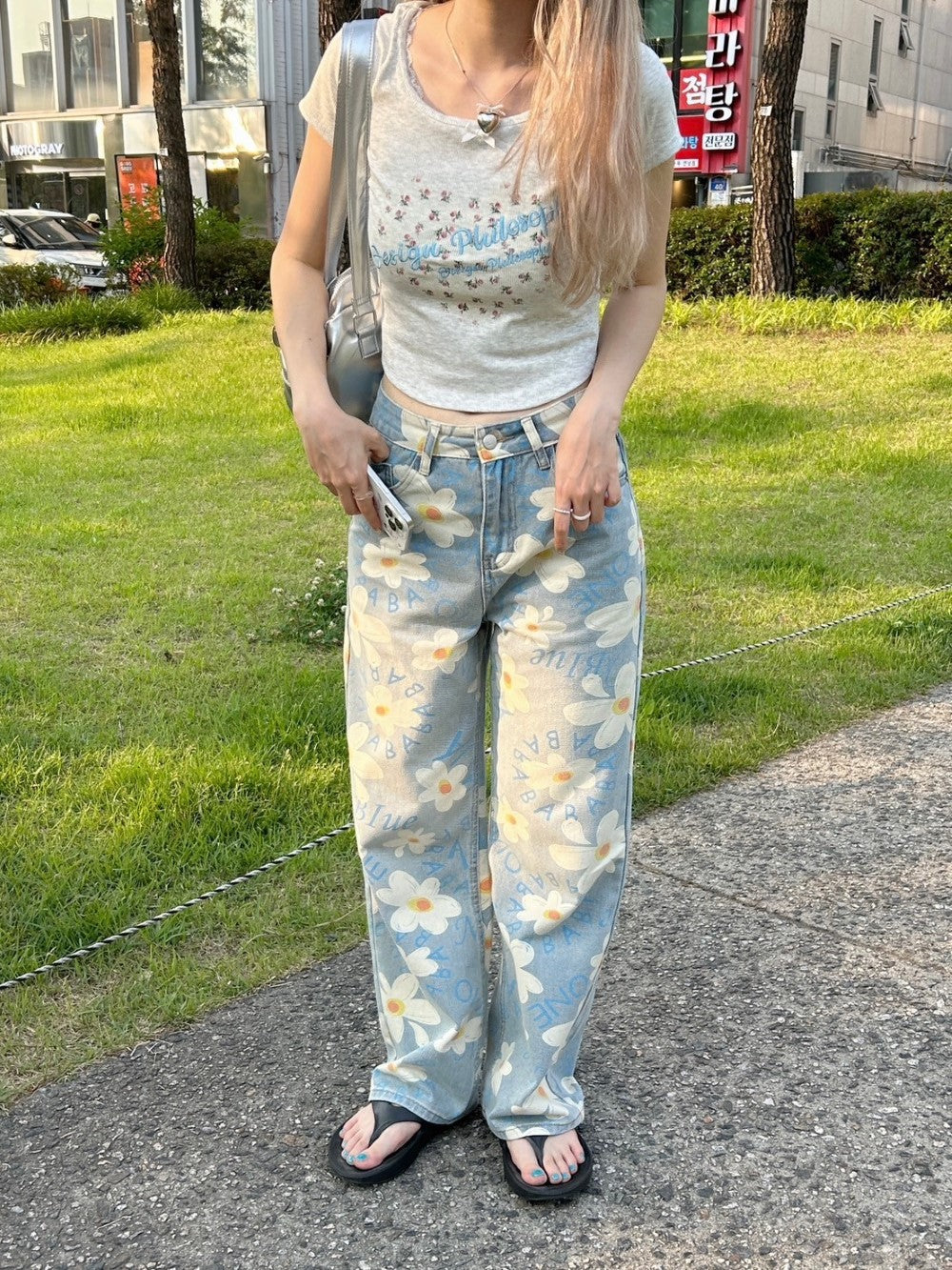 ルーズなシルエットと花柄がマッチした