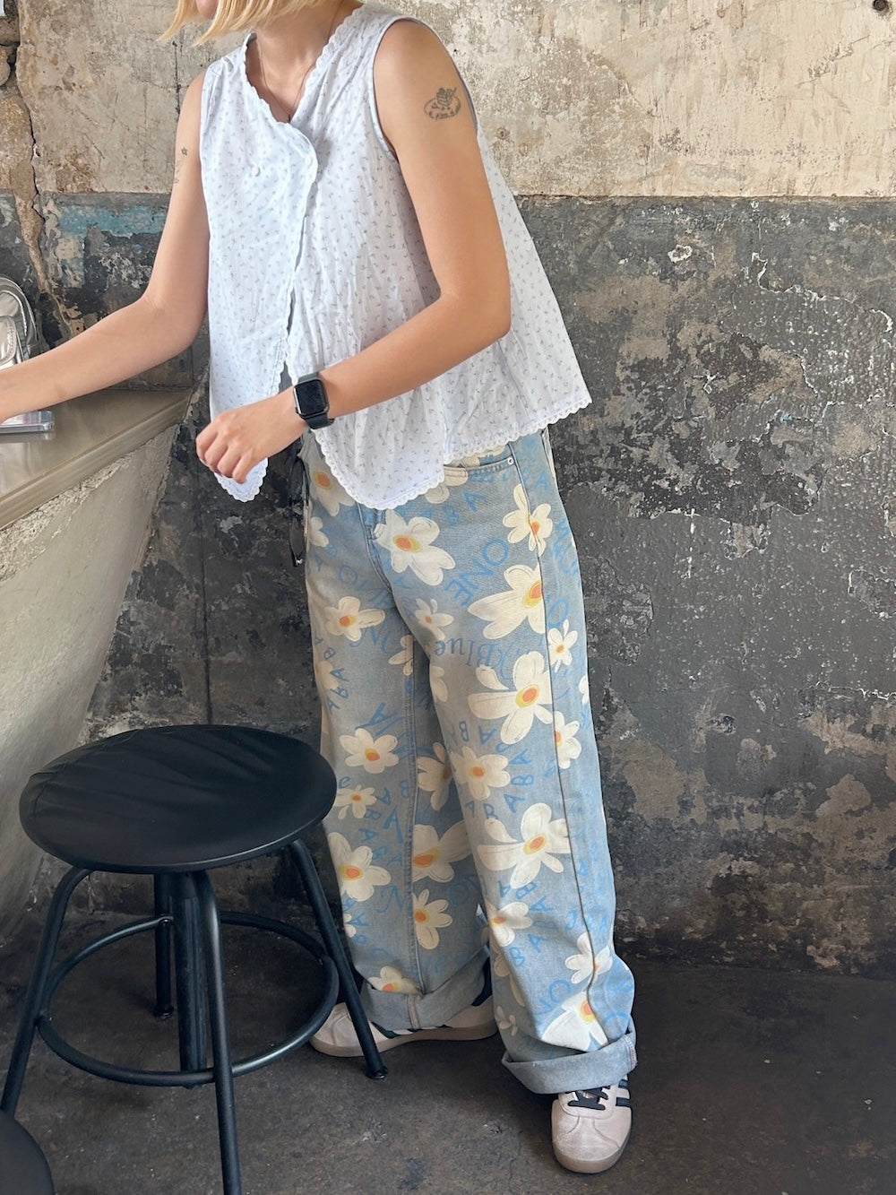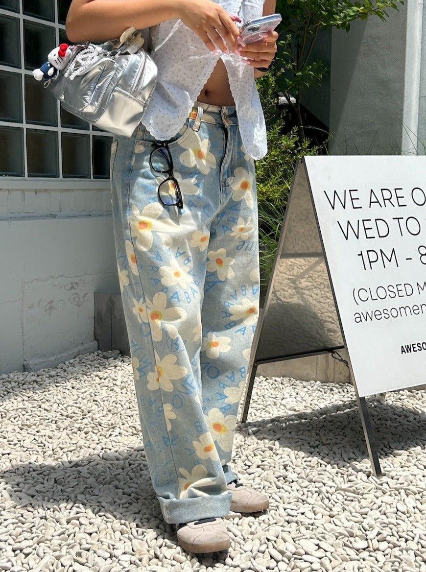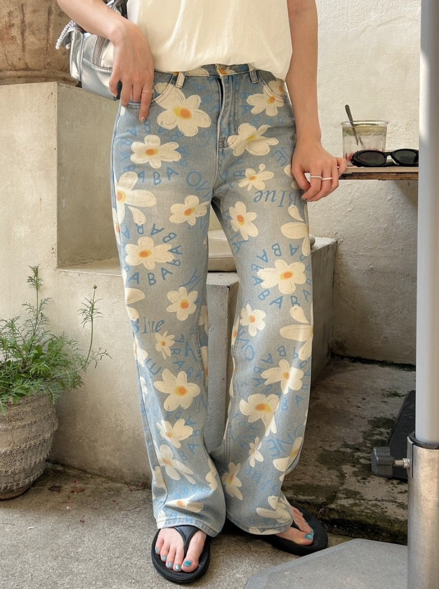 <SL2242642> フラワープリントデニム