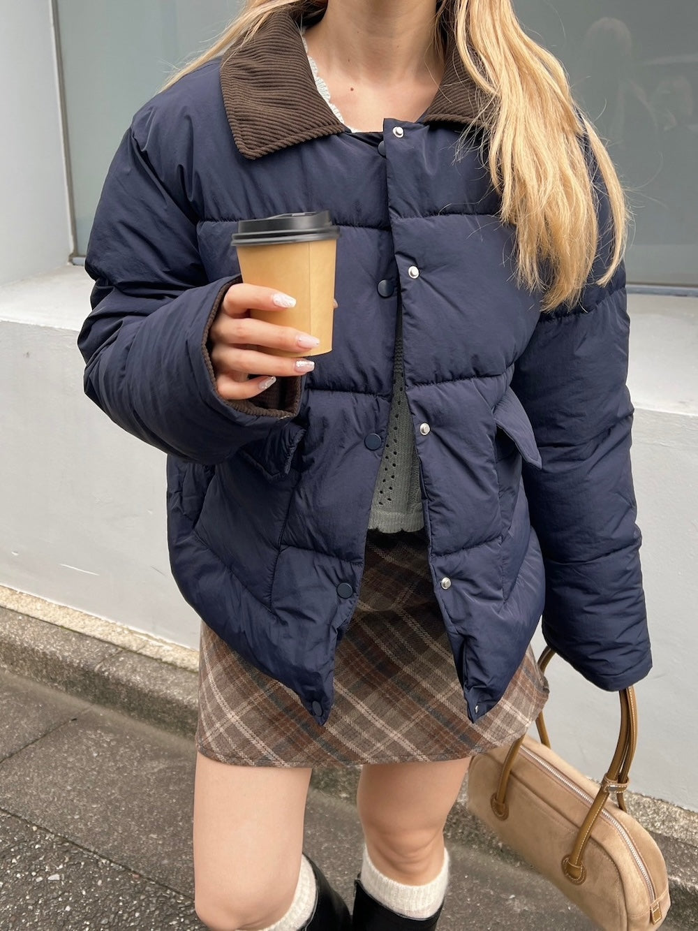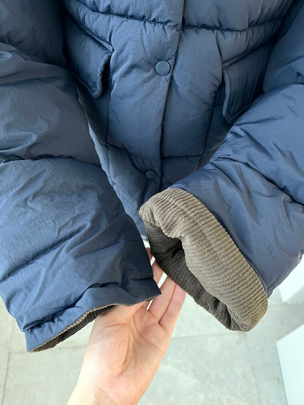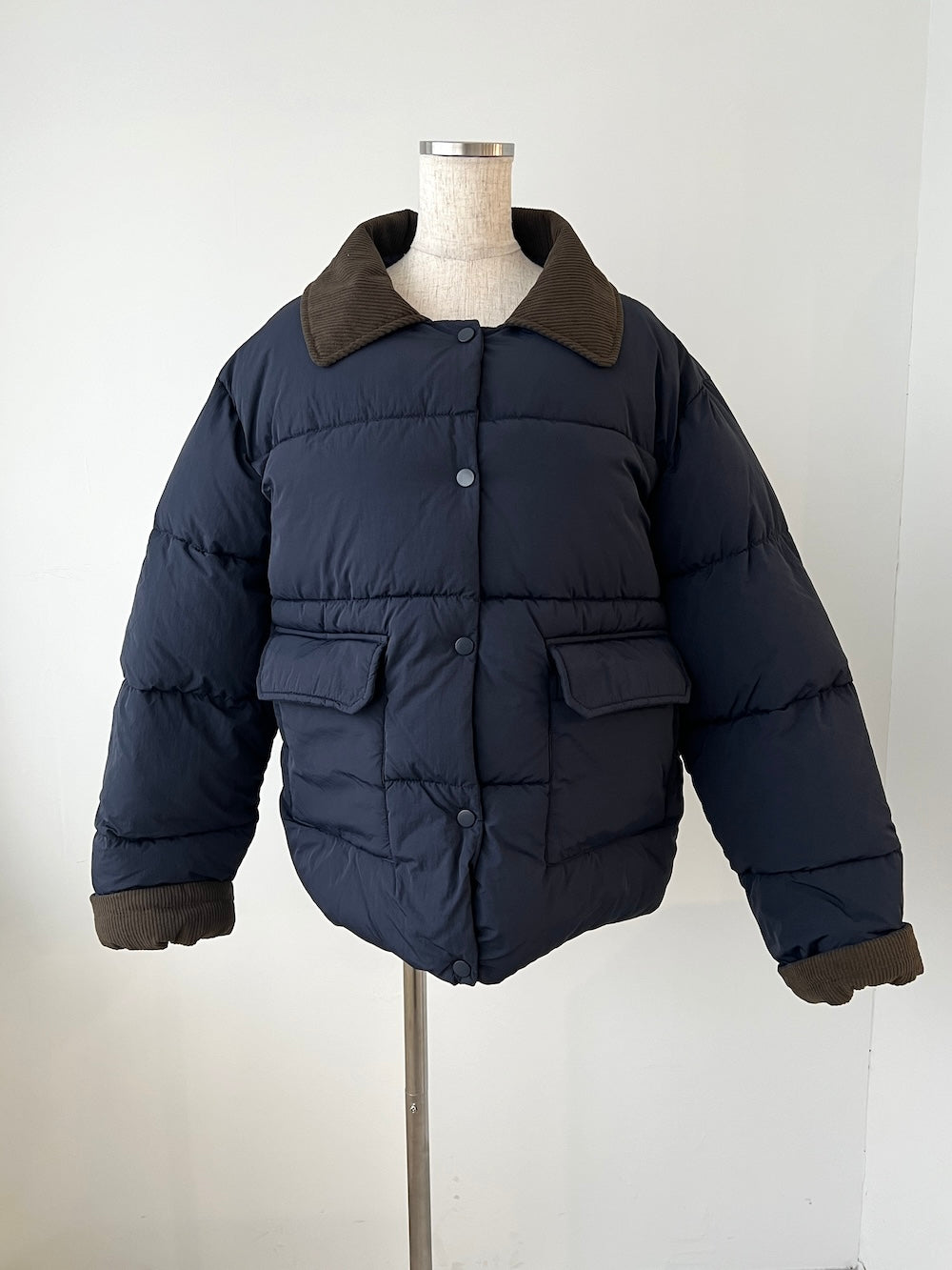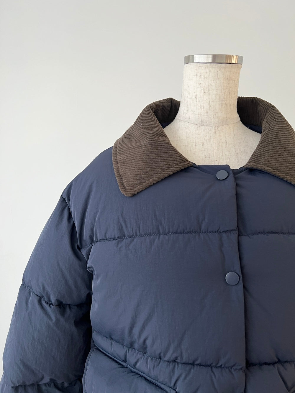 襟部分かコーデュロイ生地になっているバイカラーダウン♡