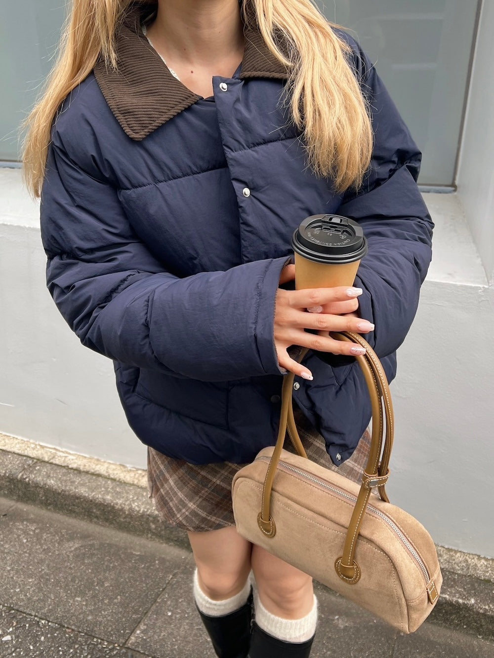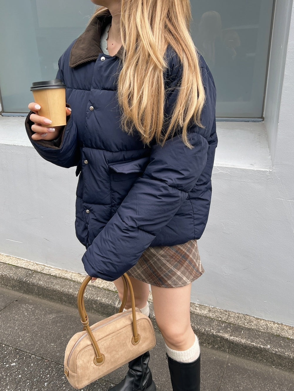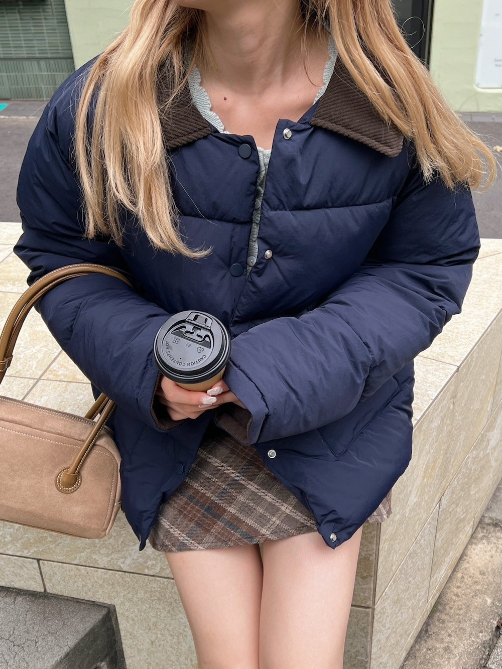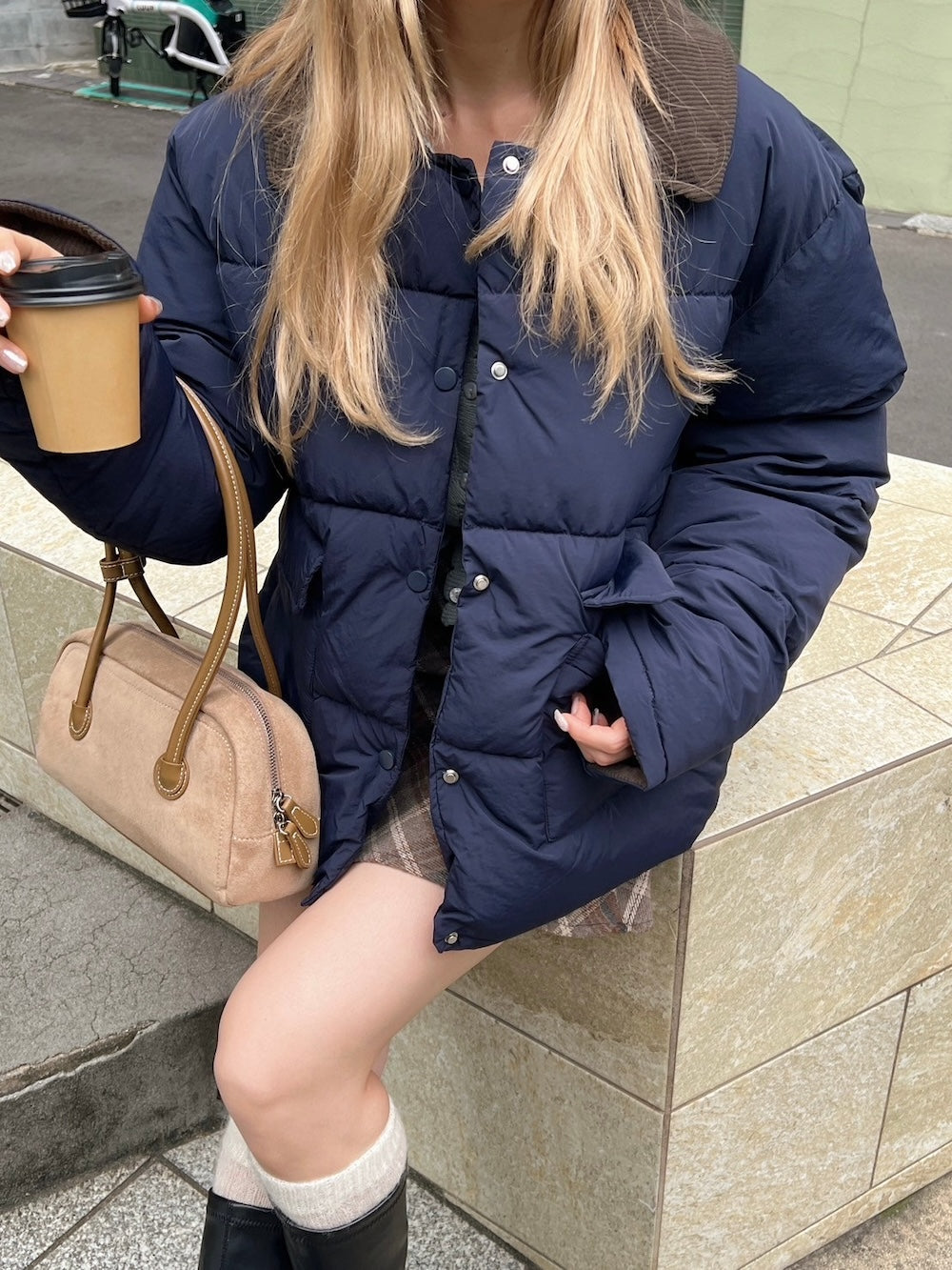 襟部分かコーデュロイ生地になっているバイカラーダウン♡
