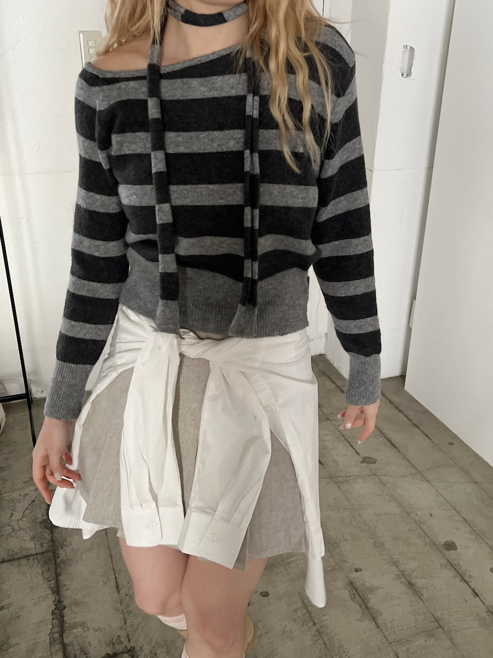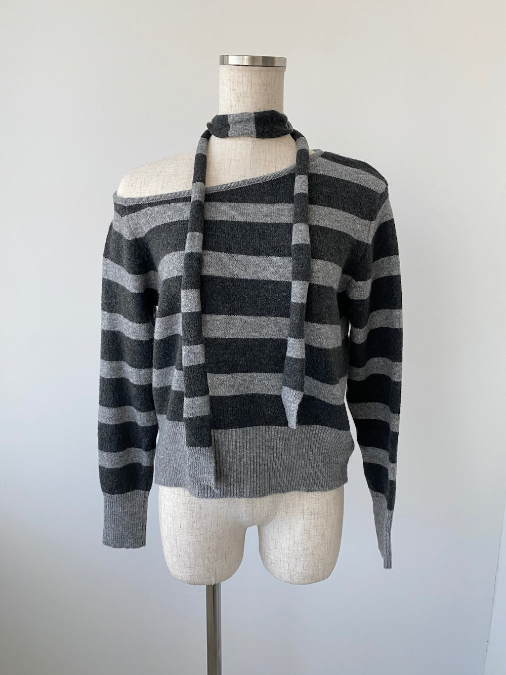 ※ラスト1点<SL2244616> ボーダーワンショルダーニット