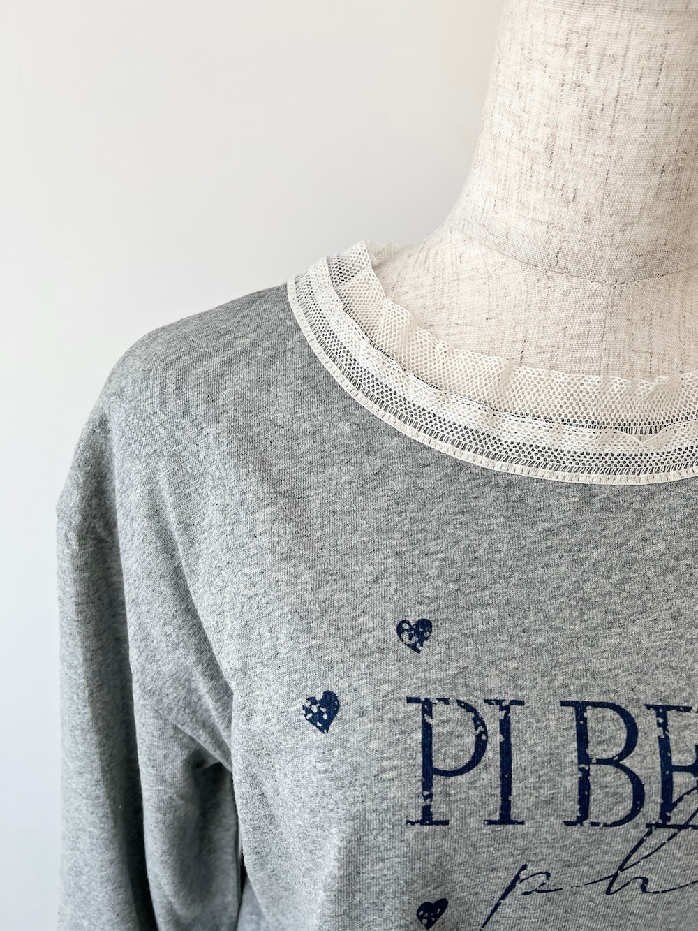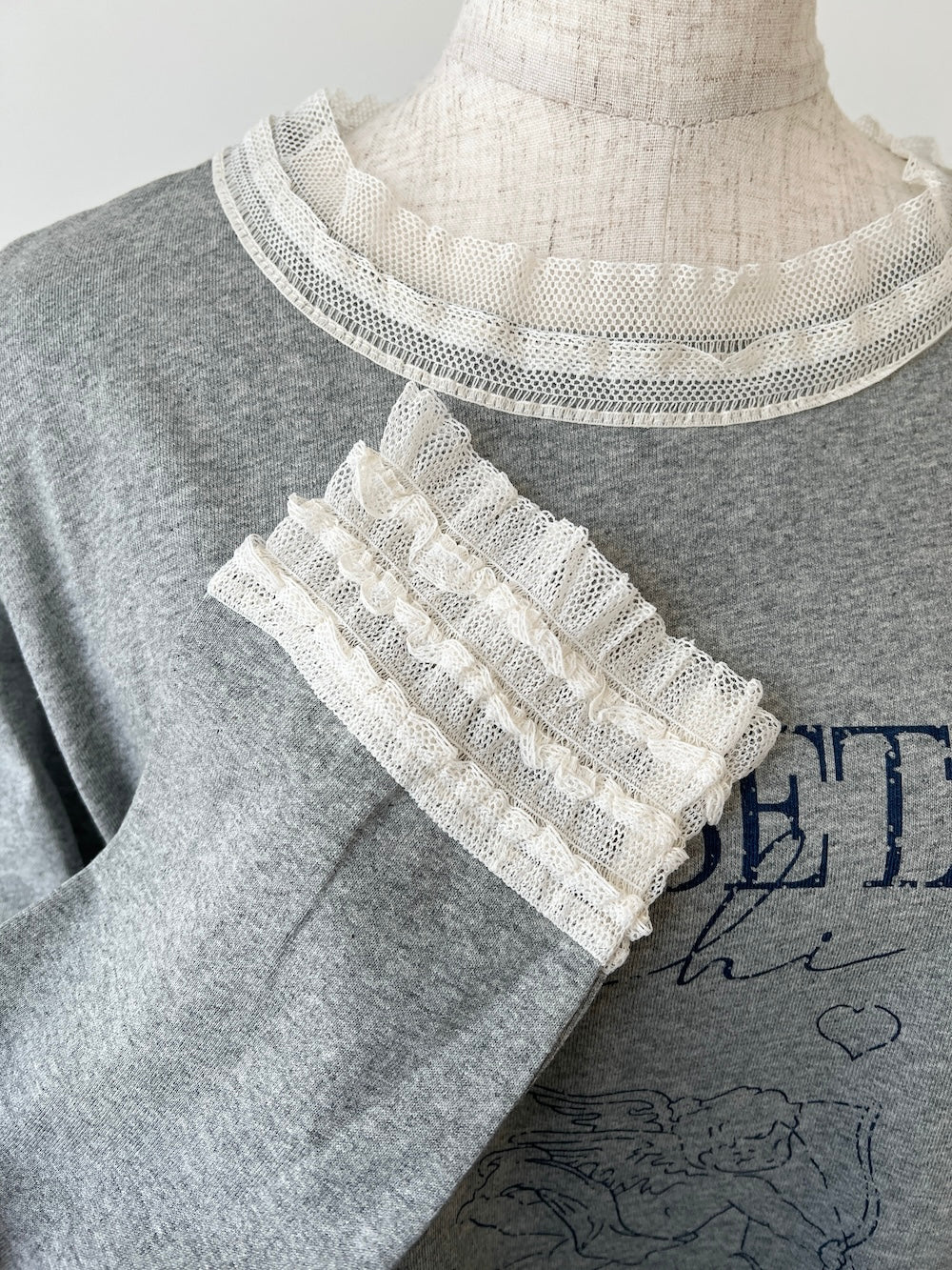 襟元と袖のレースデザインがワンポイントキュートなロンTが登場!!