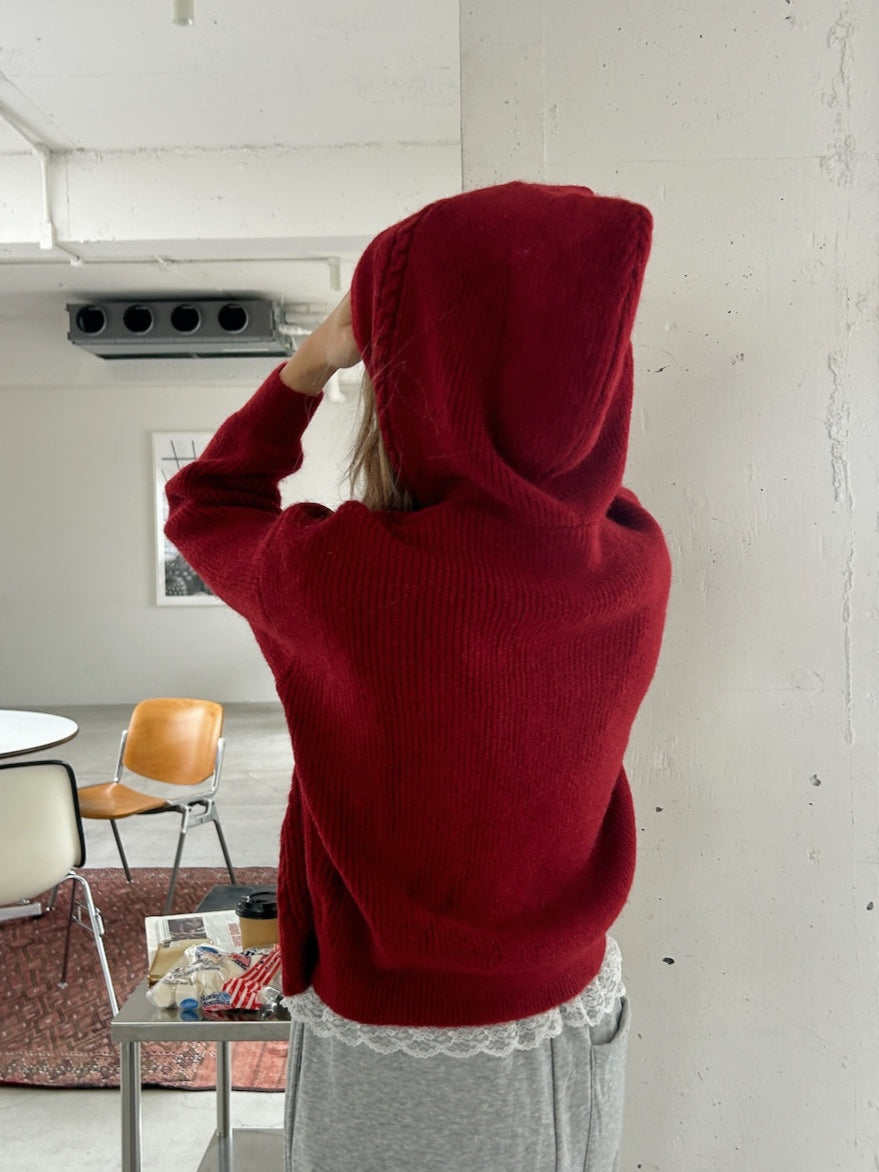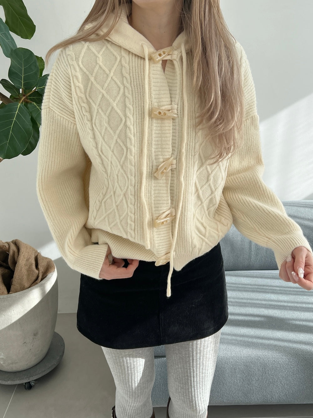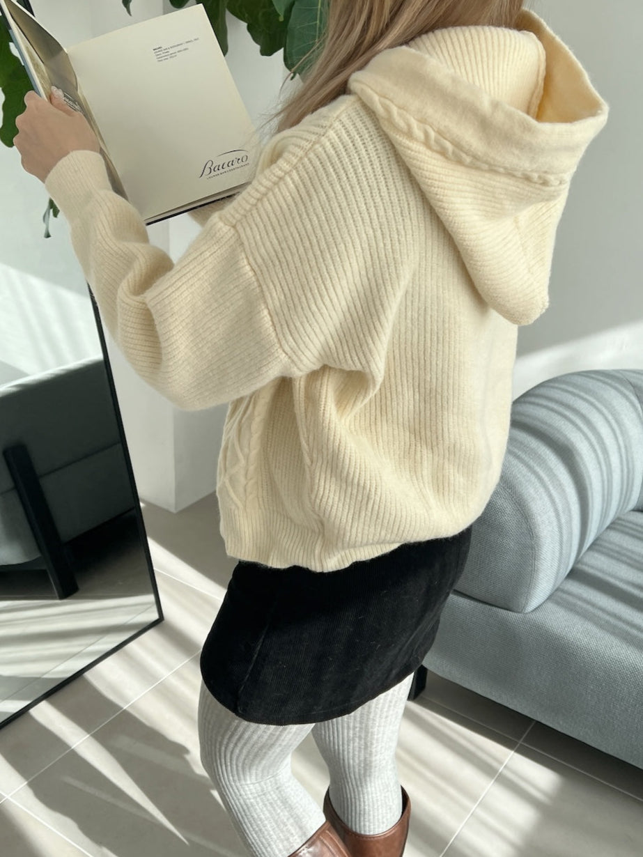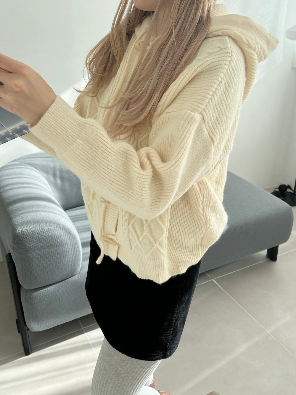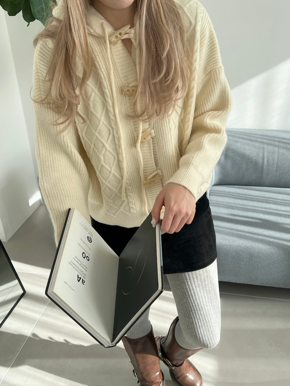 ※ラスト1点!<SL2244662> ケーブルニットフーディーカーディガン