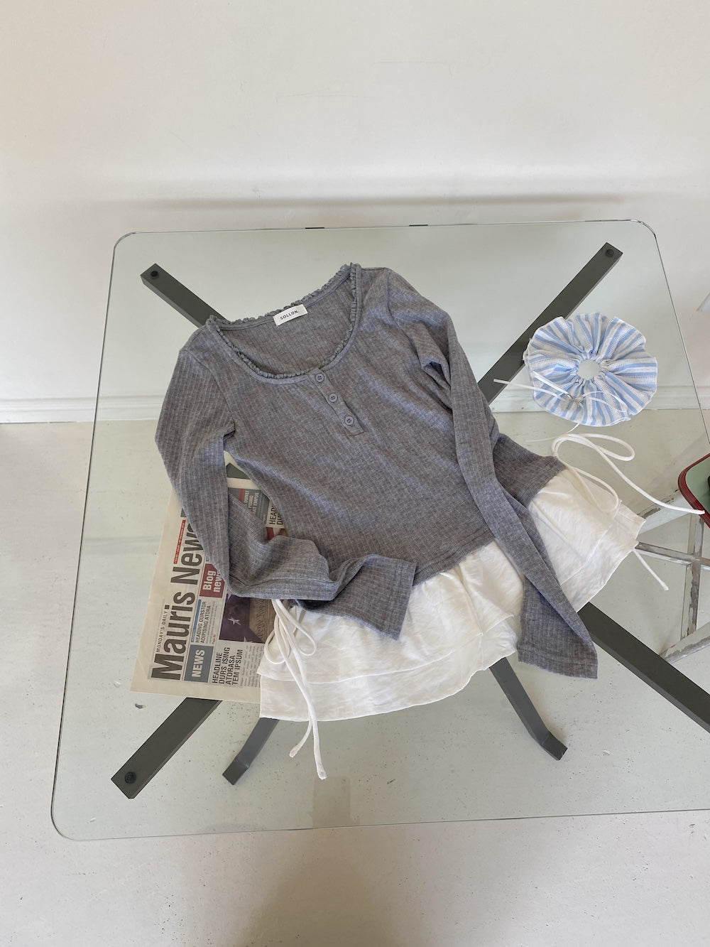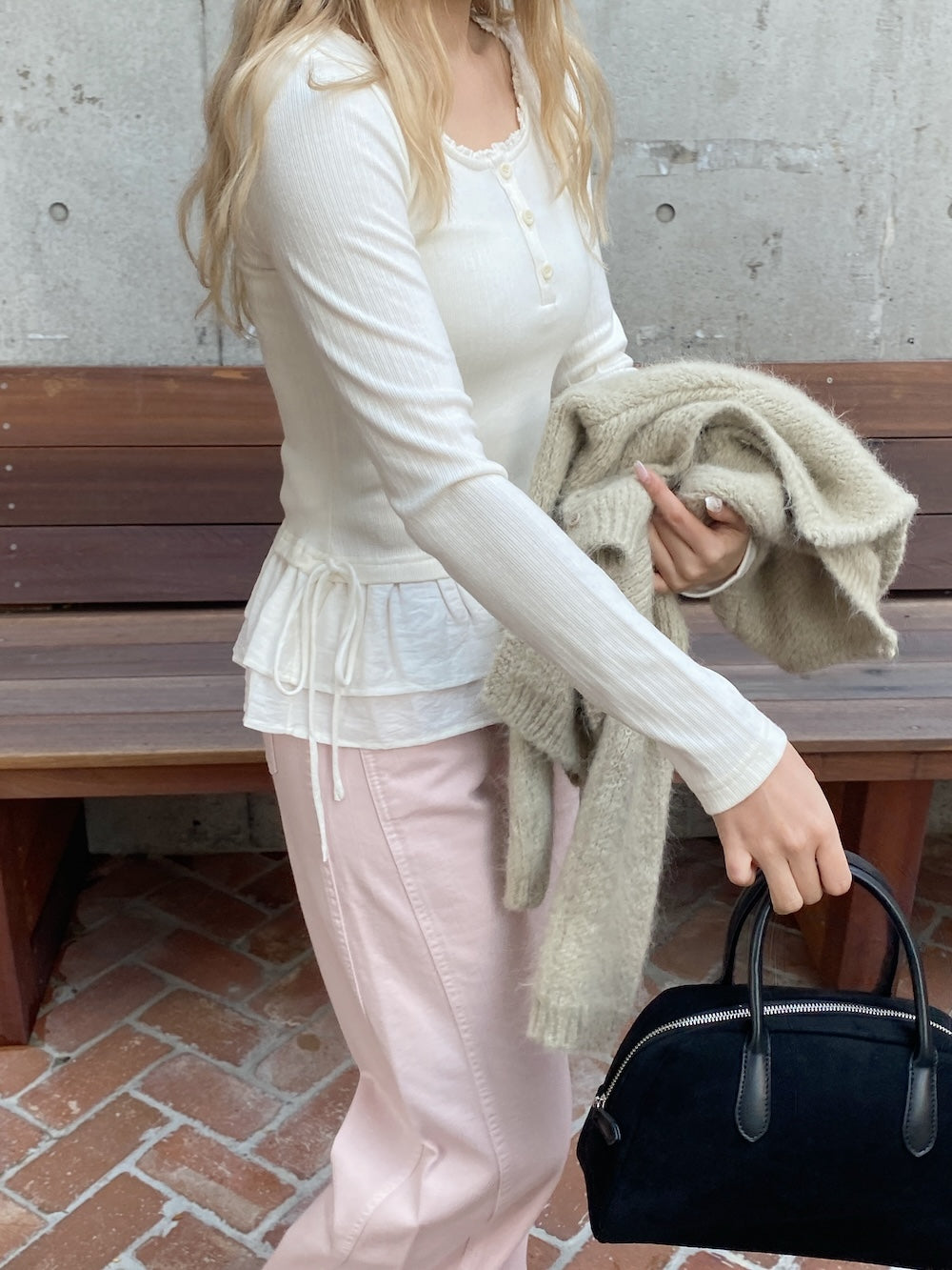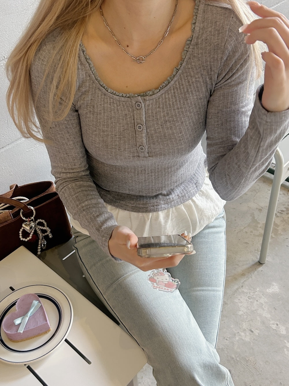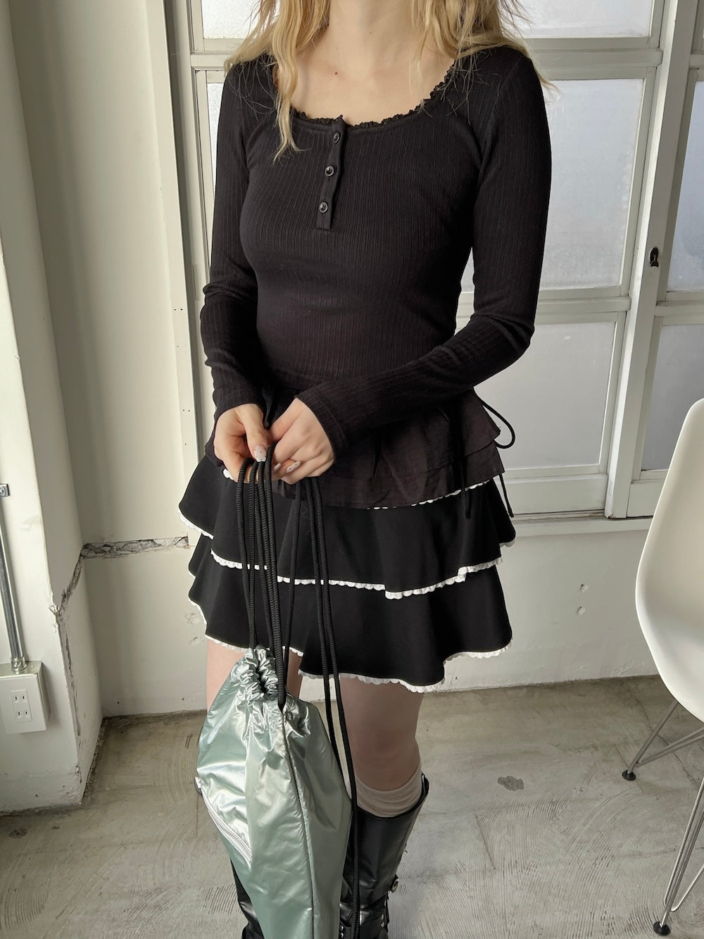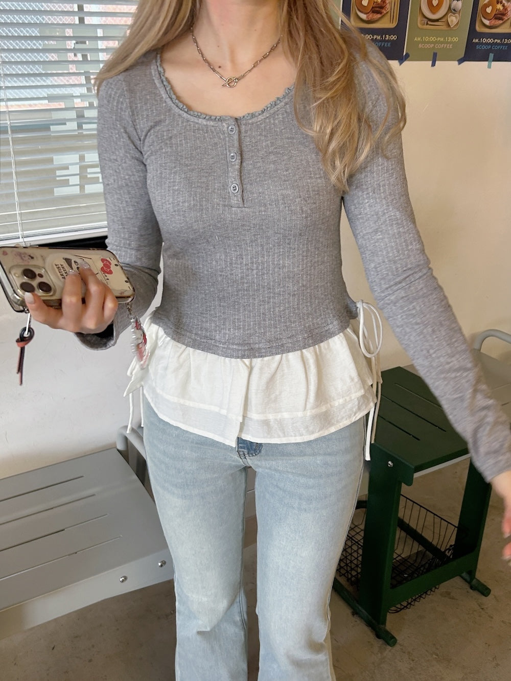 <SL2244666> ヘンリーネック切り替えフリルチュニック