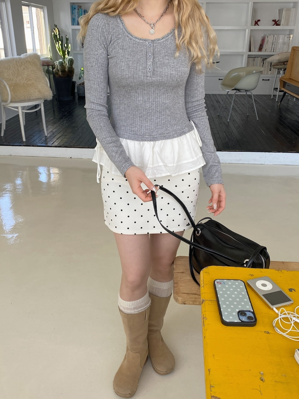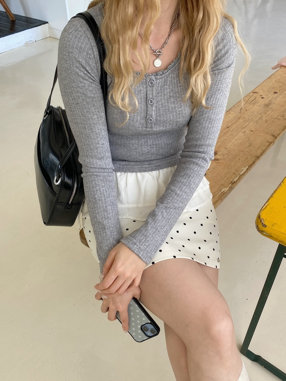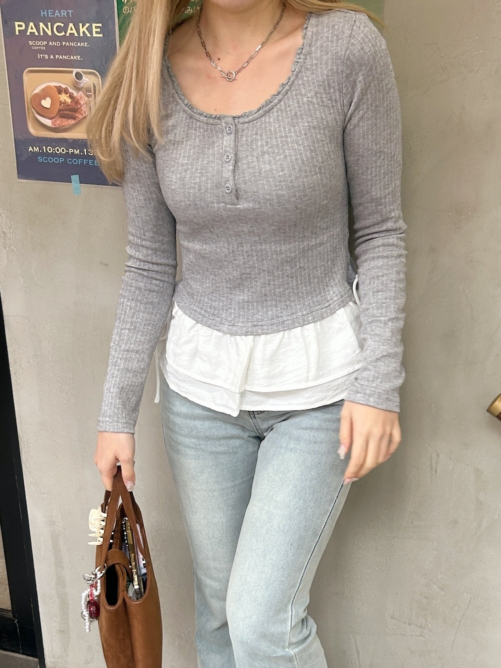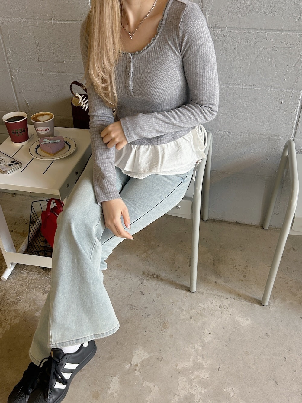 <SL2244666> ヘンリーネック切り替えフリルチュニック