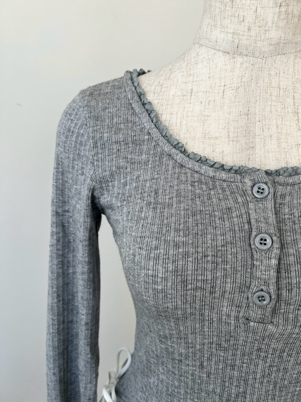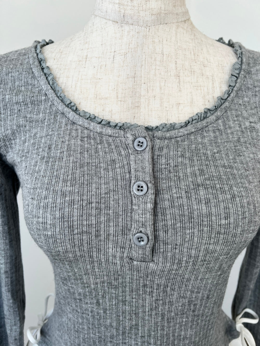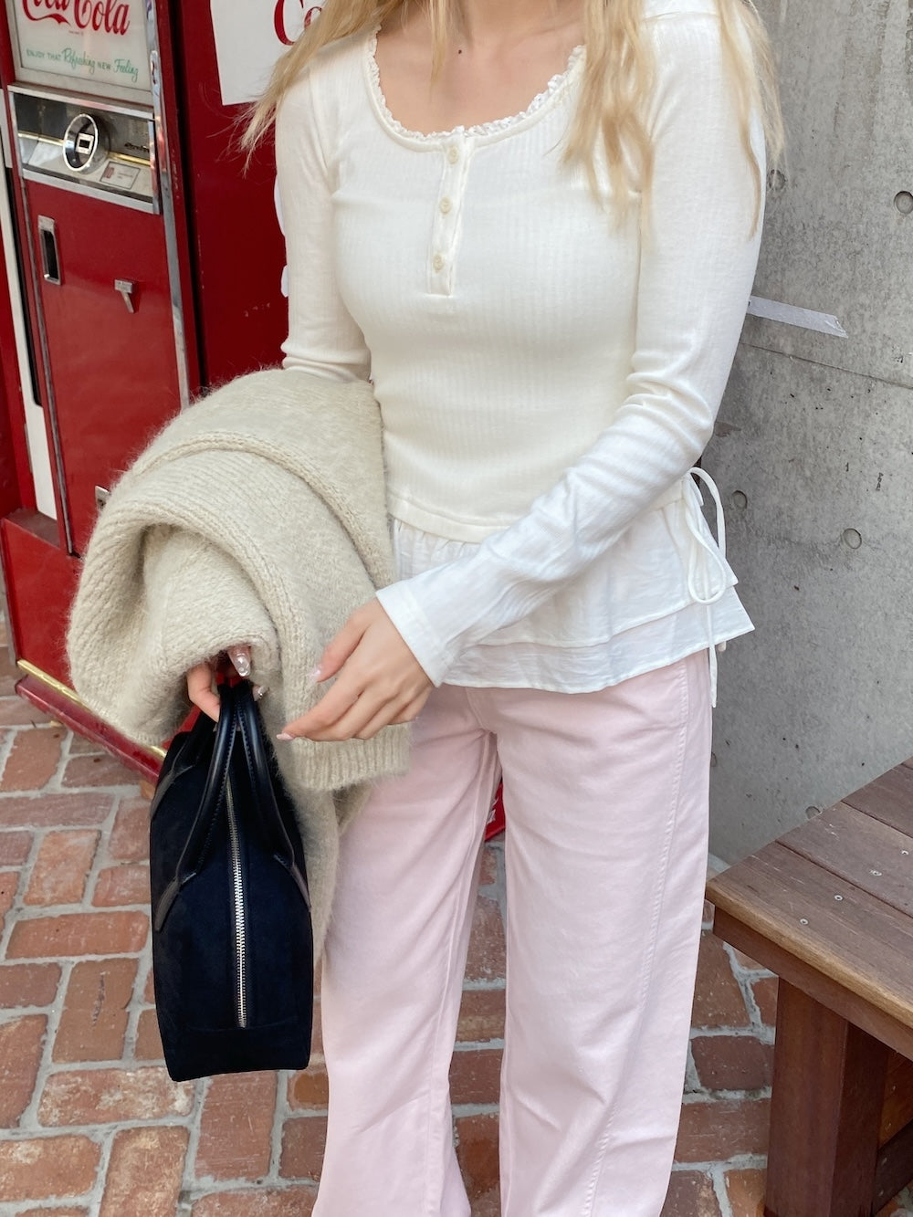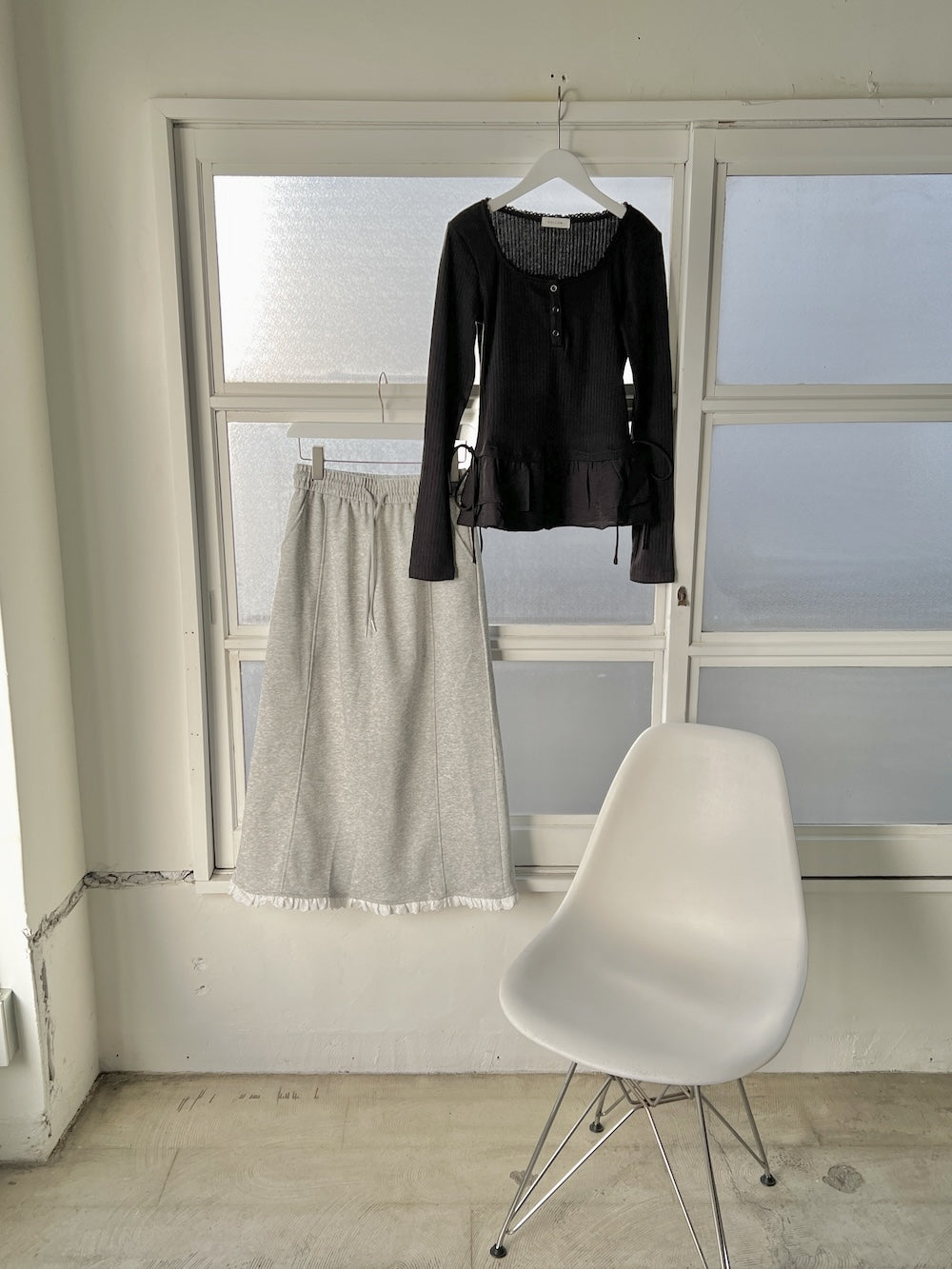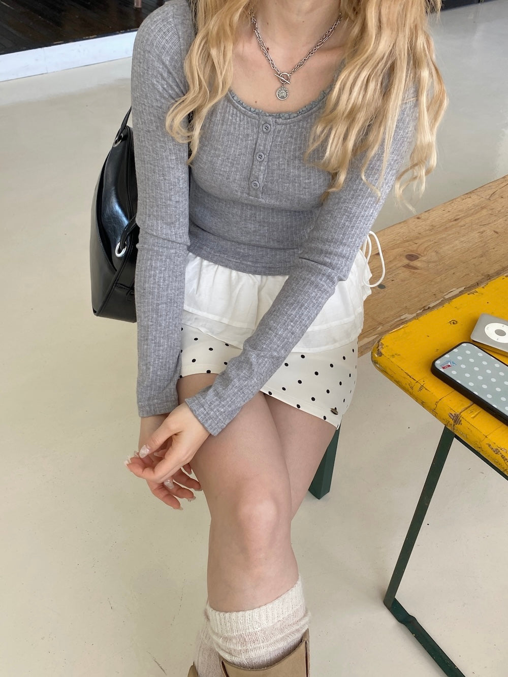 <SL2244666> ヘンリーネック切り替えフリルチュニック