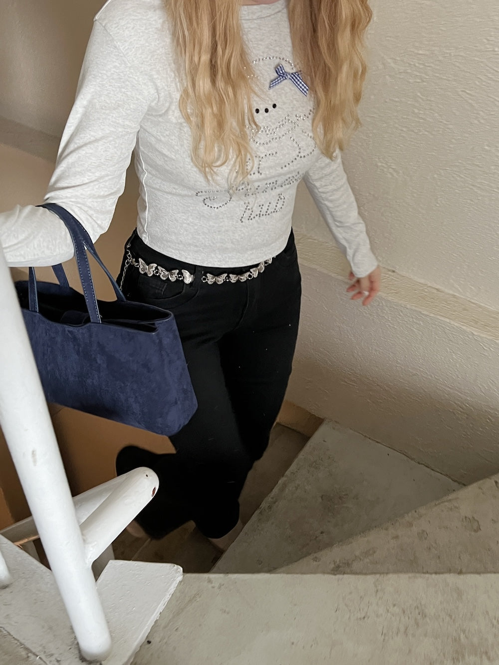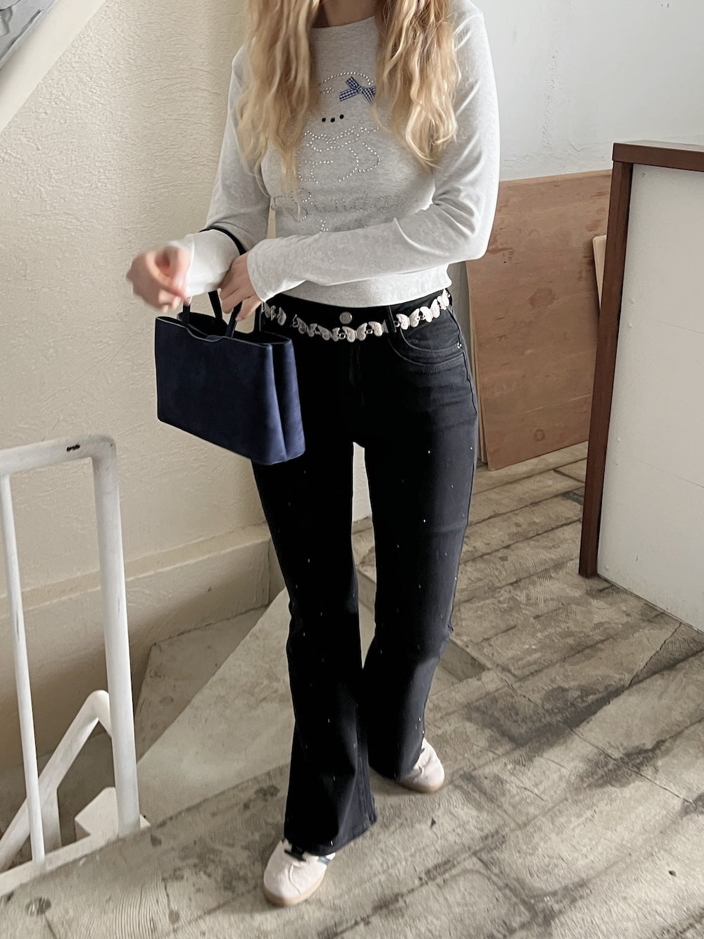 ※ラスト4点!<SL2251636> ラインストーンクロップドTシャツ