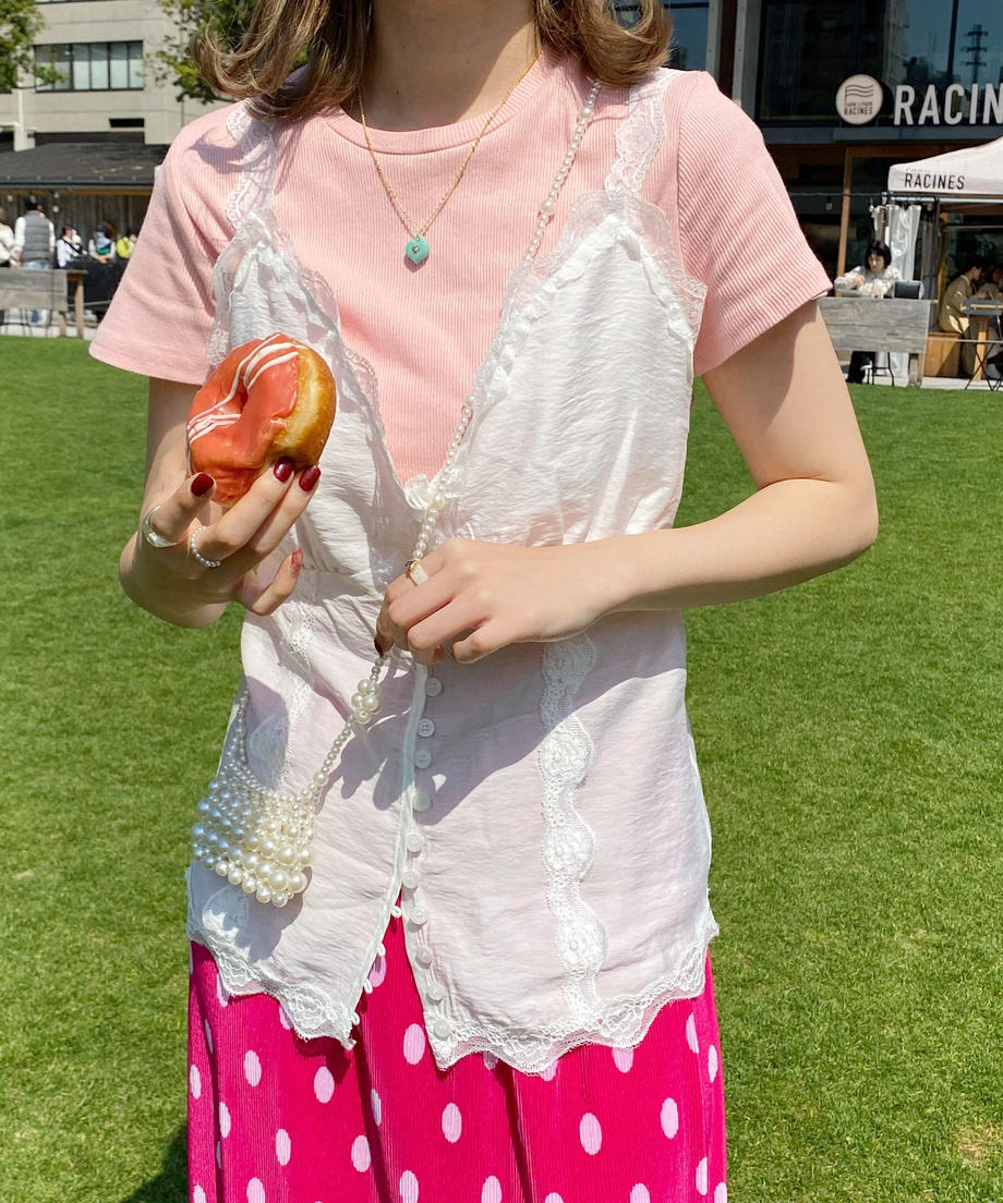 モチーフの中のミニハートとチェーン部分はゴールドで、上品さとポップさを兼ね備えたアイテムです!